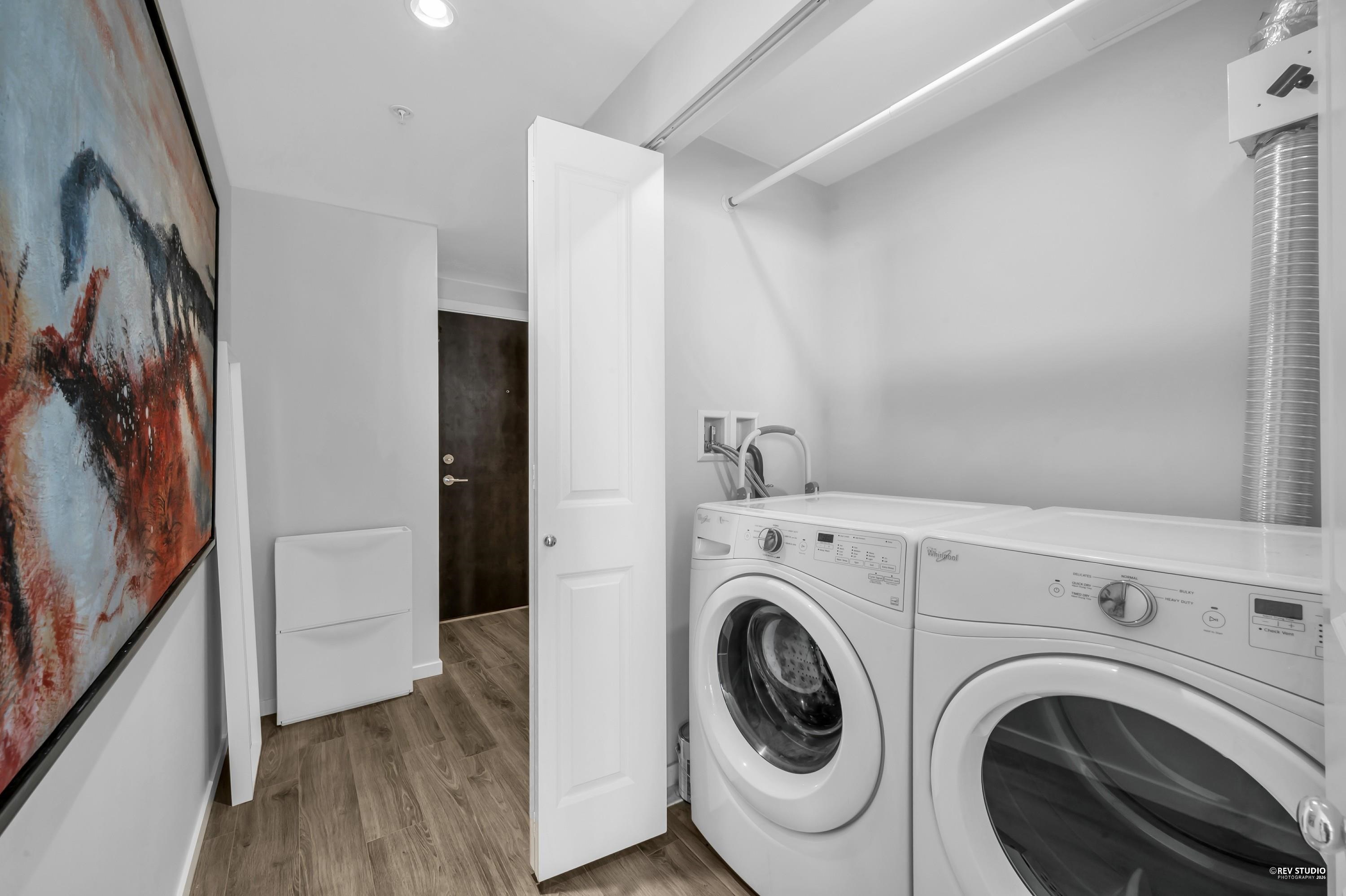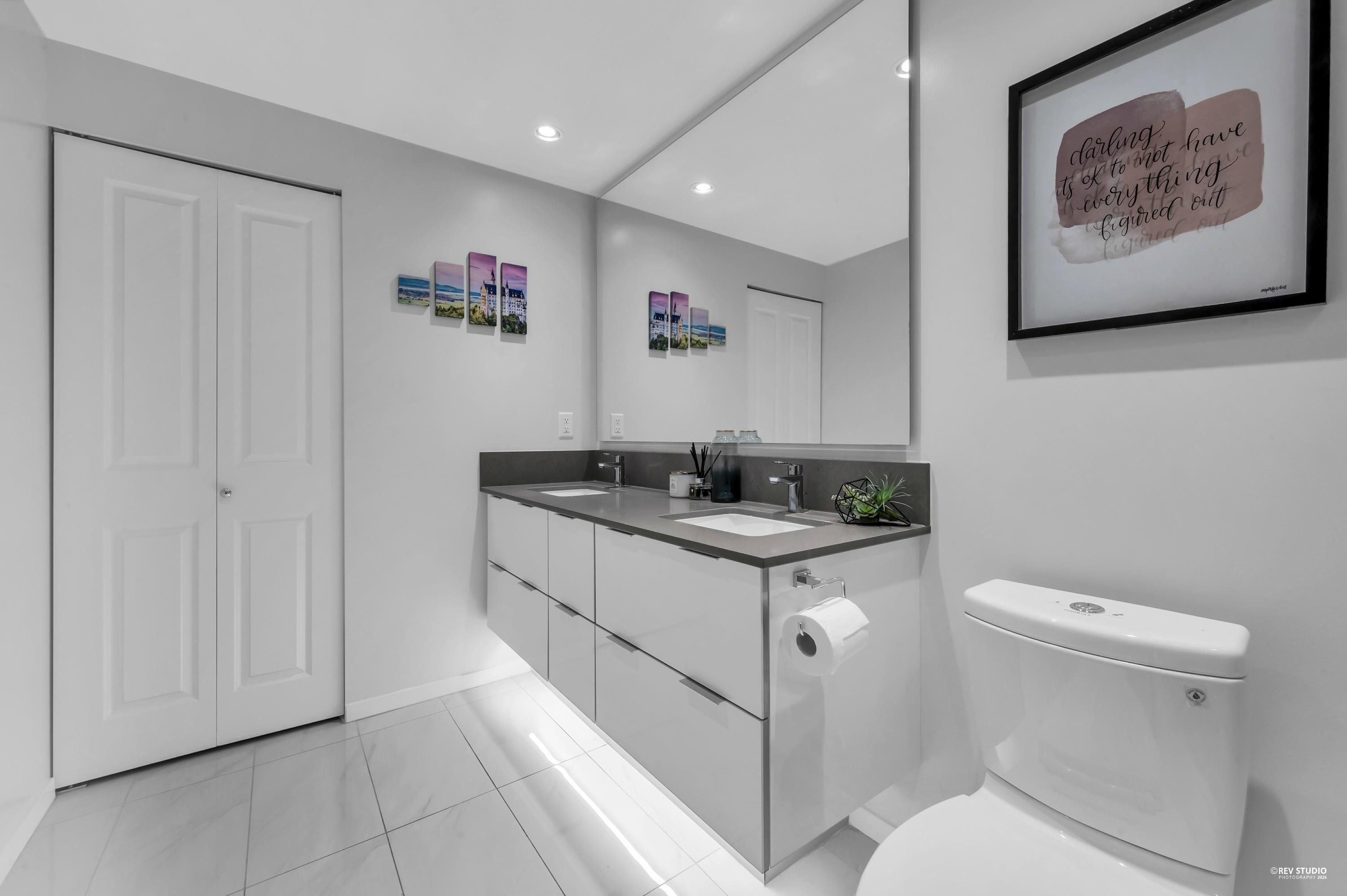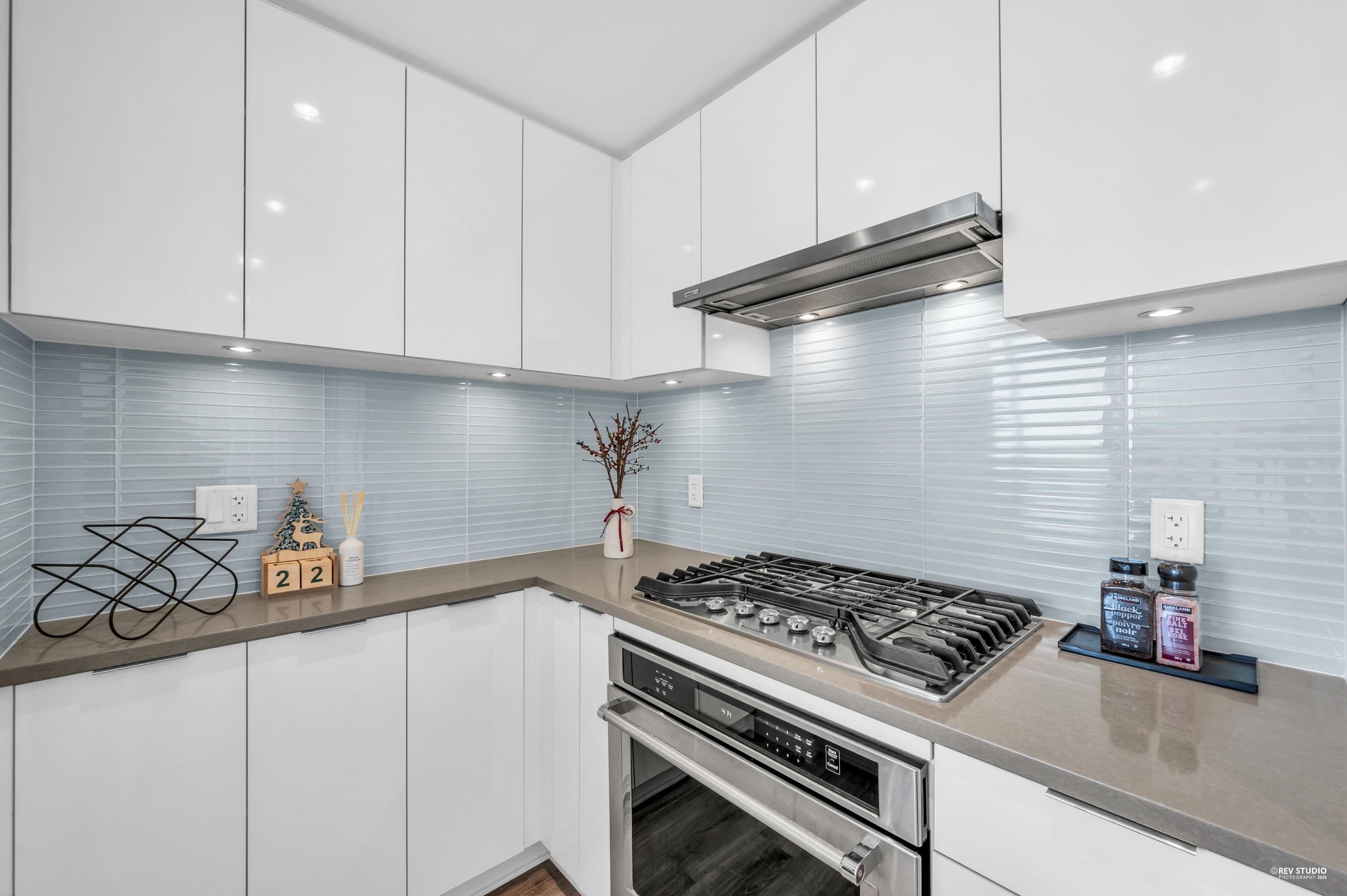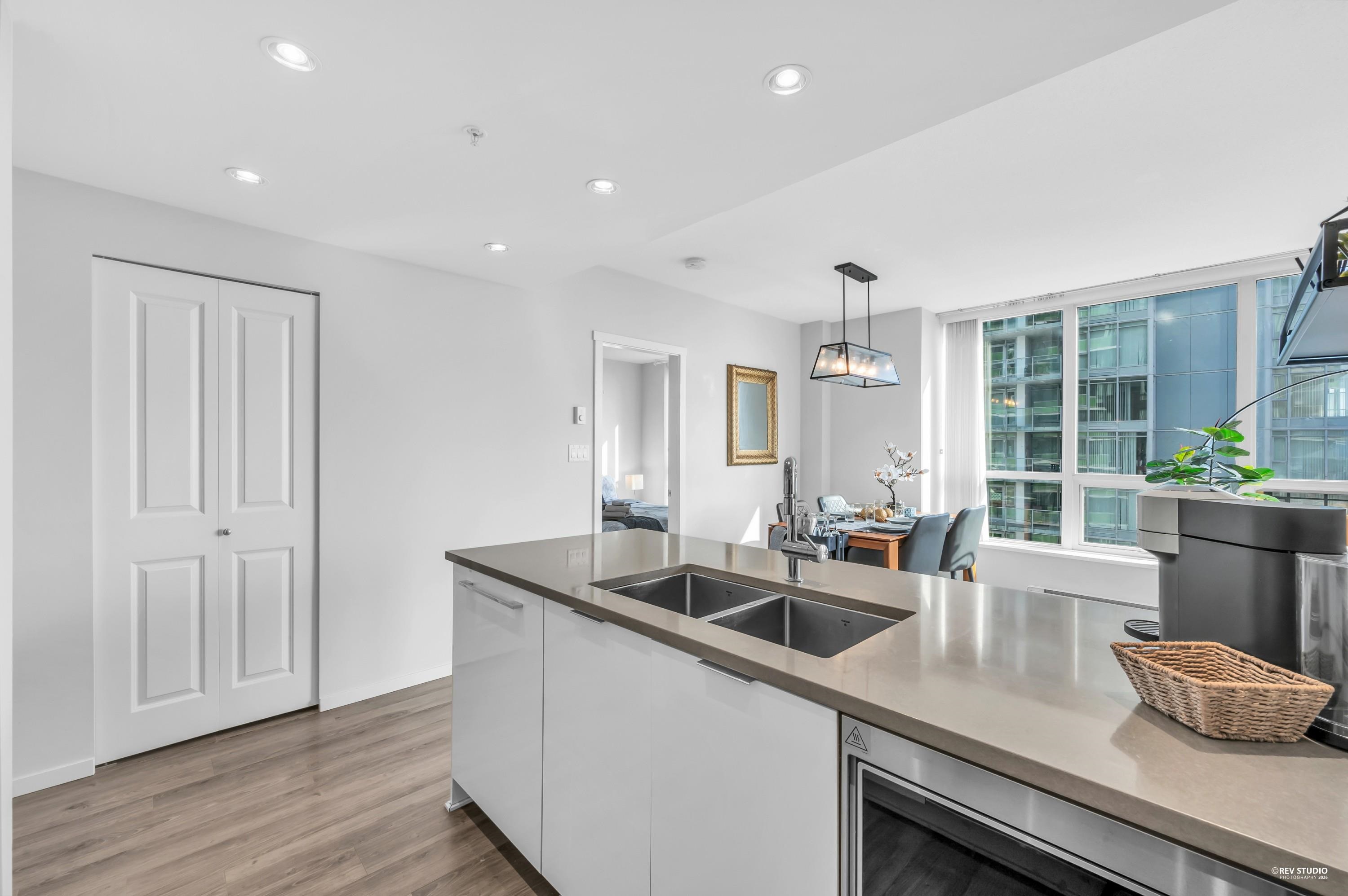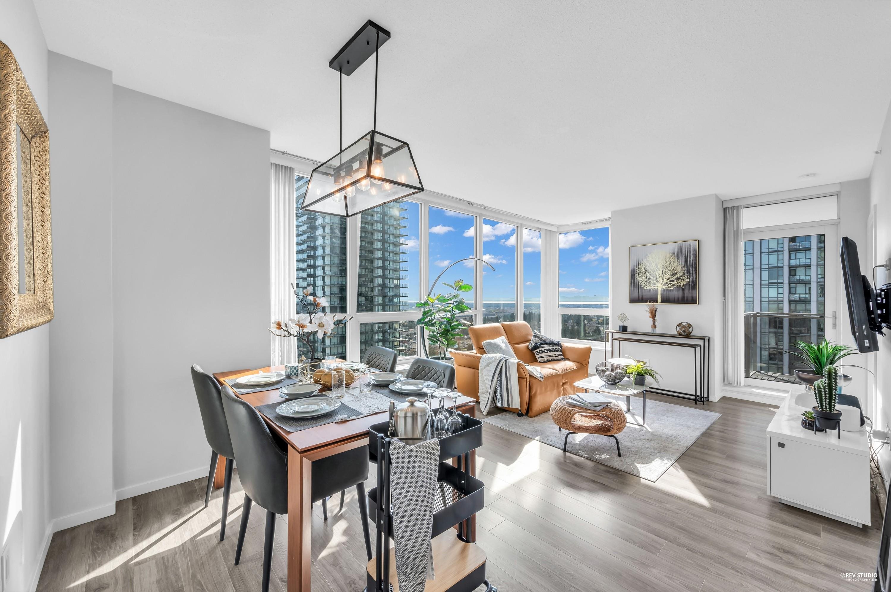 Discover Midori in Metrotown—a bright, modern, and spacious home with a highly functional layout. The gourmet kitchen features a large island, soft-close cabinets, rollout spice rack, and built-in recycling station. Living and dining areas offer wood-style flooring and abundant natural light. The primary bedroom includes a walk-in closet with a newly installed organizer, spa-inspired ensuite, and new bedroom flooring. Enjoy side-by-side in-suite laundry, plus the rare bonus of 2 parking stalls and 2 lockers...