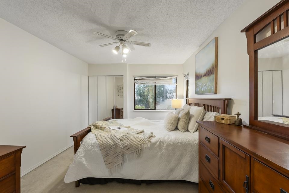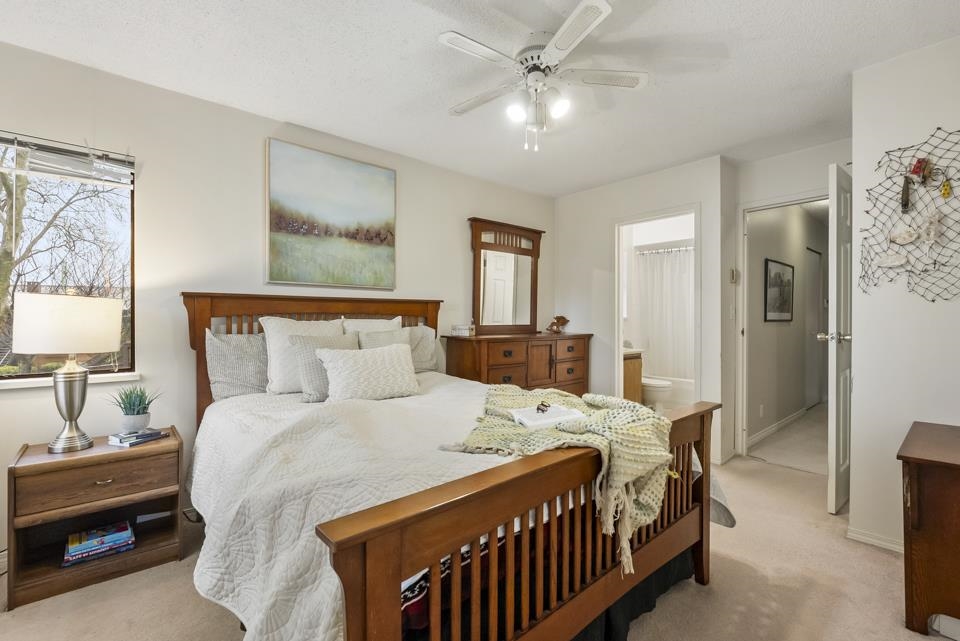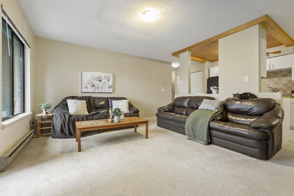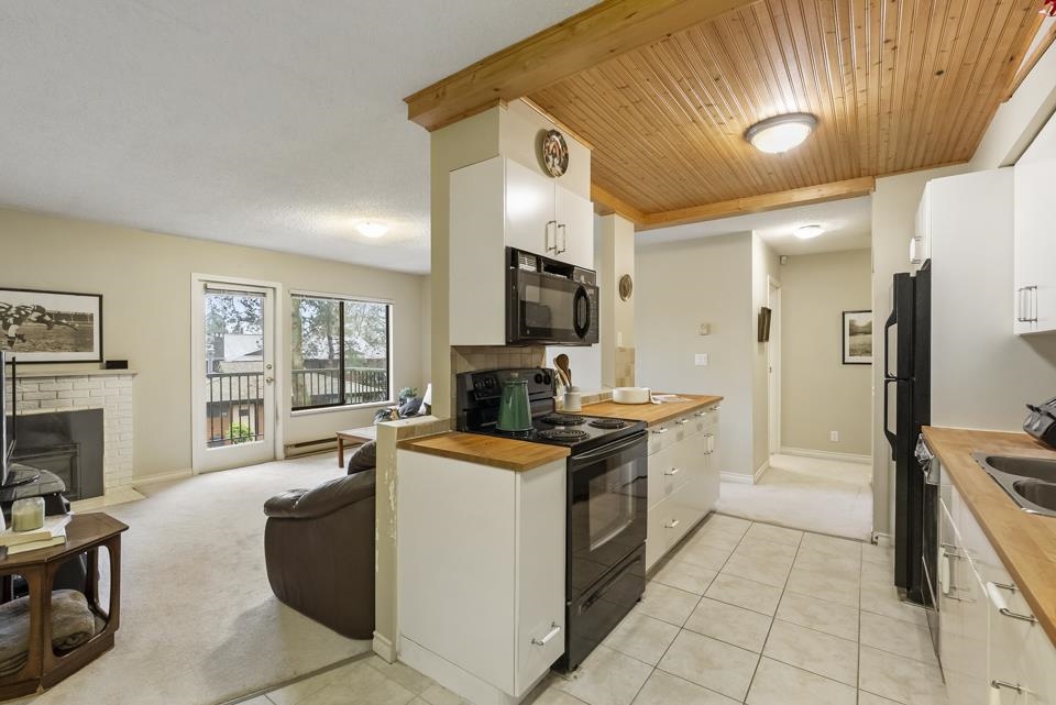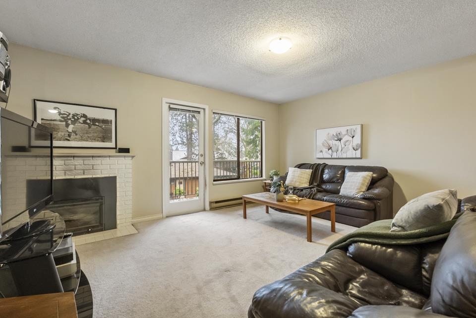 Inviting 2BR 1BTH Guildford upper-level townhome. Welcoming you home is a large picture window allowing tons of natural light to illuminate your spacious living & dining rooms opening onto a sizable balcony perfect for summer barbecues or relaxed weekend brunches. Clean white appliances coupled with ample cabinet space & butcher block-style counter tops make every meal preparation a delight. Both bedrooms offer mirrored closets with primary bed boasting an airy, sunlit ensuite. Ideal for all lifestyles, pet...