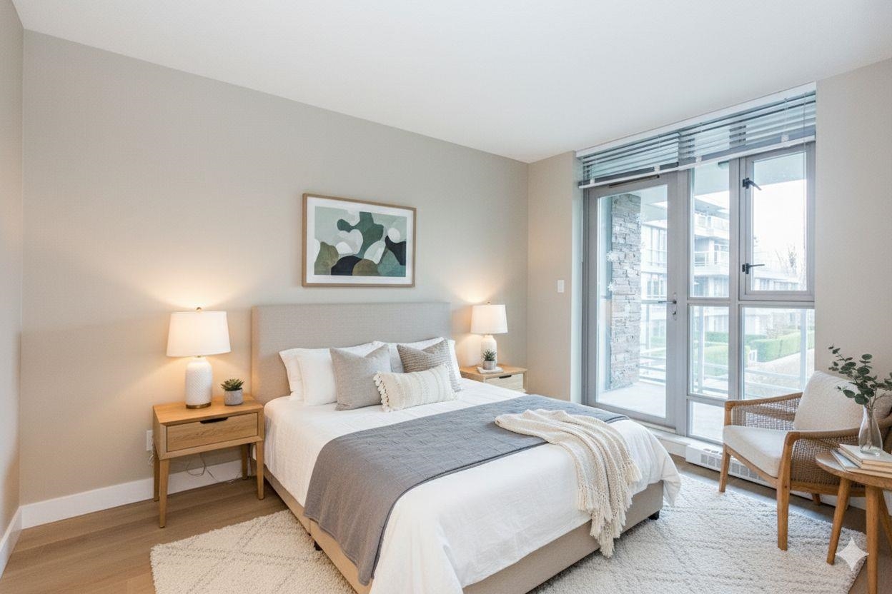 Welcome to your new home in this luxurious low rise concrete residences built by Cressey. Overlooking the North Shore Mountains and courtyard, this spacious 2 bedroom unit has new laminate flooring throughout the unit, walk-in closets with close organizers, a gourmet kitchen with double granite countertops and KitchenAid stainless steel appliances. Freshly painted with new blinds, new tiles in second bathroom. Amenities include; a 6600sqft clubhouse with indoor pool , gym, steam room and games room. Steps t...