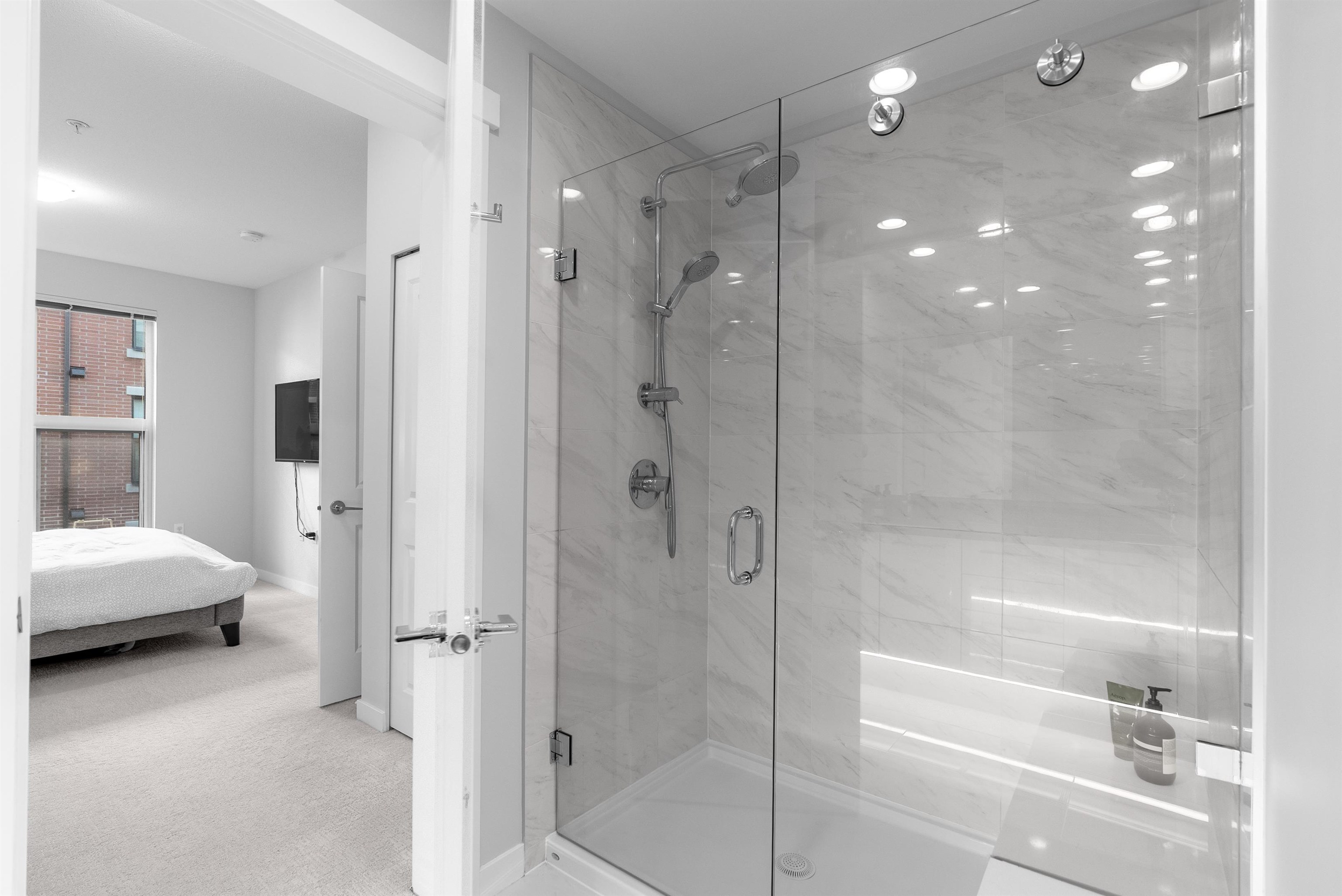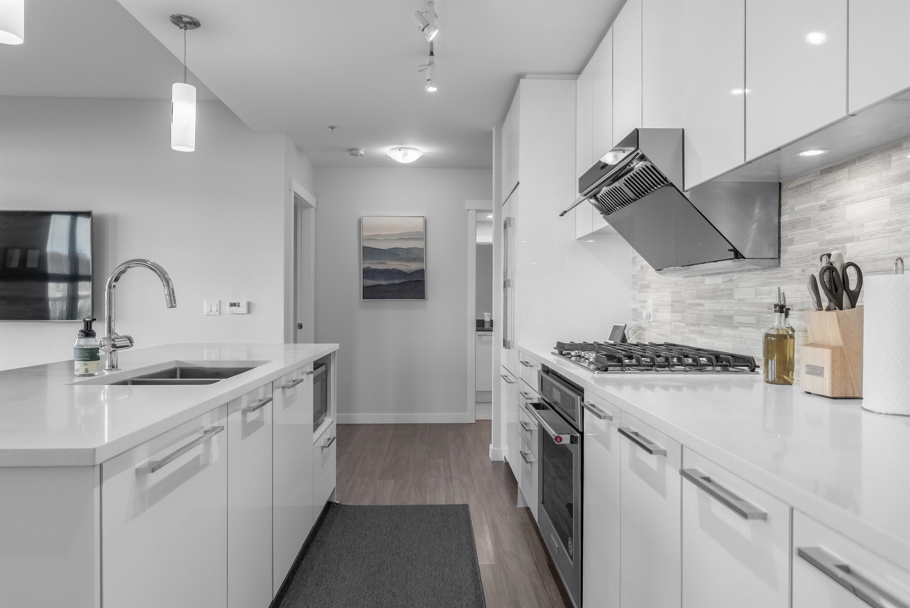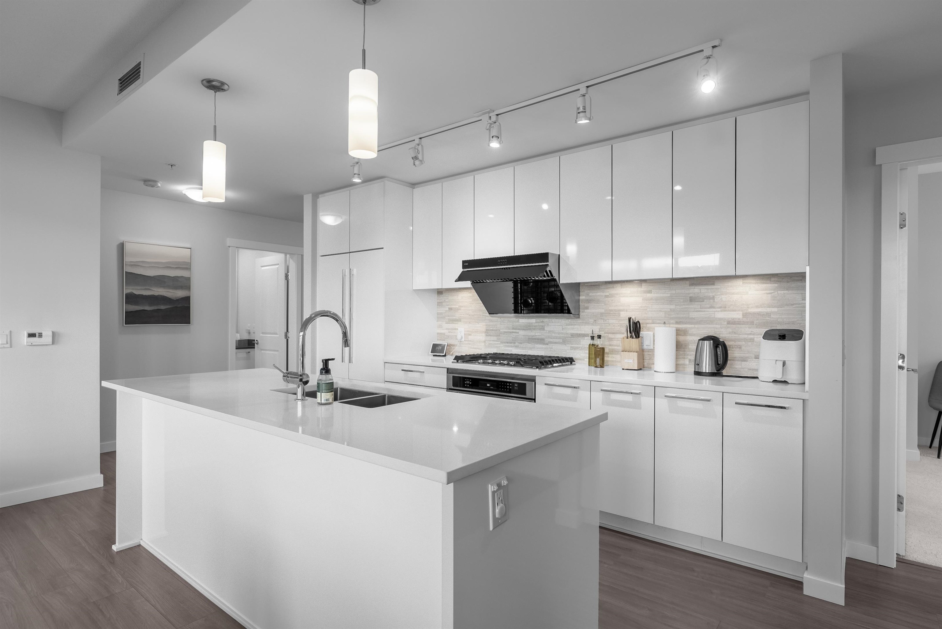 Absolutely immaculate and air-conditioned NE CORNER 3 bedroom condo w/ 2 full bathrooms and 2 full-sized EV SxS parking spots! With 1120 SF of spacious living, this home features an open gourmet kitchen w/ island, quartz counters, KitchenAid & Fisher Paykel SS appliances, new Fotile hood fan, brand new LG washer/dryer, laminate floors, upgraded LED pot lights in baths, window screens and great covered balcony. Comes complete w/ 2 lockers and geothermal heat pump for heating and cooling. Residents have a...