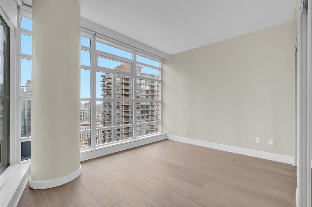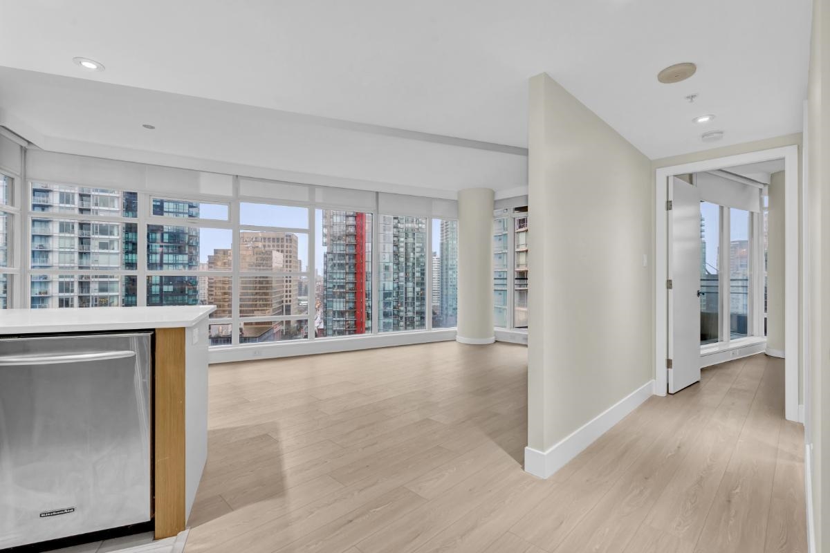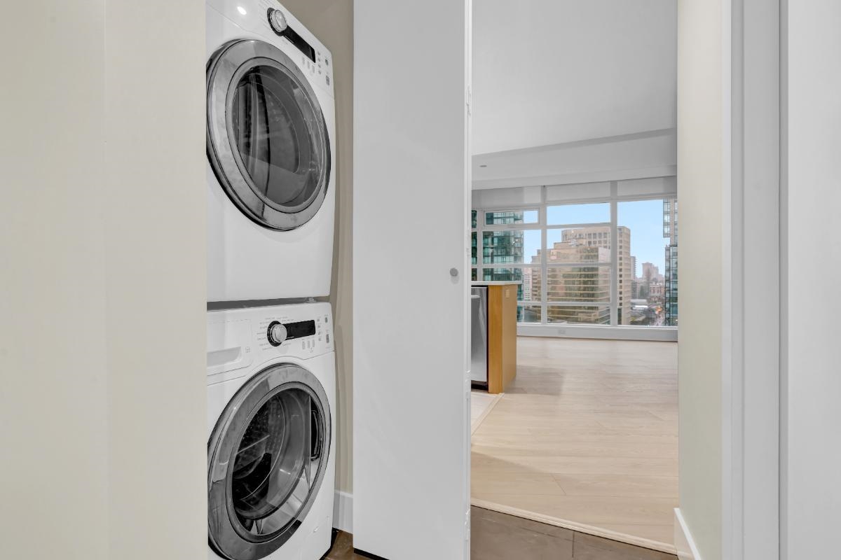 This gorgeous 1-bed + den corner unit offers corridor views of Stanley Park, the mountains, and the harbour from a generously sized balcony. Enjoy year-round comfort with air conditioning and geothermal heating included in your strata fees. Inside, the home features floor-to-ceiling windows, premium hardwood floors, stainless steel appliances, and stone countertops. The well-managed strata boasts a substantial contingency reserve fund while offering resort-style amenities, including 24-hr concierge and secu...