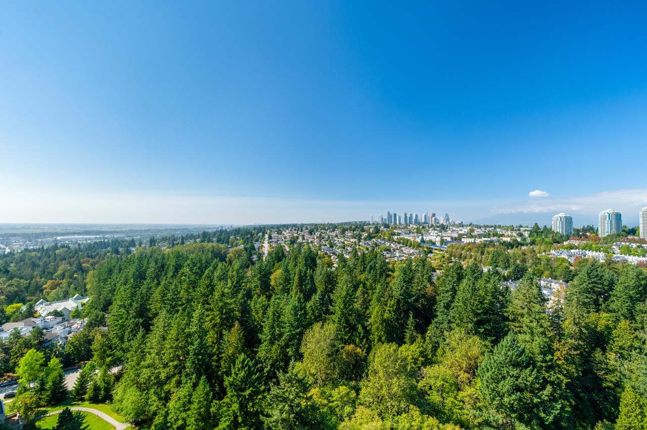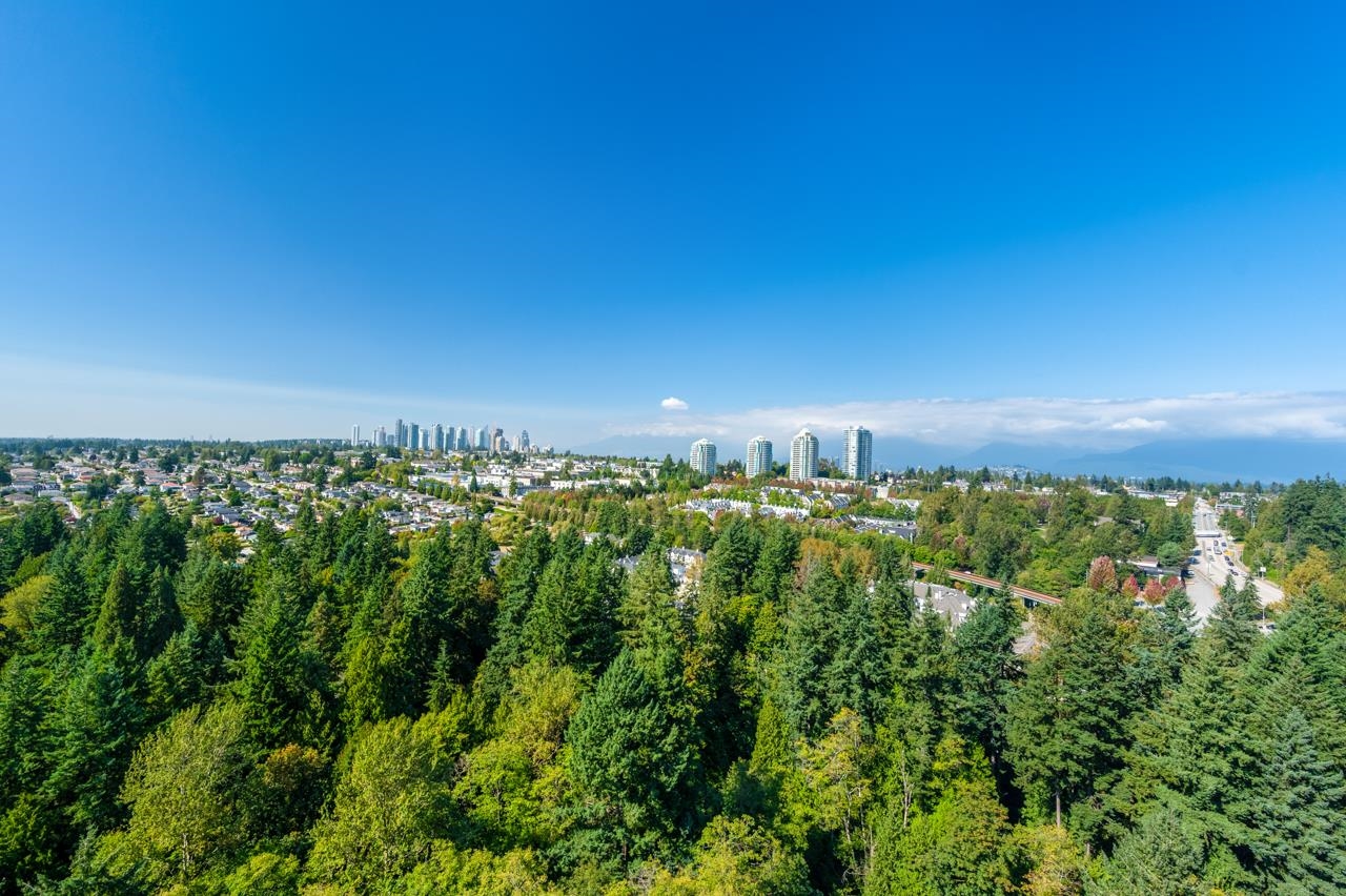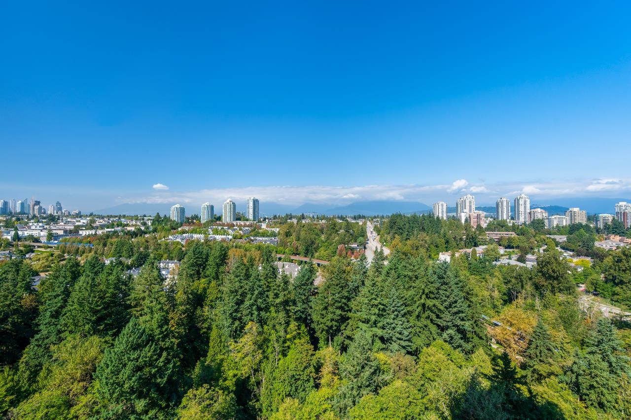 Attention view lovers! This bright 2-bedroom home plus flex unit offers stunning 270° panoramic views of the city, mountains & lowlands. Double balconies, it's perfect for gardening or dining al fresco. Soaring ceilings and floor-to-ceiling windows fill the home with light and enhance the spacious feel. Located in the sought-after City in the Park community, you're just a block to Edmonds SkyTrain and steps to parks and trails. Enjoy resort-style amenities including pool, gym, theatre, hot tub, rec room, pa...
