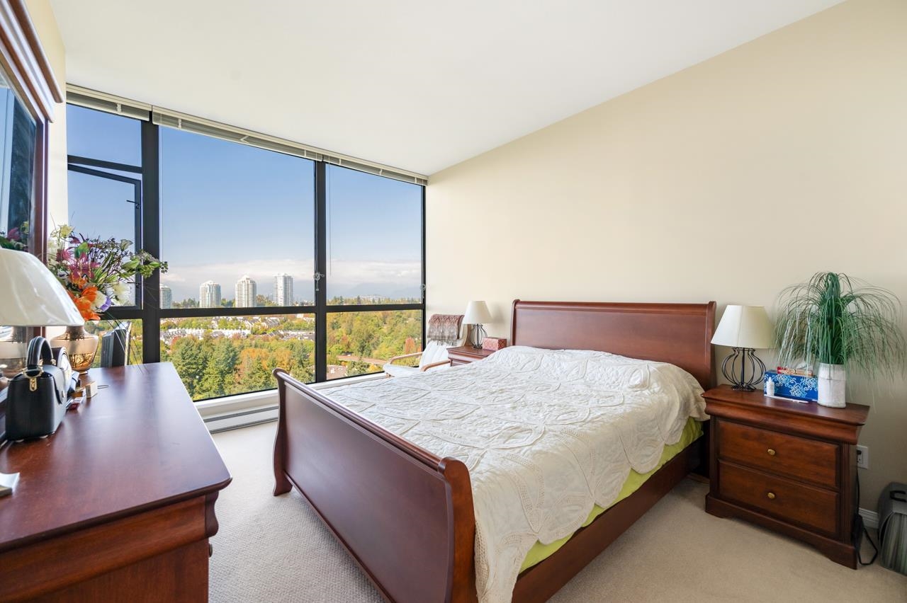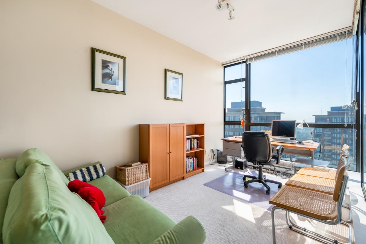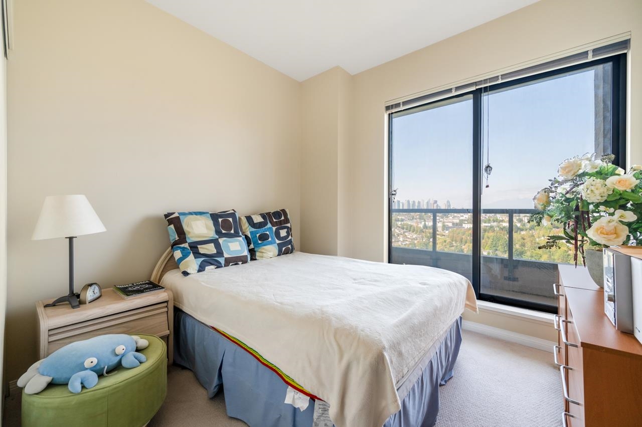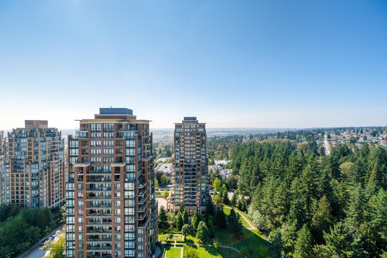 Attention view lovers! This bright 2-bedroom home plus flex unit offers stunning 270° panoramic views of the city, mountains & lowlands. Double balconies, it's perfect for gardening or dining al fresco. Soaring ceilings and floor-to-ceiling windows fill the home with light and enhance the spacious feel. Located in the sought-after City in the Park community, you're just a block to Edmonds SkyTrain and steps to parks and trails. Enjoy resort-style amenities including pool, gym, theatre, hot tub, rec room, pa...