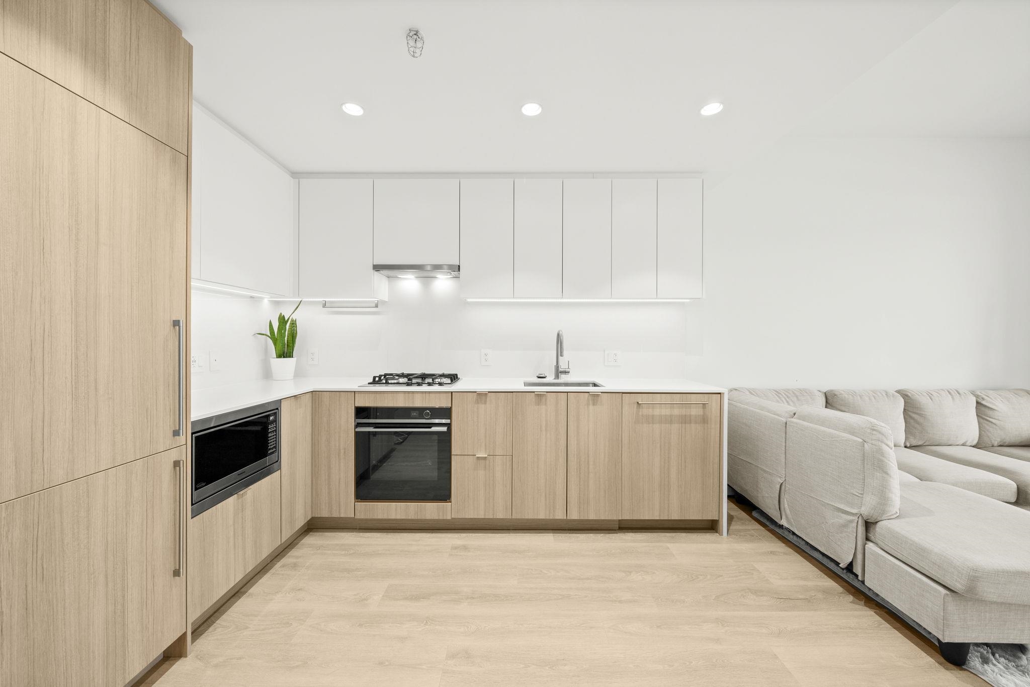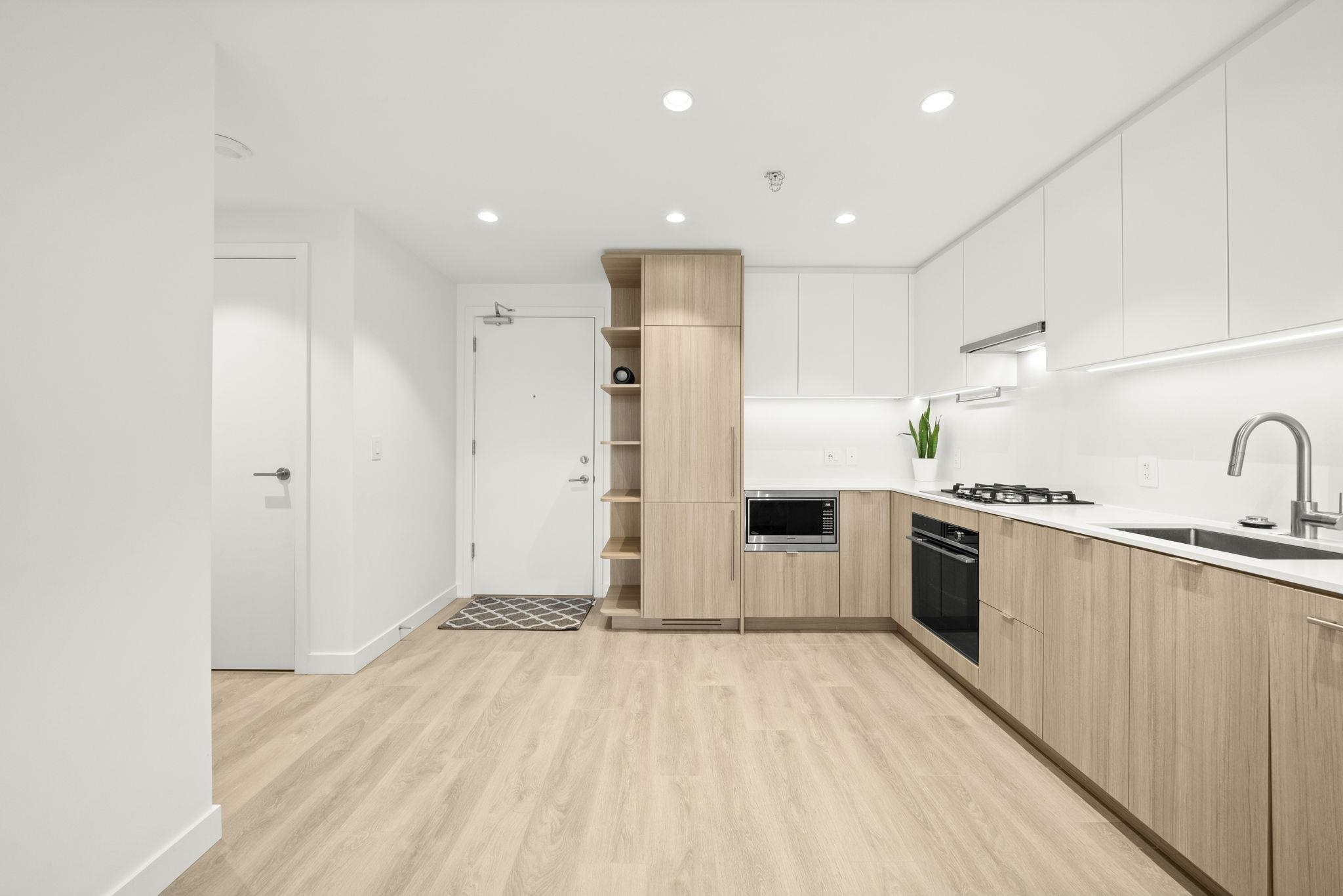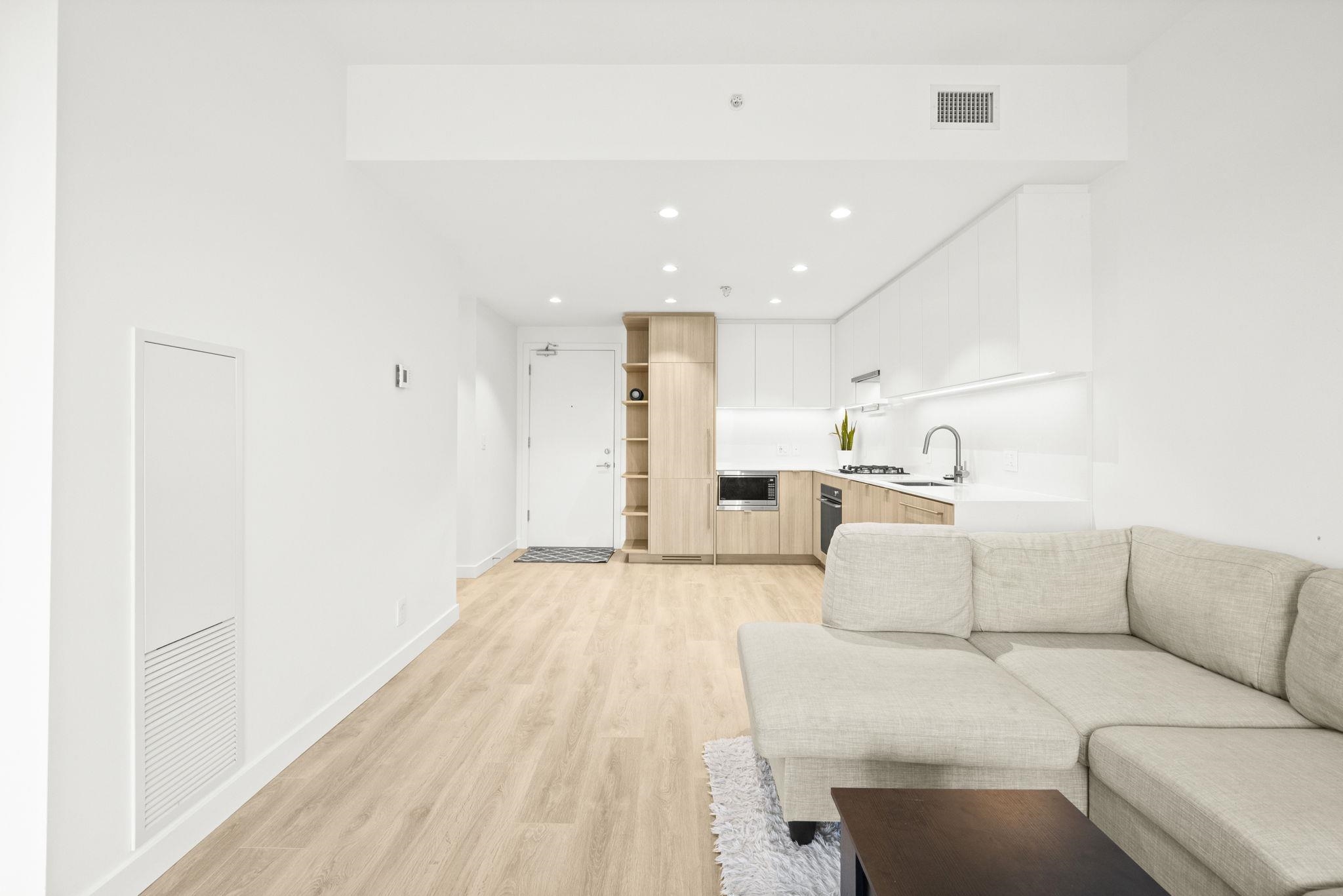 Welcome to West by Beedie Living. This open-plan one-bedroom sub-penthouse features 9-ft+ ceilings, integrated Fisher & Paykel appliances (including a gas cooktop), laminate flooring throughout, energy-efficient heating and A/C, and an extra-large, north-facing private patio with unobstructed mountain views! Amenities include a concierge, guest suite, fitness centre, and a 4th-floor rooftop courtyard with lounge, fireplace, BBQ terrace, and green space. Prime location next to Safeway, Blue Mountain Park, an...