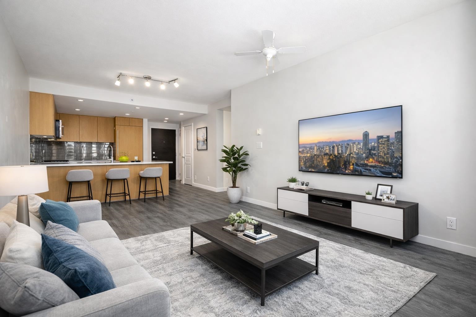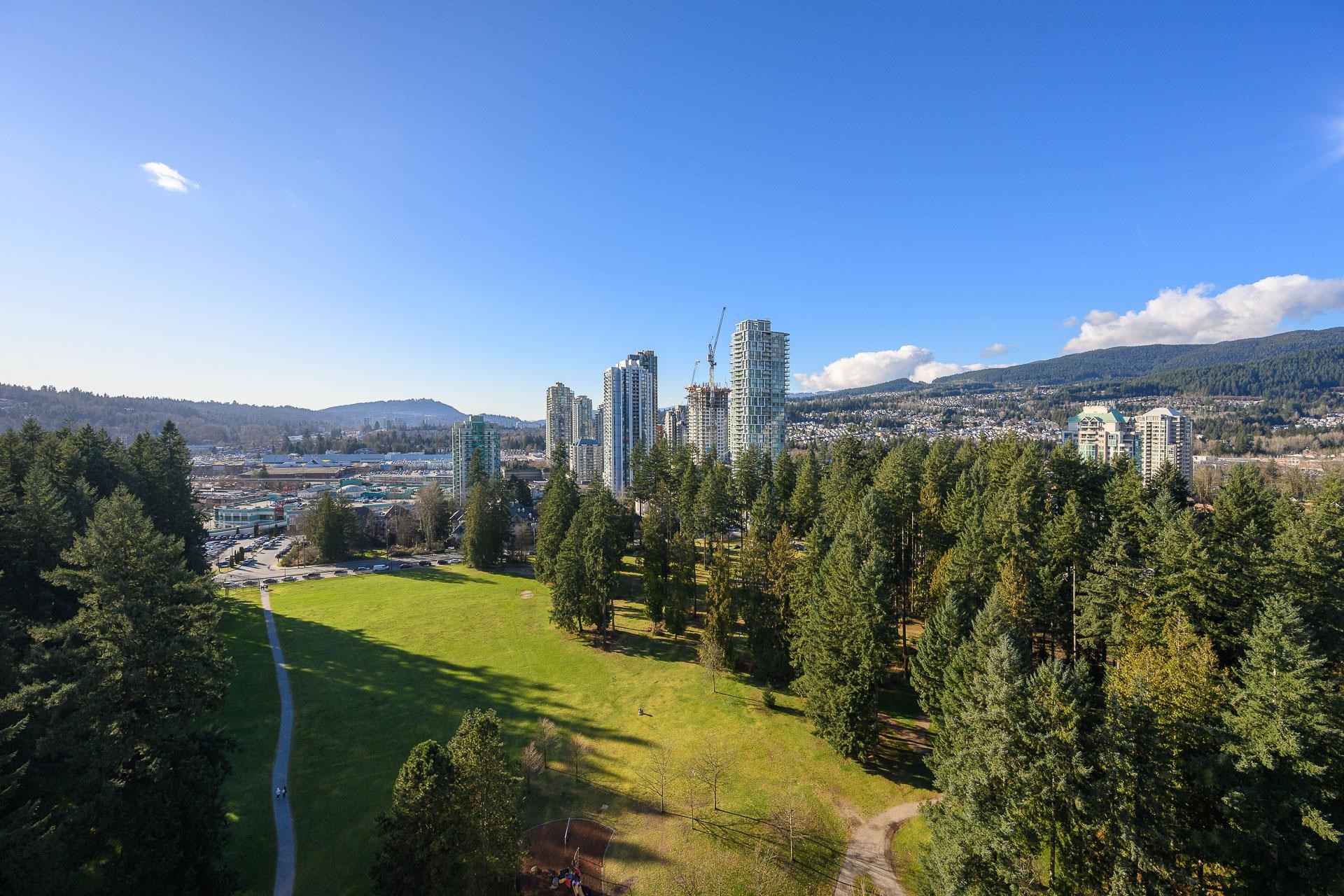 Immaculate 2 bed, 2 bath home on the 23rd floor with amazing city, park & mountain views in Windsor Gate, one of Coquitlam's most sought-after communities. Bright open layout with floor-to-ceiling windows, a beautifully finished modern kitchen with stone countertops, gas cooktop & S/S appliances, and newly updated designer laminate flooring throughout. Spacious primary bedroom features a WIC and 4-piece ensuite. Enjoy resort-style amenities at the 18,000 sq ft Nakoma Club, plus a fully equipped fitness cent...