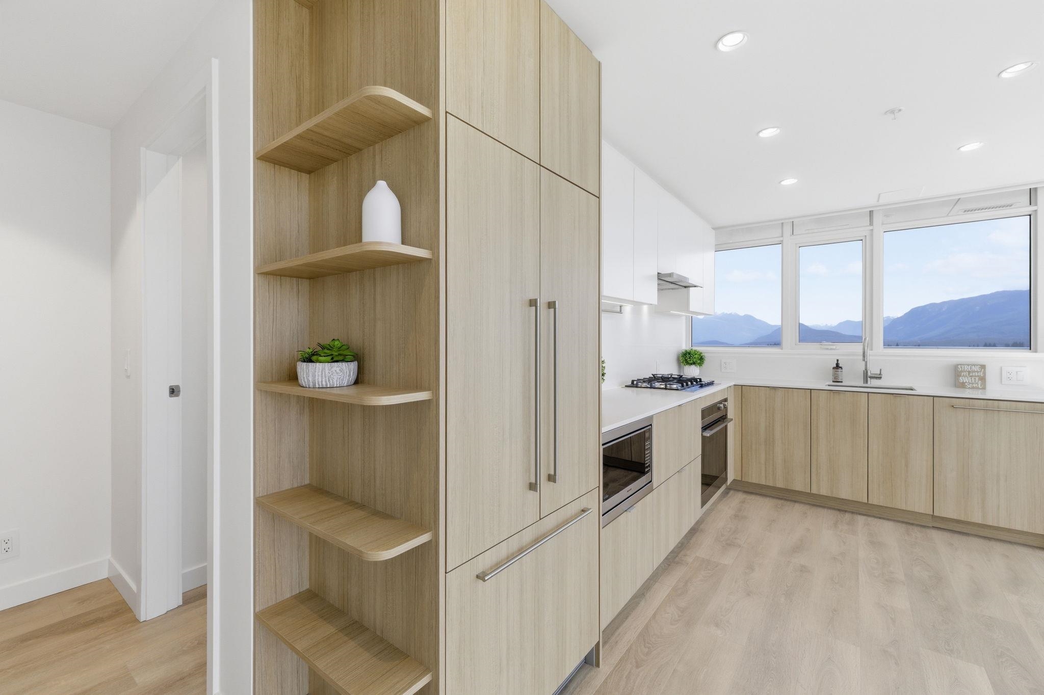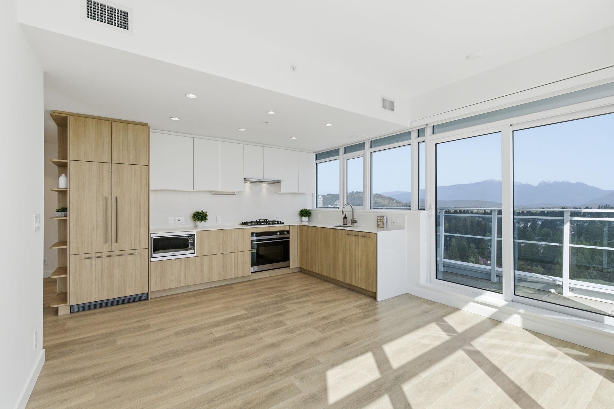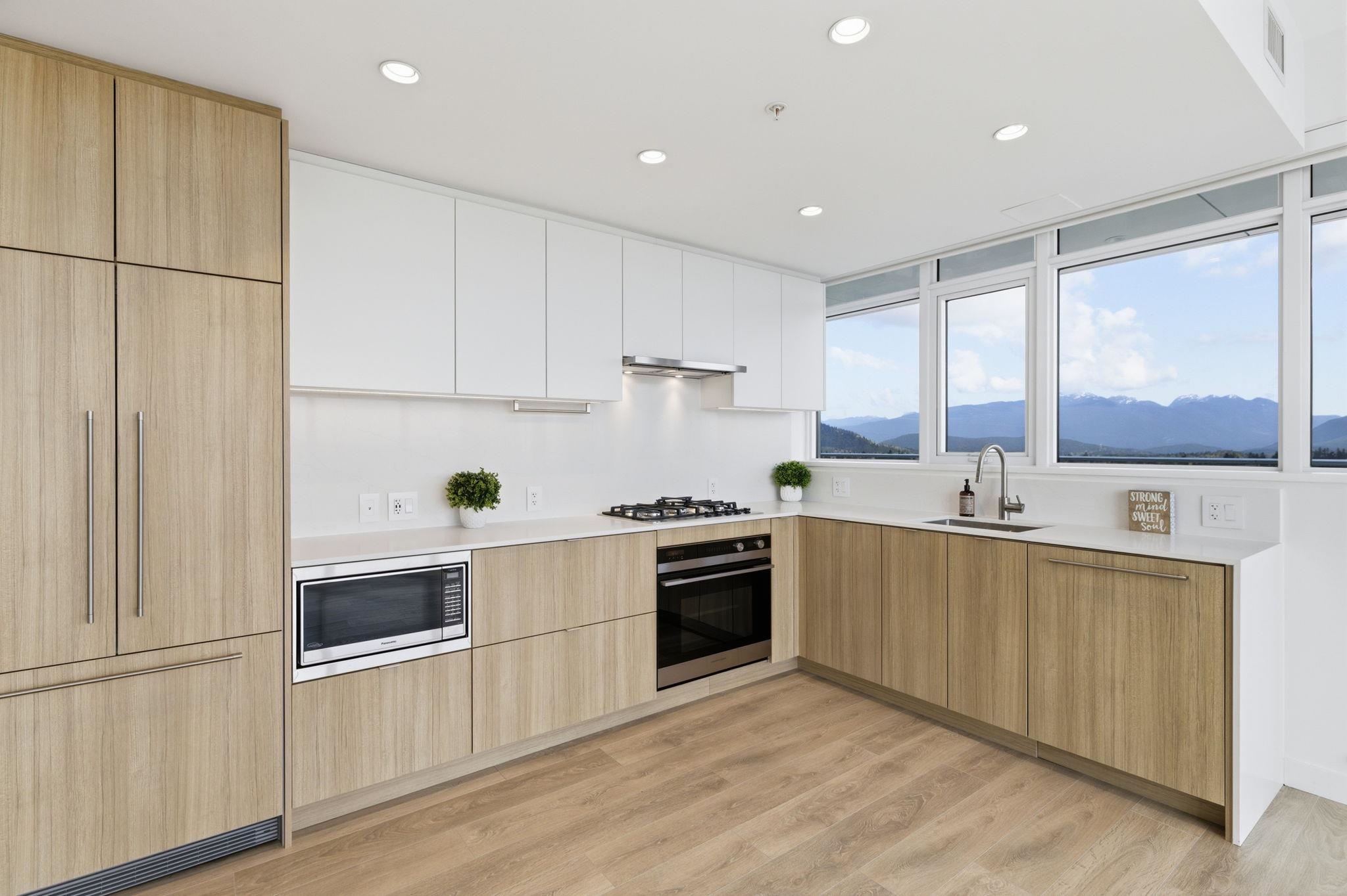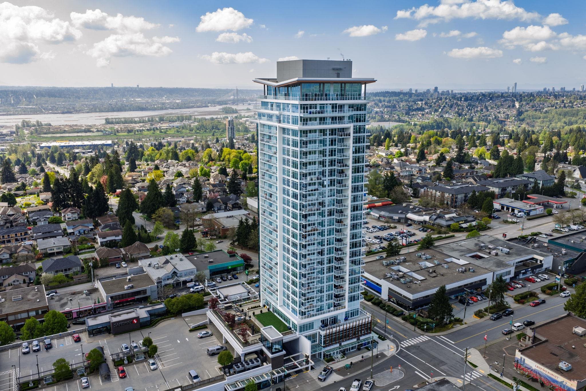 Welcome to a serene 23rd-floor subpenthouse corner retreat at West by Beedie—offering a quiet, elevated living experience above the city. This NE-facing 2bdrm+1bath home features 750sqft of bright, functional space with breathtaking 180° views of mountains, city skyline & Fraser River. Enjoy a rare 140sqft balcony, perfect for relaxing or entertaining. Floor-to-ceiling windows bring in abundant natural light, including a rare kitchen window. Features include quartz countertops, integrated Fisher & Paykel & ...