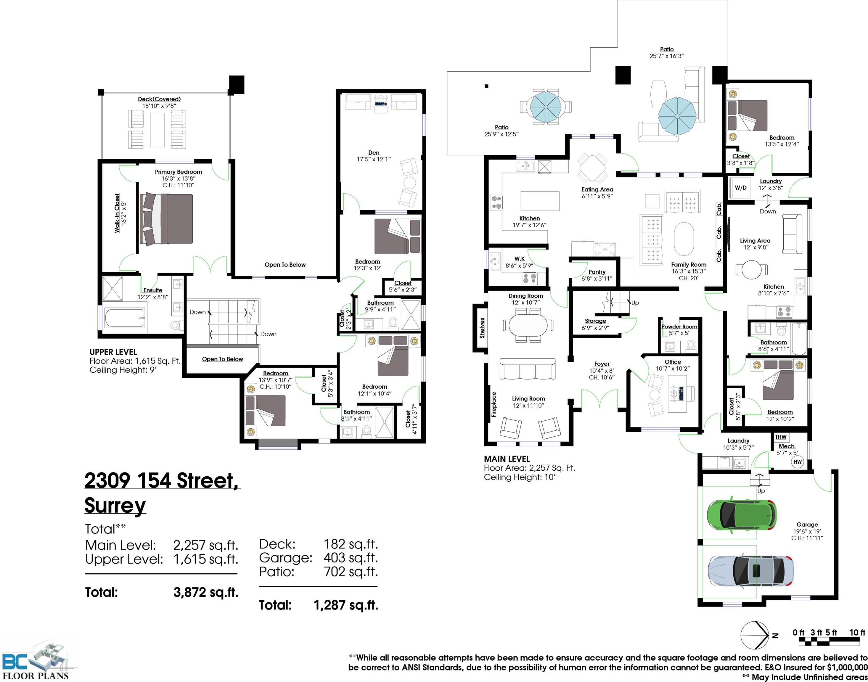 Beautiful contemporary home in South Surrey that blends luxory, functionality, and flexibility. Main floor features large family room and living room withvaulted ceilings. Both a wok kitchen and open-style kitchen are available to suit your culinary needs. Stairway leads to a generous landing on the secondfloor, featuring 4 bedrooms each with ensuite. Dens on both floors allowing dedicated space for work in comfort. Also contains a fully featured ground level10ft ceiling 2-bedroom suite with separate entran...