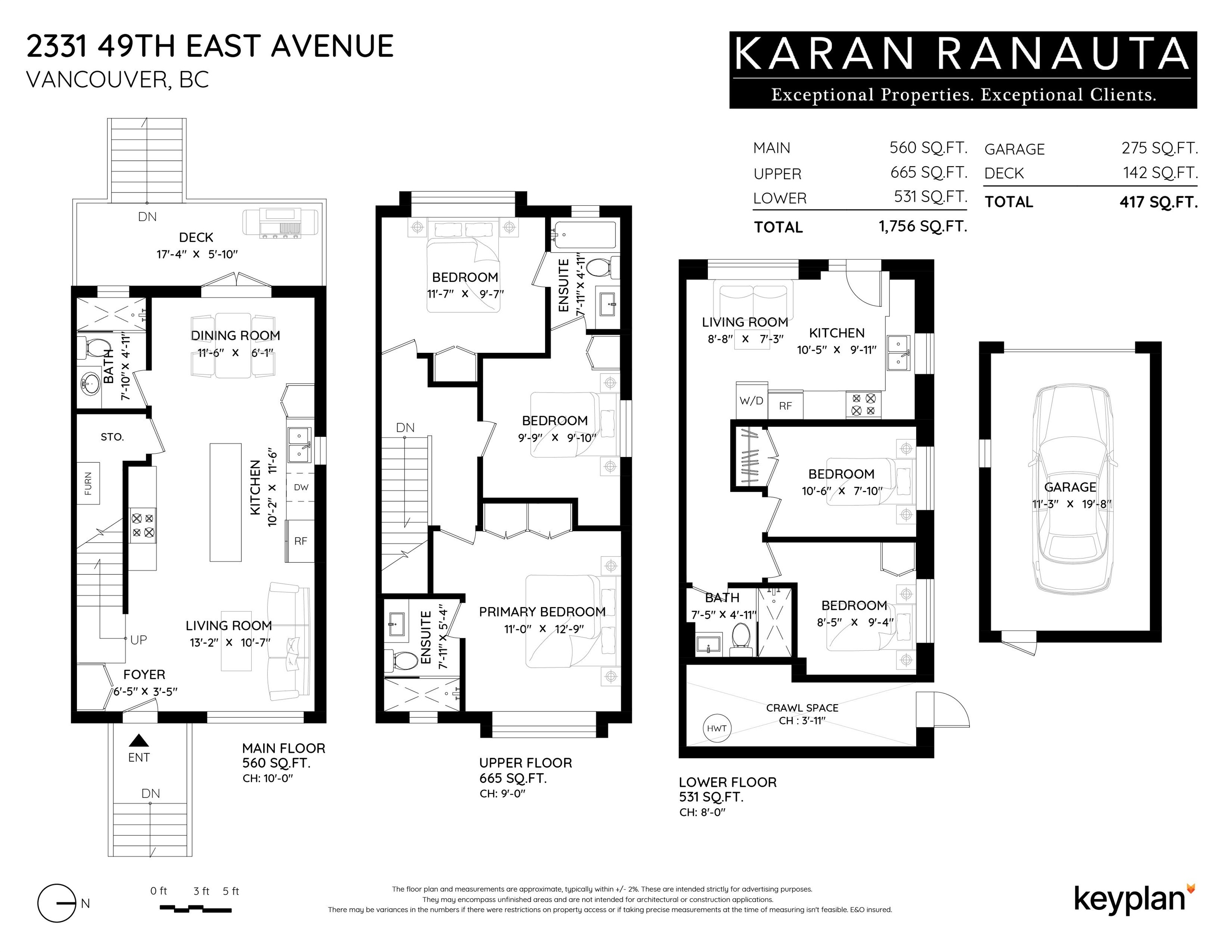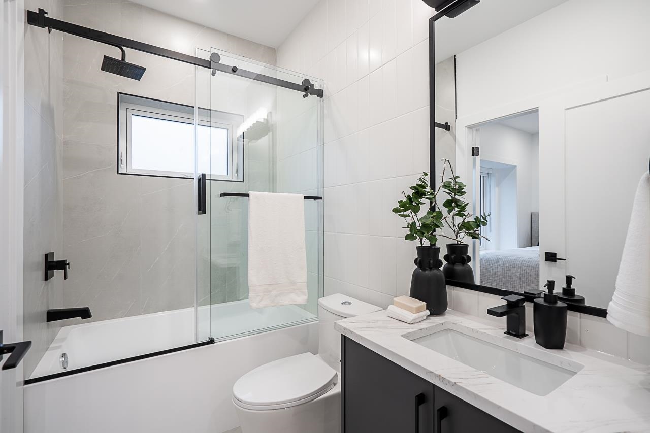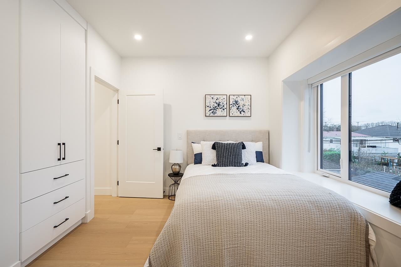 Best Value in Killarney! Discover 2331 E 49th Ave, a modern duplex crafted by Can West Development in Vancouver's Killarney neighbourhood! This luxurious 1,756 sqft home features 5 bedrooms and 4 bathrooms, including a 2-bedroom, 1-bathroom legal suite perfect for rental income or extended family. Highlights include engineered hardwood floors, white oak millwork, a chef's kitchen with a 6 burner gas range, and built-in appliances. With integrated security cameras, a roughed-in vacuum, and an EV-ready garage...