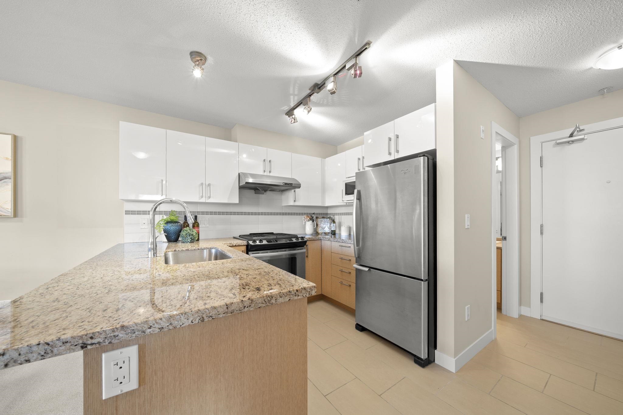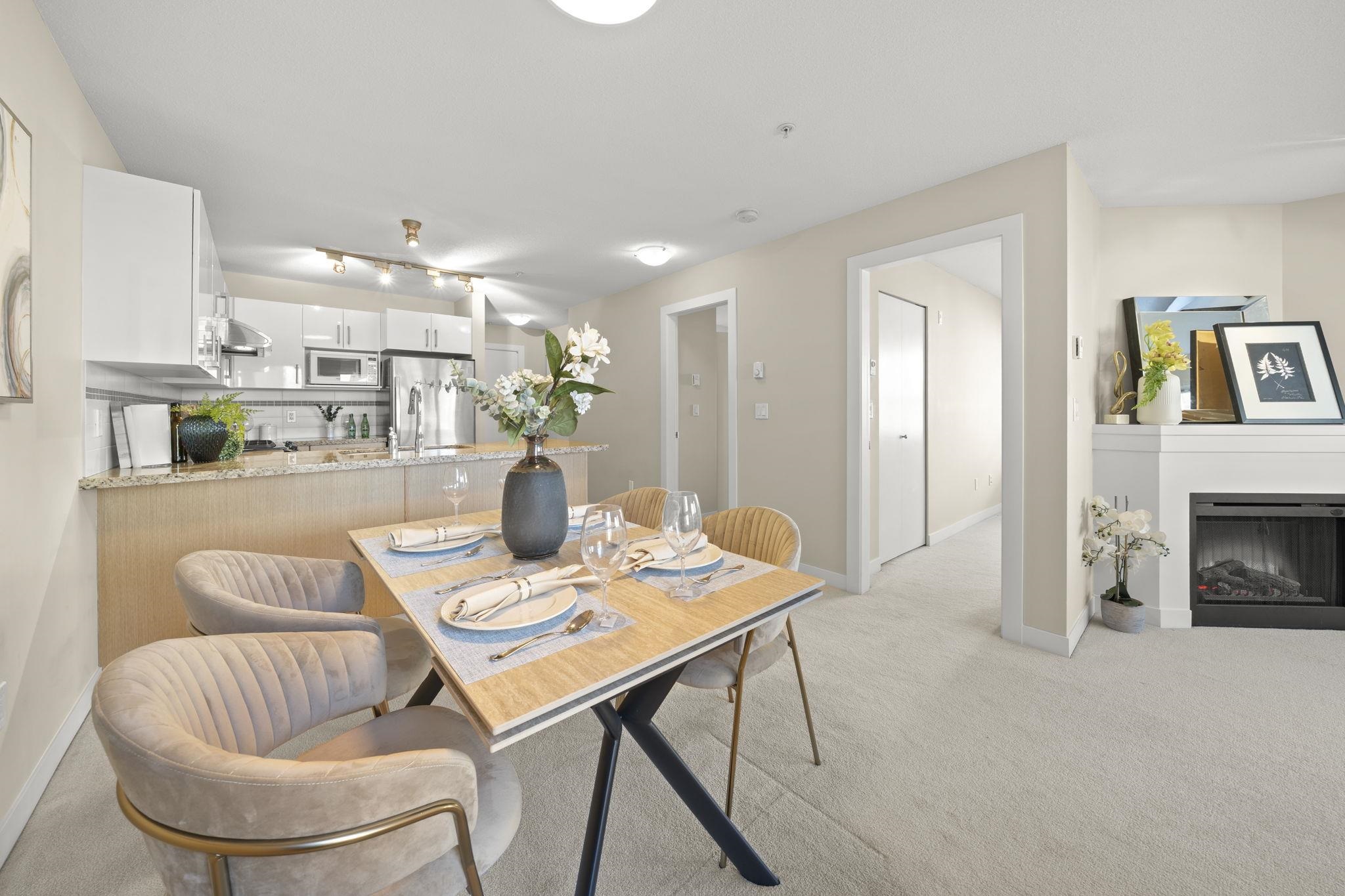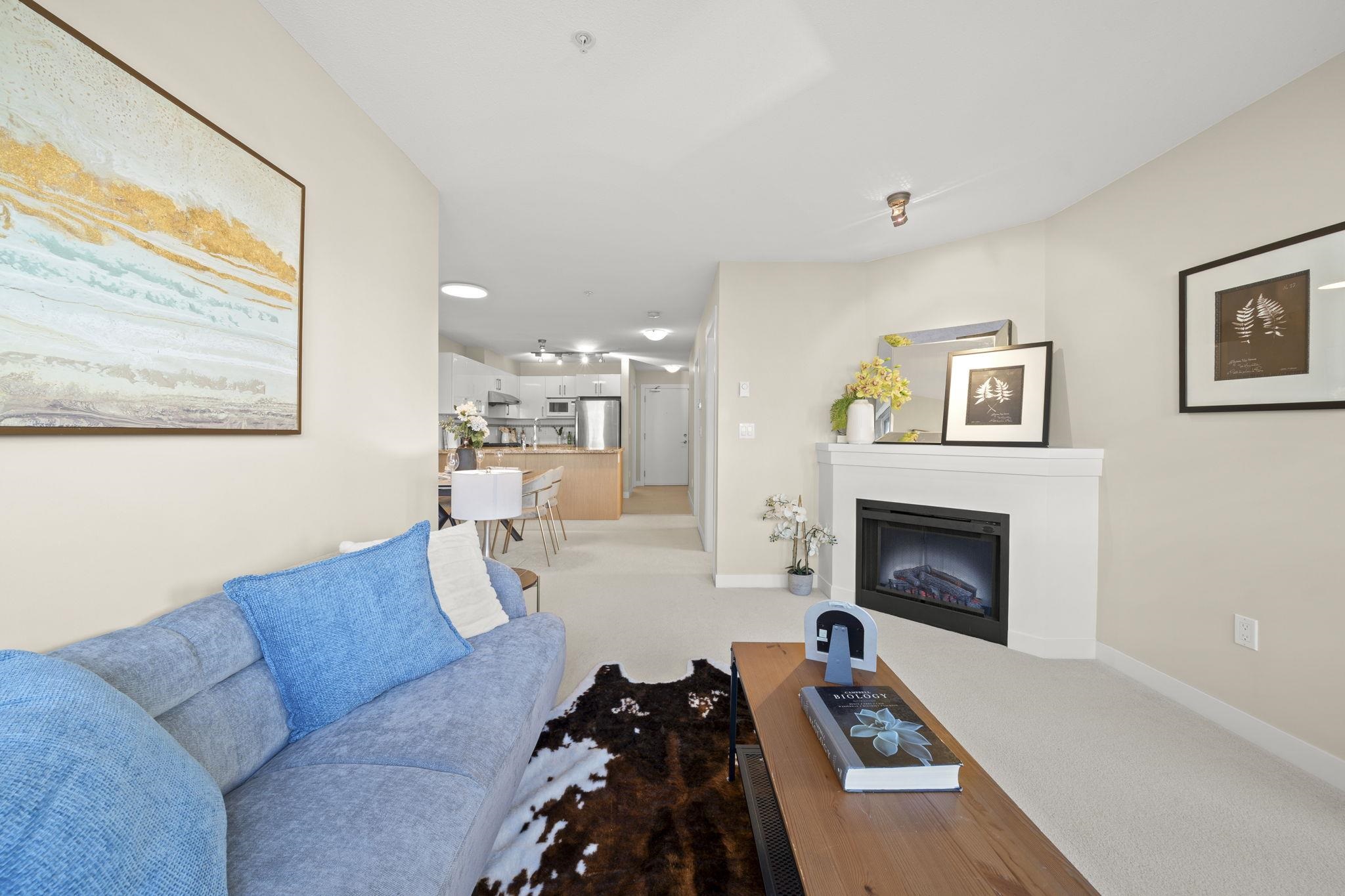 Welcome to Saffron by Ledingham McAllister, a well-built community in the heart of Central Richmond. This bright and functional 2 bed, 2 bath home features an open-concept layout with generous living space and a large balcony—perfect for everyday living. Enjoy a gourmet kitchen with granite countertops, stainless steel appliances, modern cabinetry, and a gas range. The living and dining area offers a comfortable, open layout with a cozy fireplace, creating a warm and inviting space for everyday living. Qu...