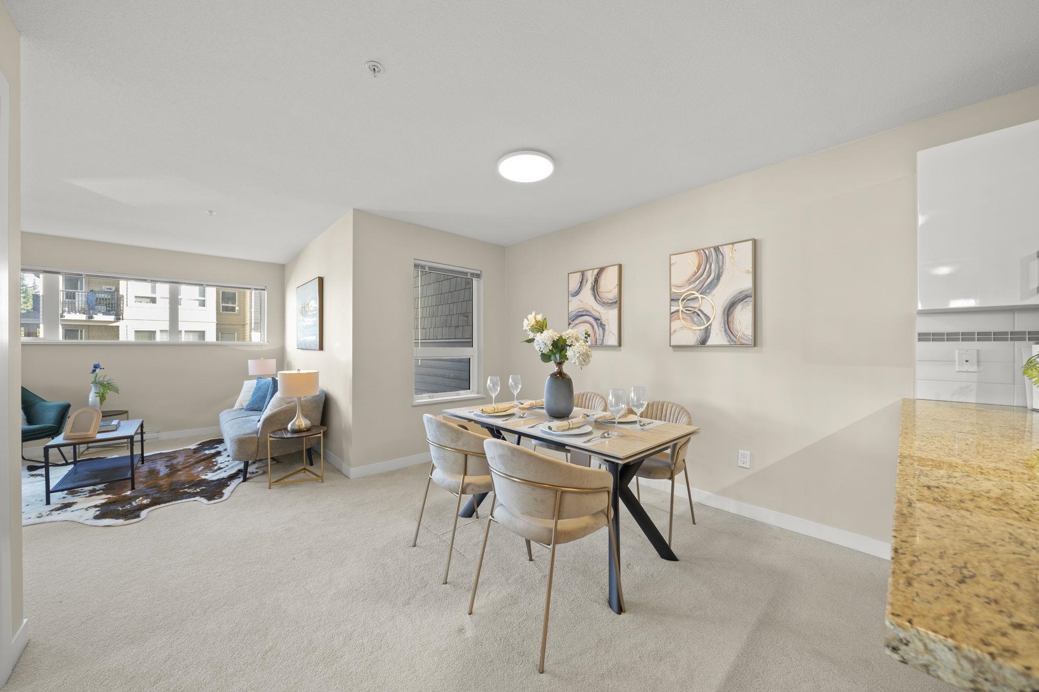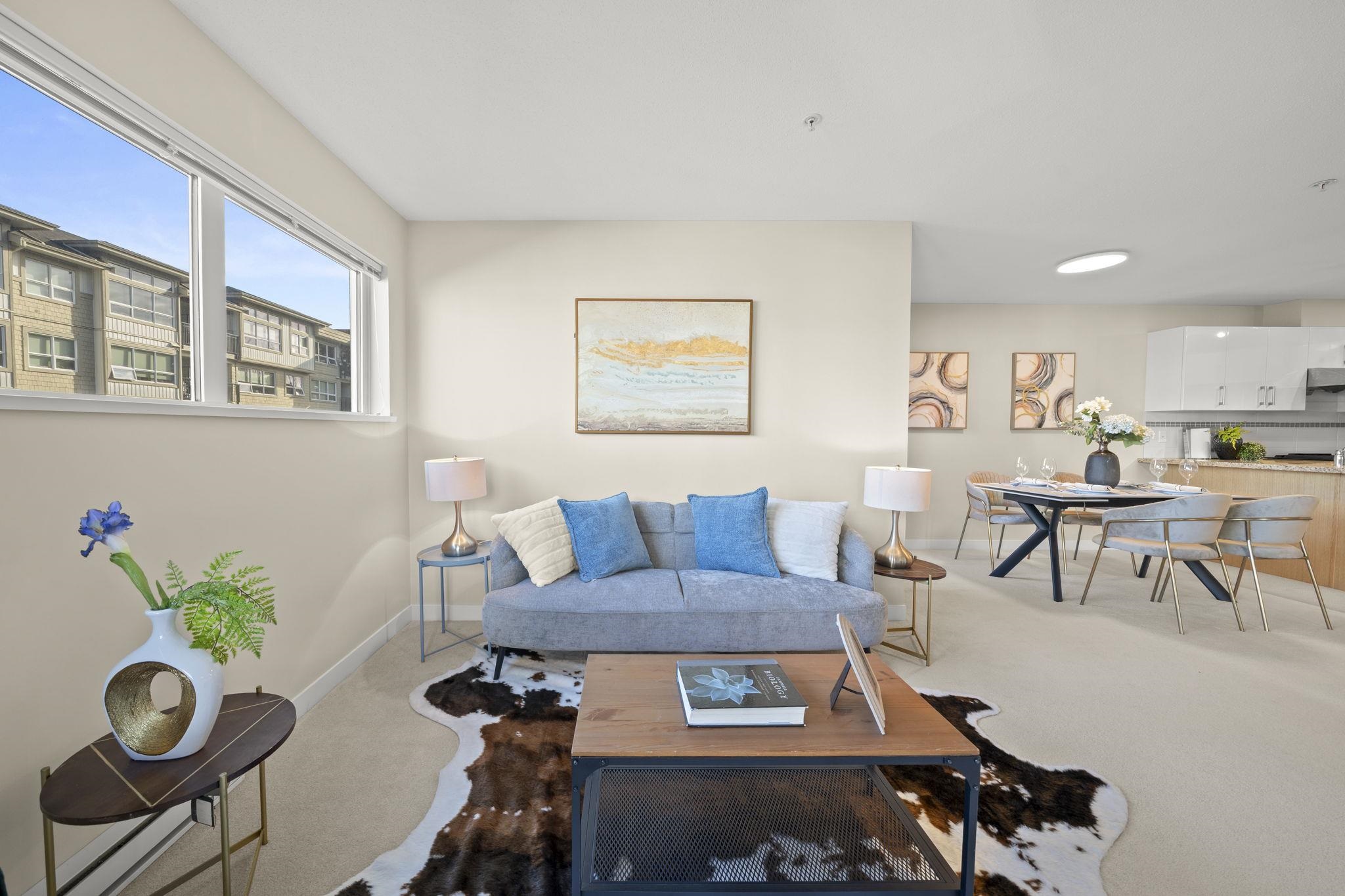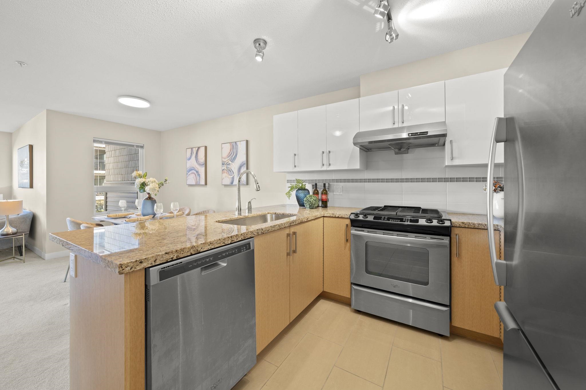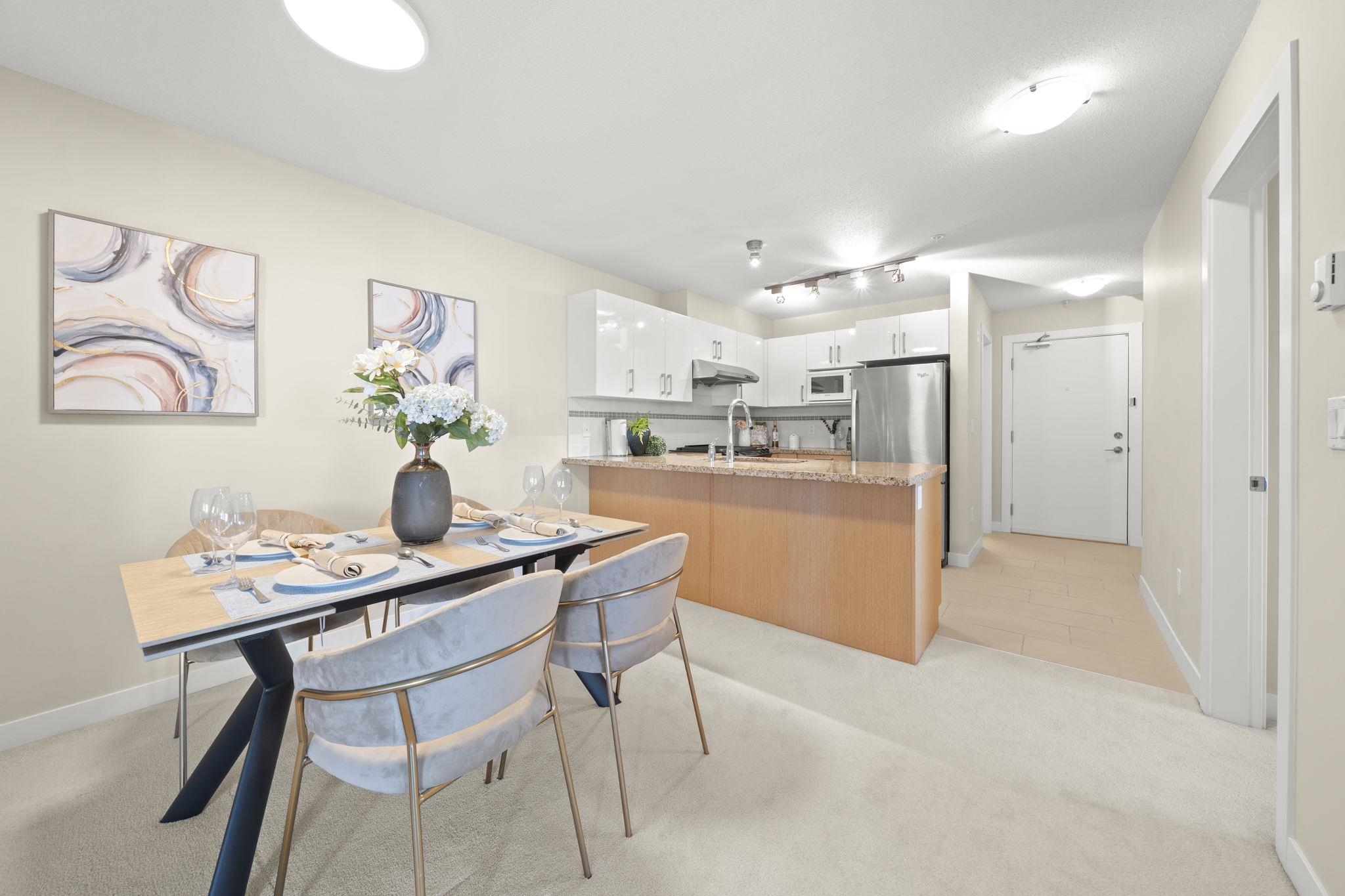 Welcome to Saffron by Ledingham McAllister, a well-built community in the heart of Central Richmond. This bright and functional 2 bed, 2 bath home features an open-concept layout with generous living space and a large balcony—perfect for everyday living. Enjoy a gourmet kitchen with granite countertops, stainless steel appliances, modern cabinetry, and a gas range. The living and dining area offers a comfortable, open layout with a cozy fireplace, creating a warm and inviting space for everyday living. Qu...
