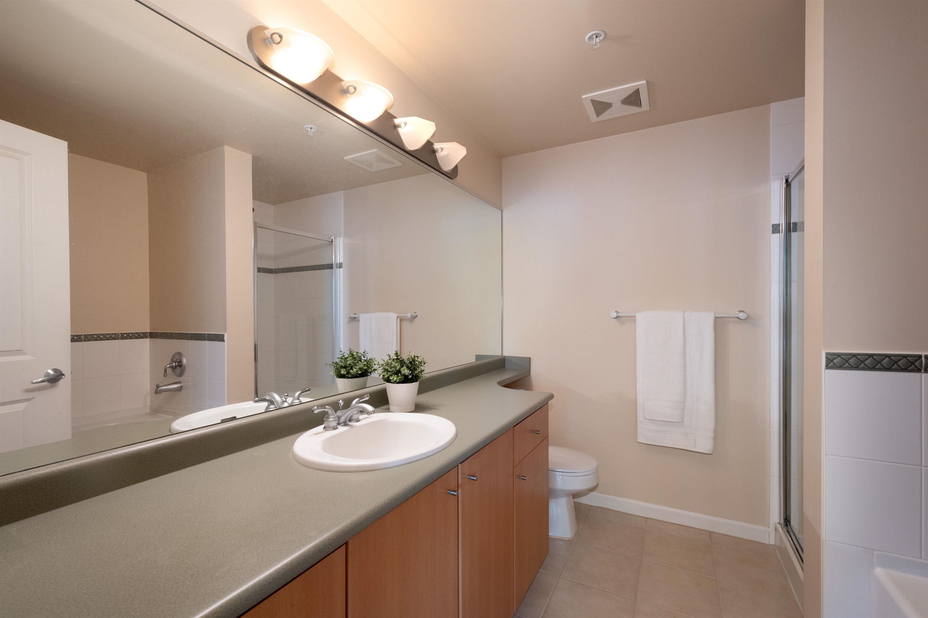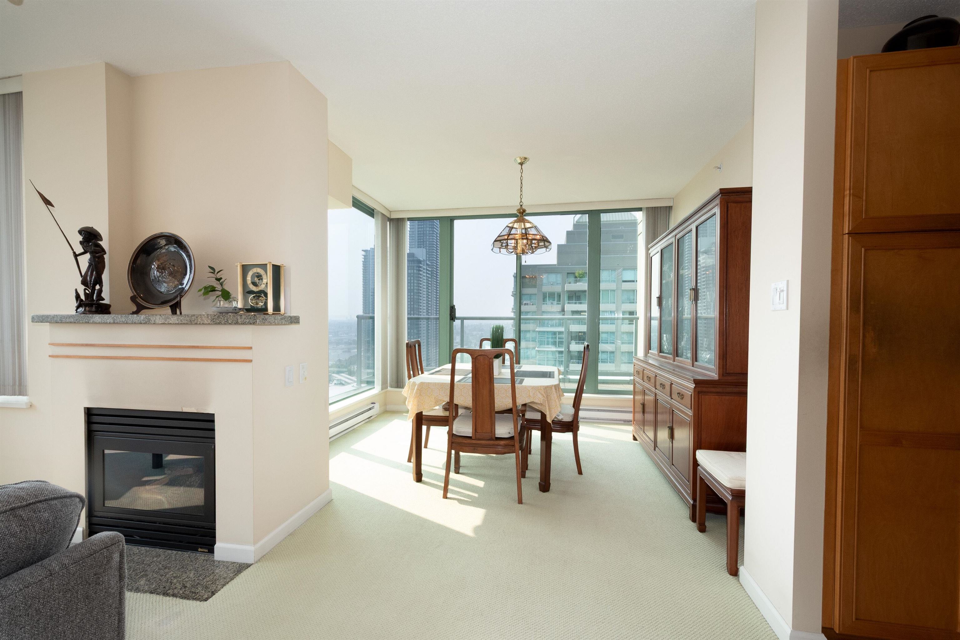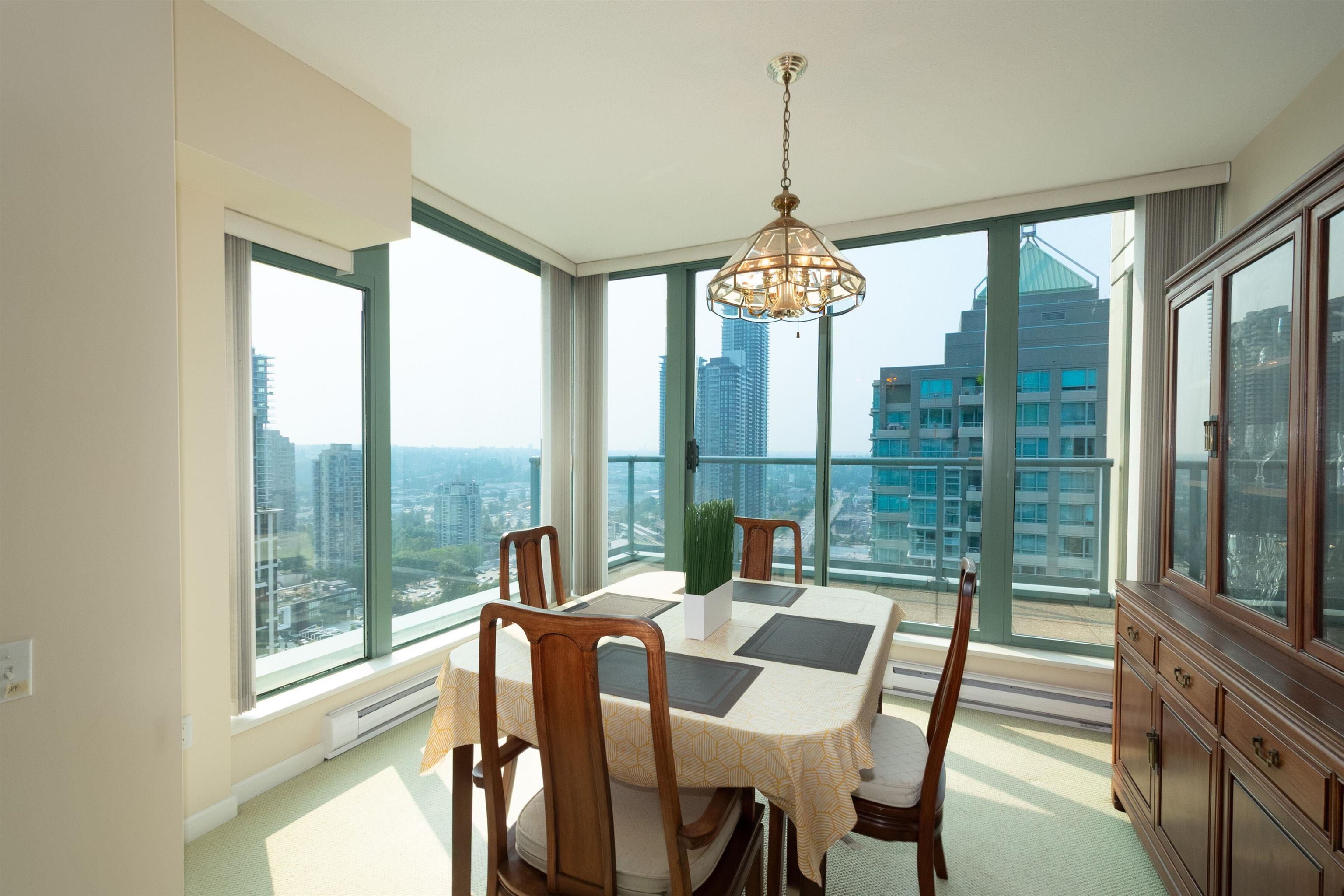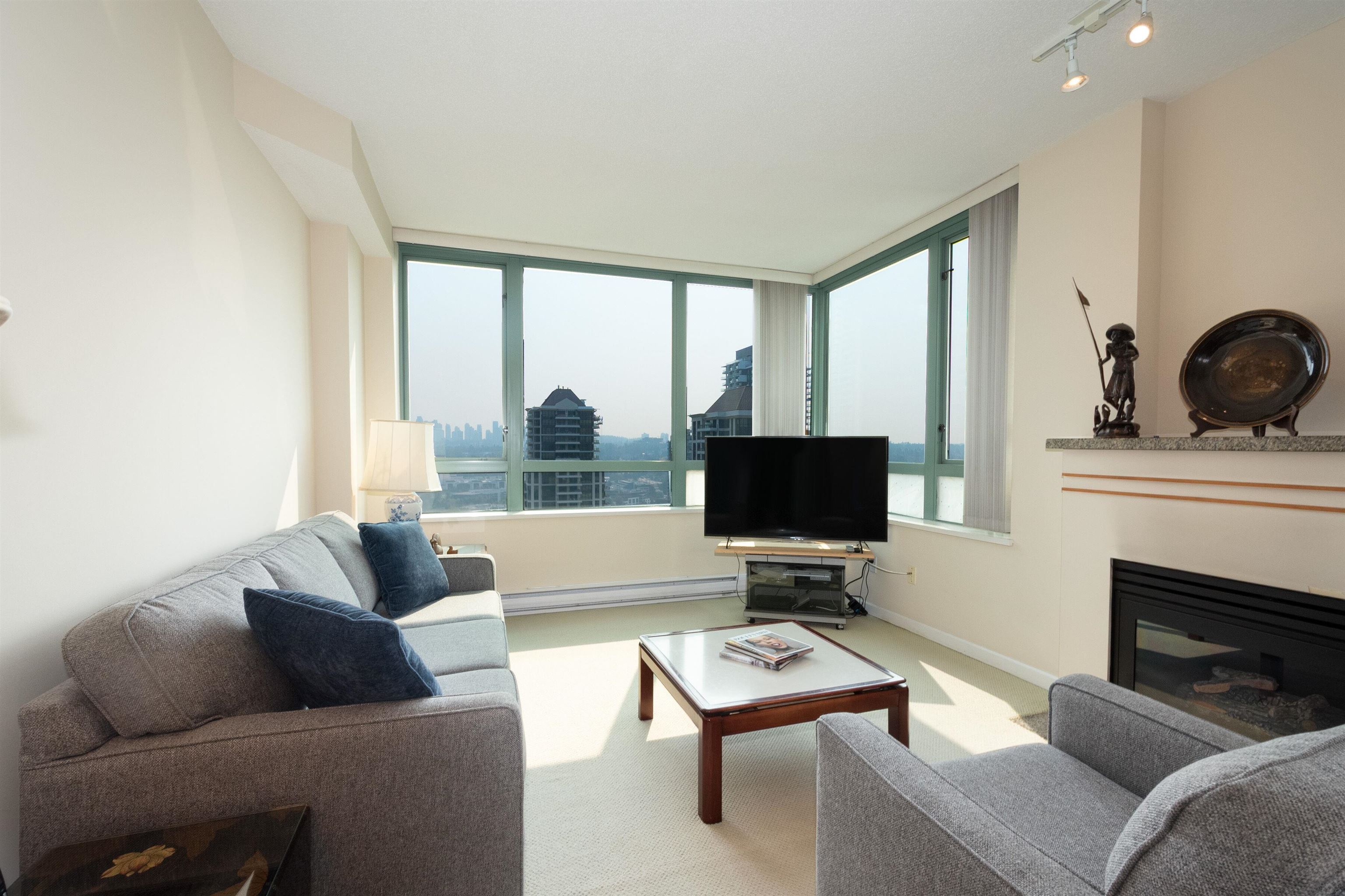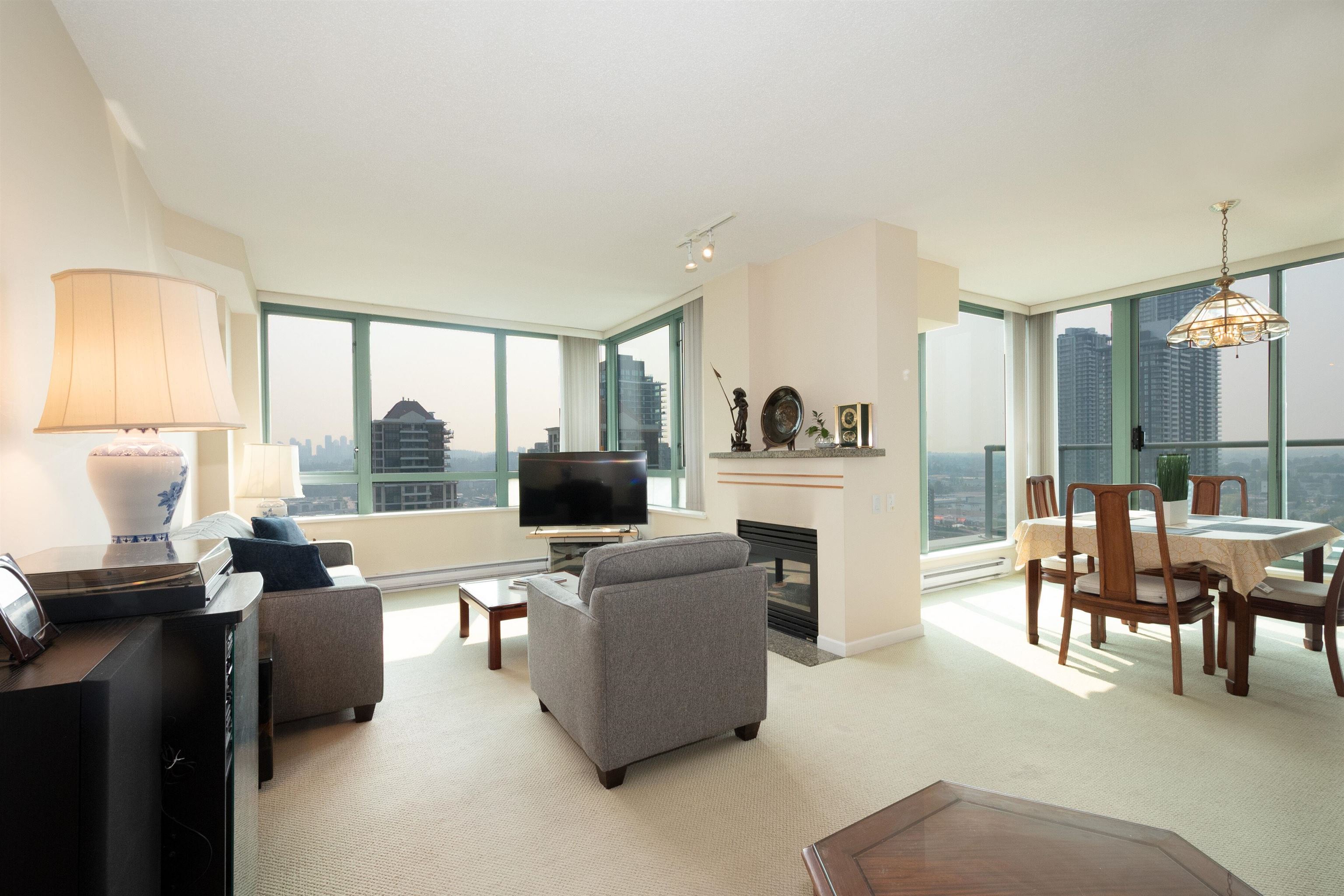 Rare find! Extra large 3br + 2.5bath, corner unit at Buchanan East. Conveniently located in the heart of Brentwood. Bright corner suite boasts 9ft high-ceiling throughout, large living room with gas fireplace, formal dining area and 2 spacious balconies with view of Northshore mountain. Kitchen comes with generous eating area, maple shaker cabinet, granite counter tops, S/S appliances. King-sized master bedroom can accommodate house-size furniture, and 2 good size bedrooms for family or guests. 2.5 bath + l...
