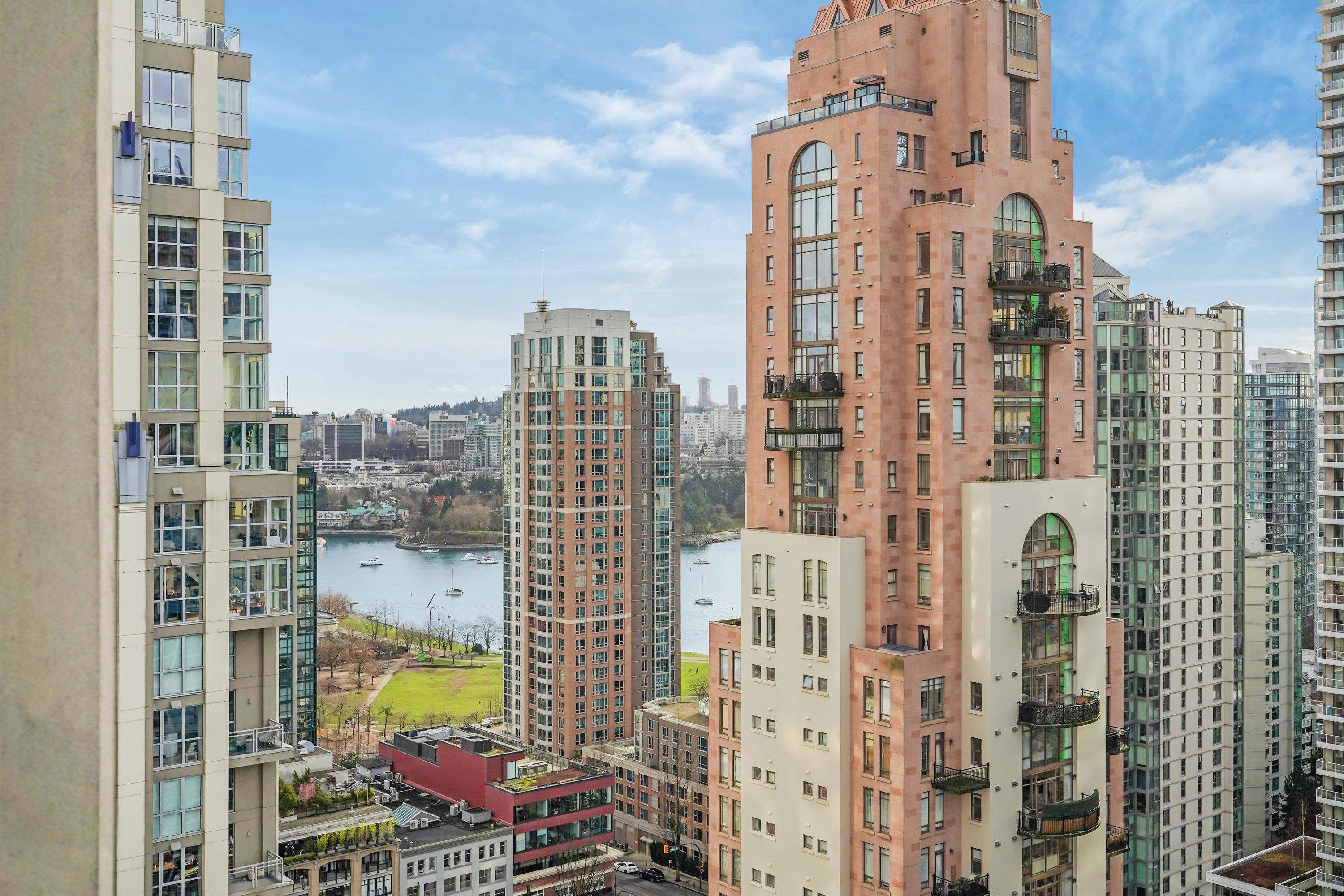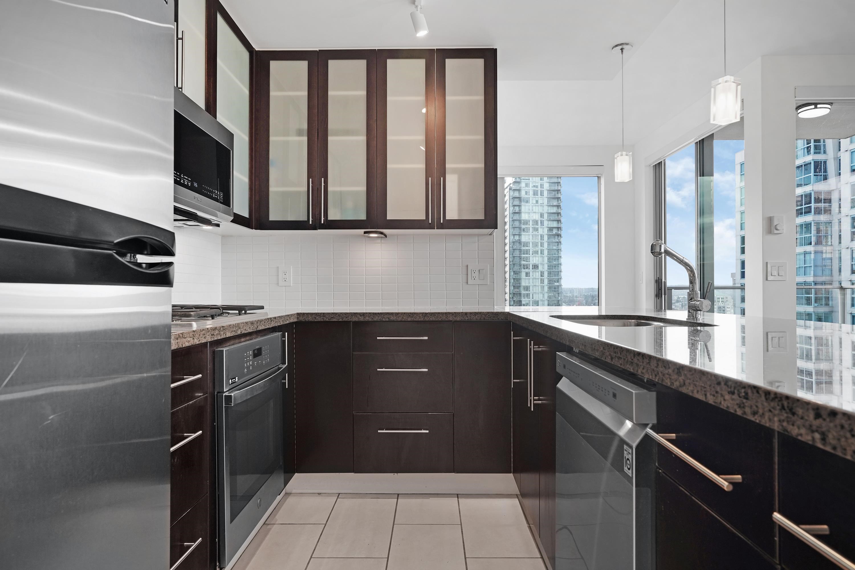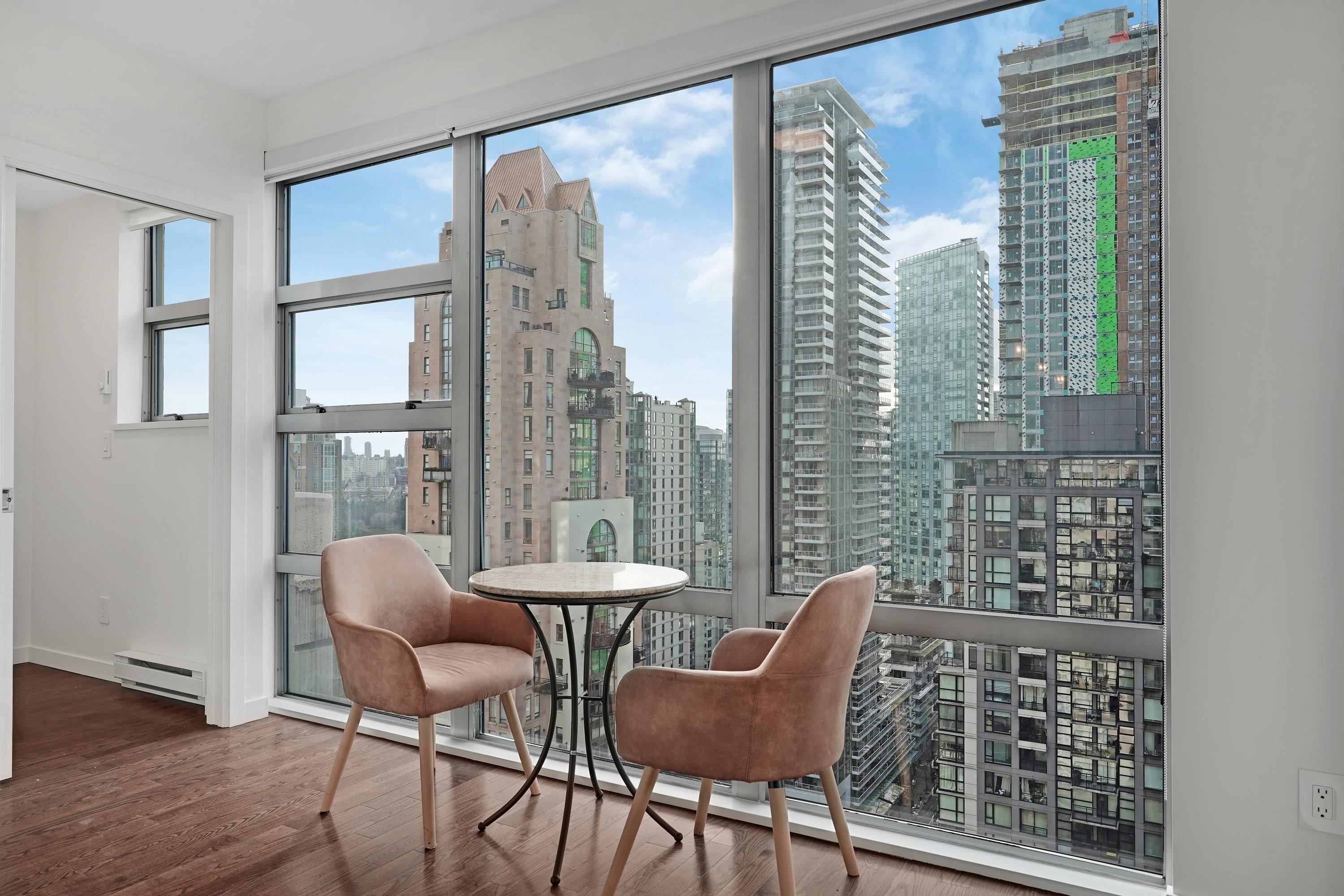 SUB PENTHOUSE. Bosa's elegant Eden on Yaletown's Emery Barnes Park. 1 of only 4 elite-level units with over height ceilings, 2 outdoor patios, glorious water & mountain views. Superb layout of this 1026 sqft perfect 2bd/2bth home features: king-size bedrooms + den, tons of extra storage, oversize open-concept kitchen w/ gas stove, granite countertops & 10ft eating counter, distinct living & dining spaces, real hardwood floors throughout & master 5-piece ensuite. Tons of natural light reflecting from floor ...