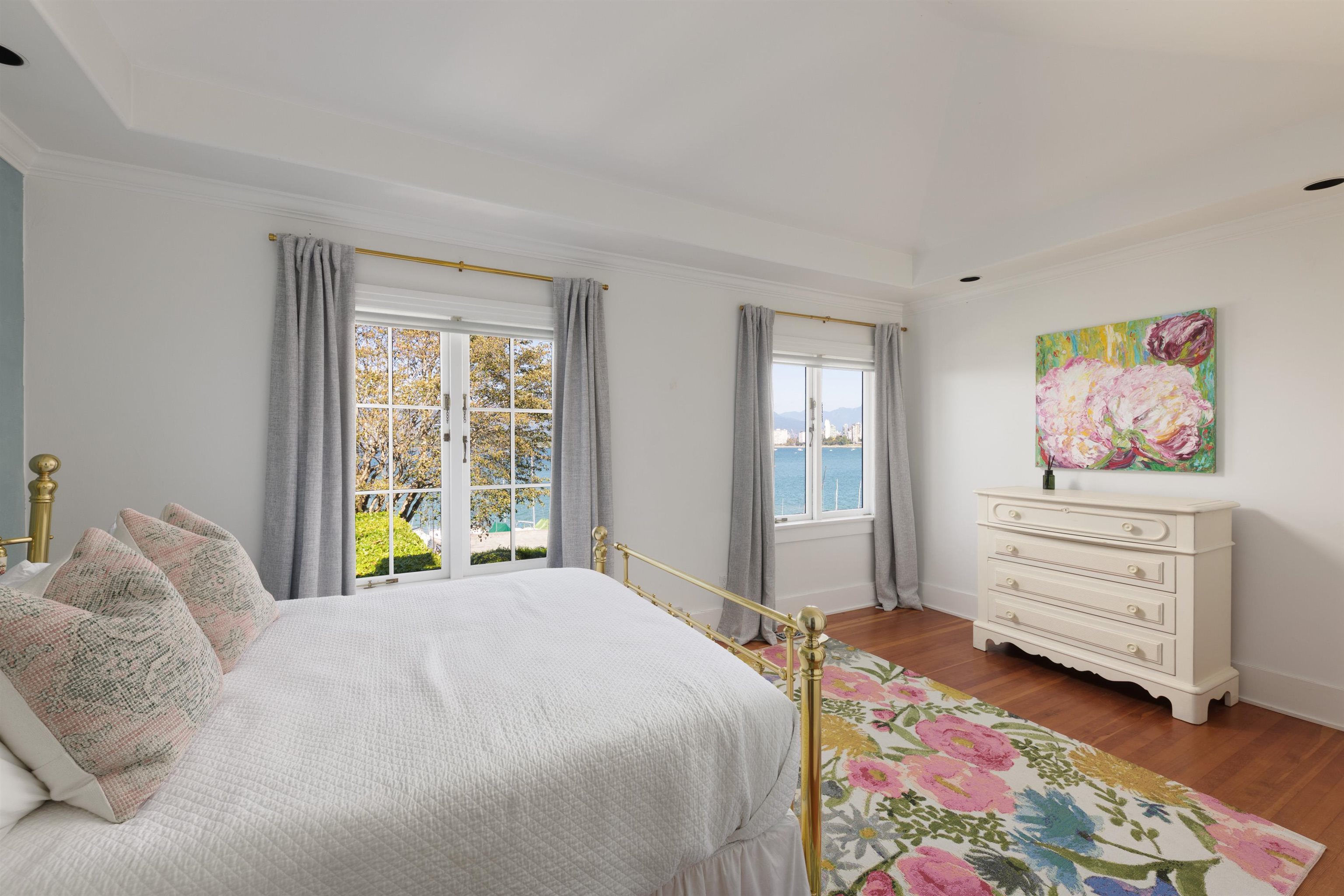 Iconic Waterfront Ivy Townhome on Lower Point Grey Road. One of only eight ivy-covered residences on this quiet, prestigious street, this rare corner home is surrounded by landscaped grounds with the beach and ocean just steps away. Extra windows frame expansive water views, the city skyline, the North Shore mountains, and sailboats drifting past. The kitchen, wrapped in windows and centered on a generous island, flows into bright living spaces with hardwood floors, a gas fireplace, and French doors opening...