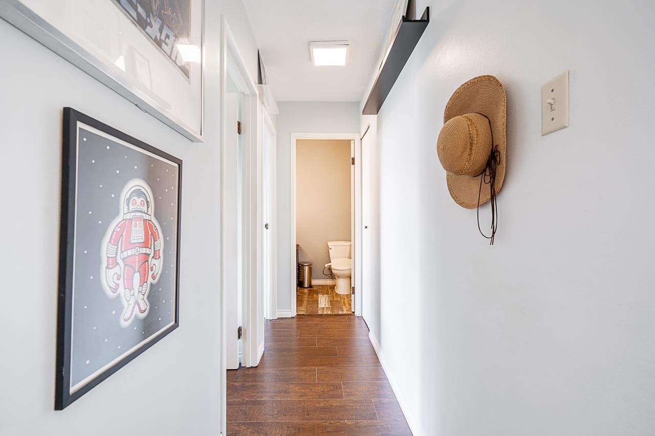 Renovated Top Floor 3-bed townhome in beloved Manoah Village—perfect for young families! Steps from Manoah Steves Elementary, this bright, south-facing home features a HUGE 200 sqft top-floor deck overlooking a quiet, green courtyard. Recent upgrades include all new windows and blinds (2 yrs), patio sliding door and deck (3 mos), kitchen (2 yrs), and updated floors, bathroom, and closets (4 yrs). $10K in completed building upgrades already paid. Well-managed complex with pool, playground & rec centre plus s...