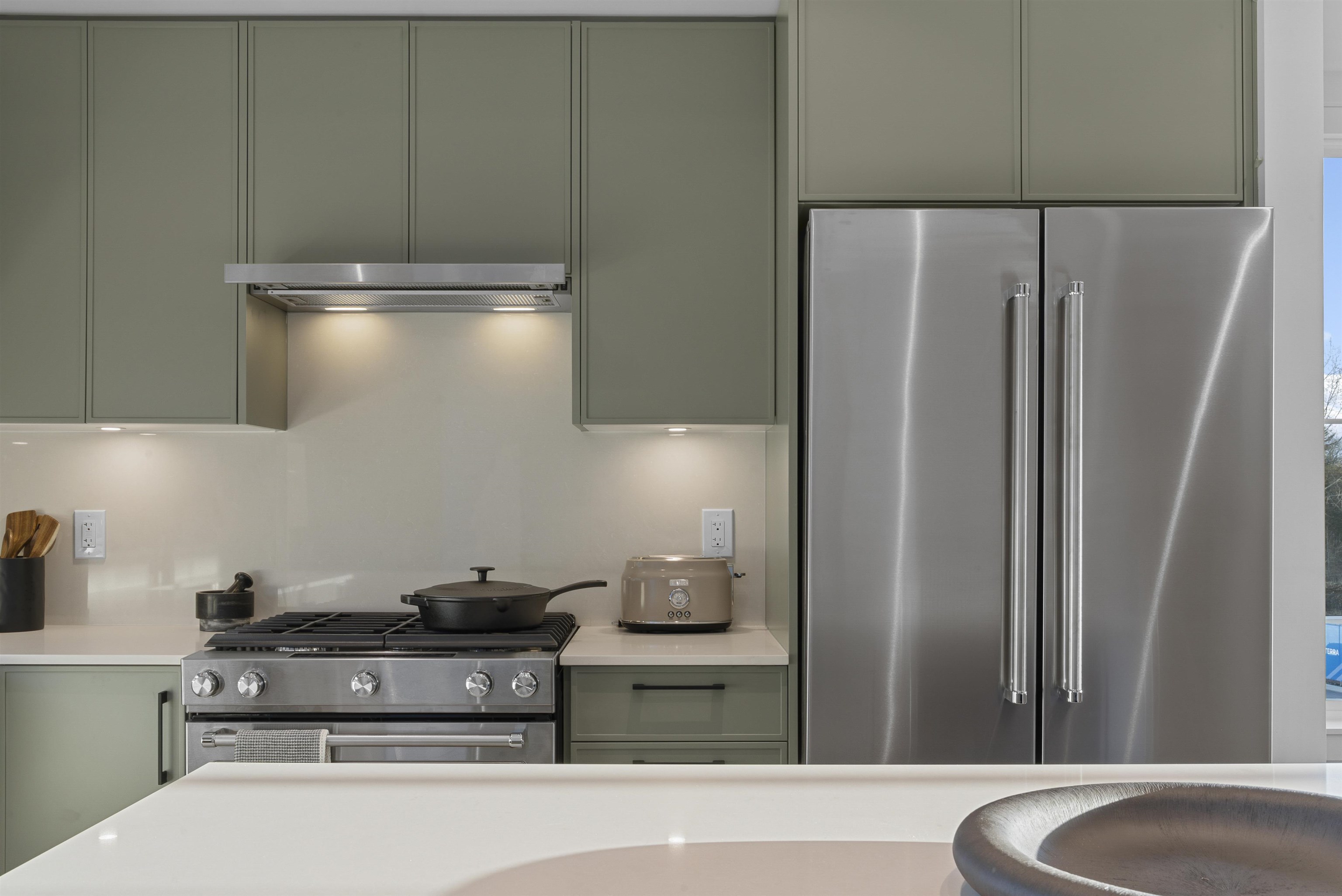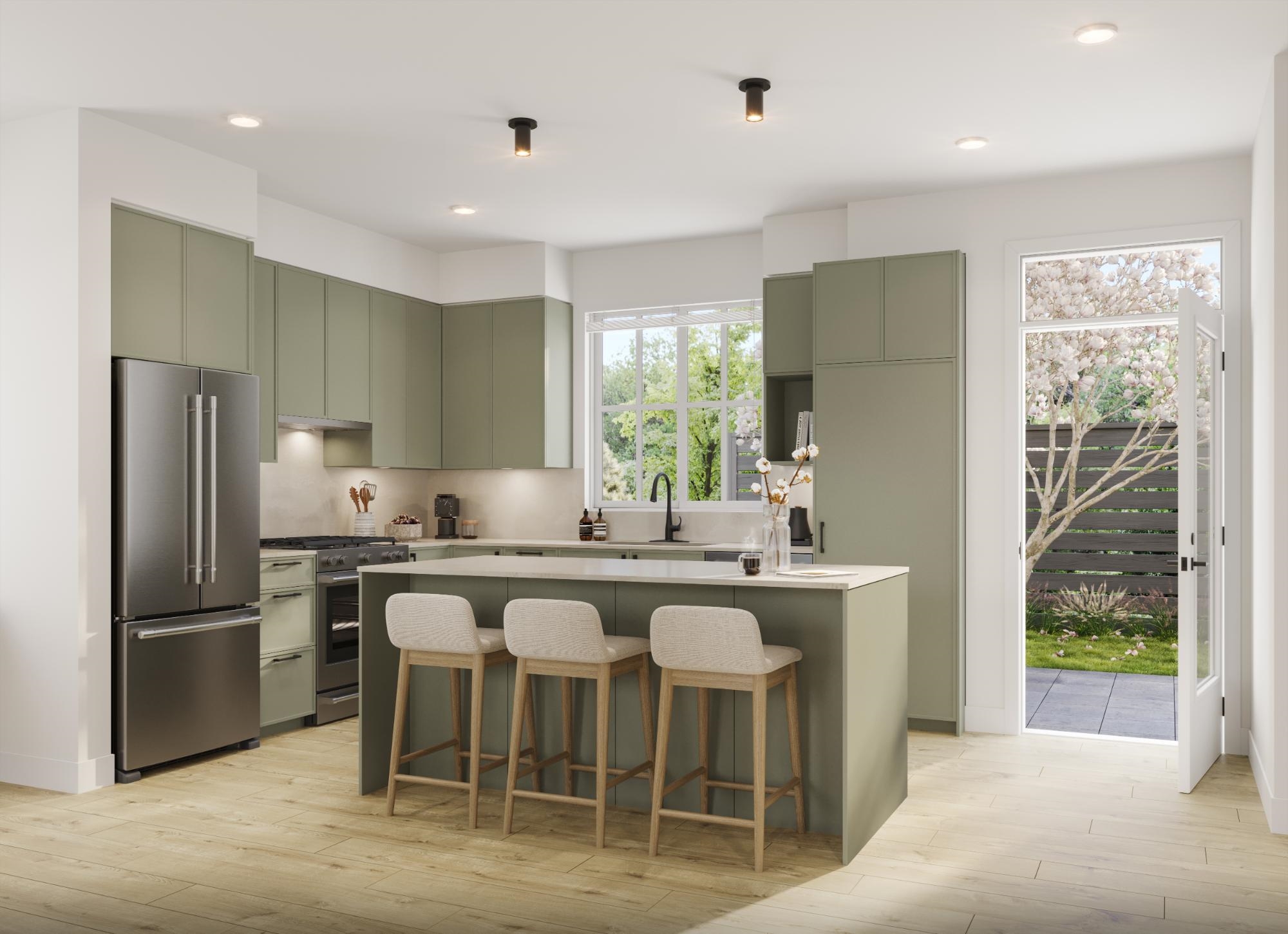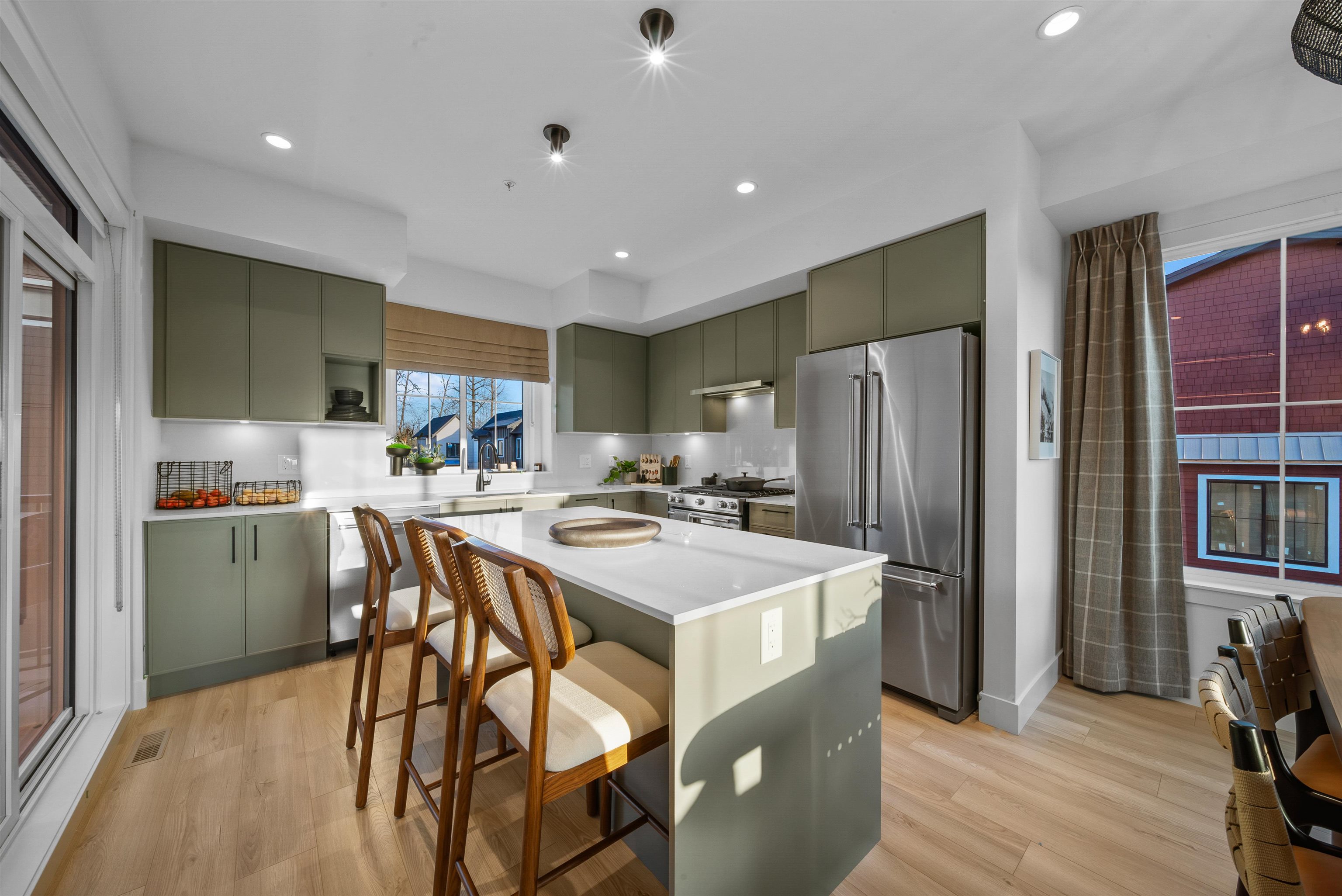 MOVE-IN READY at LATIMER WALK by award-winning Zenterra Developments. This bright, modern 3-bedroom home features a stylish kitchen with a full KitchenAid appliance package, ideal for everyday living and entertaining. Enjoy laminate flooring throughout, air conditioning, forced-air gas heating, and hot water on demand for year-round comfort. This south/east/north-facing corner home backs onto a 5m greenbelt and includes a spacious fenced backyard. Additional features include a BBQ gas hookup, garburator, an...