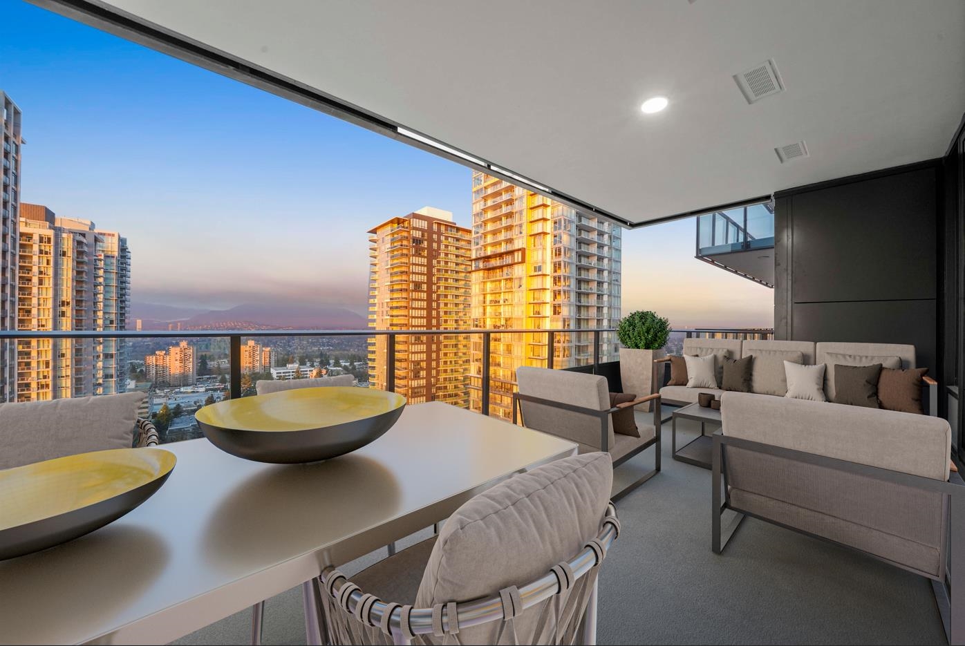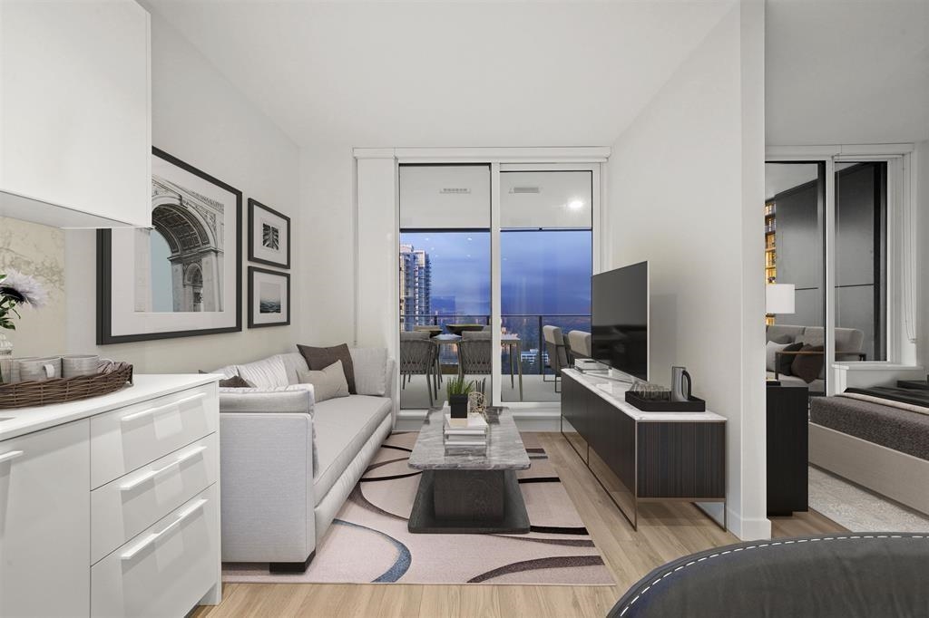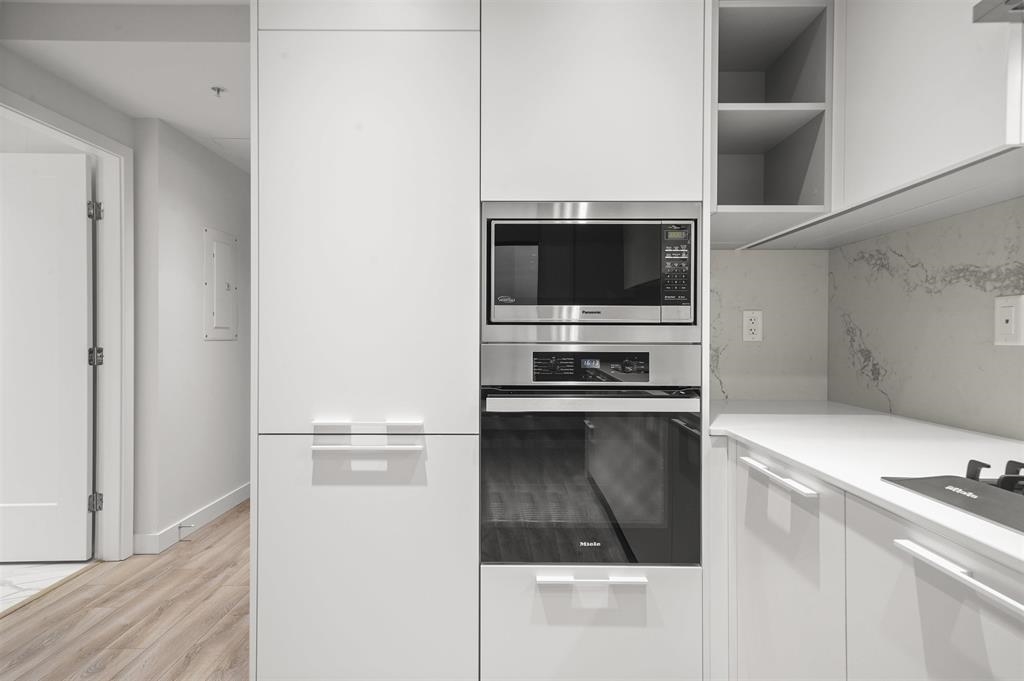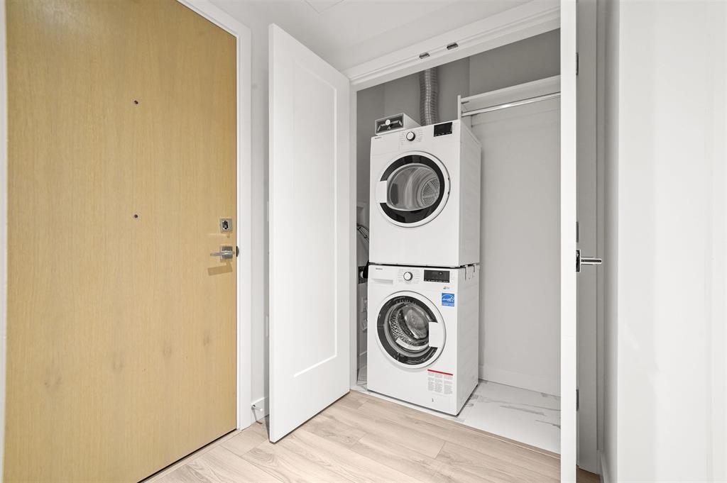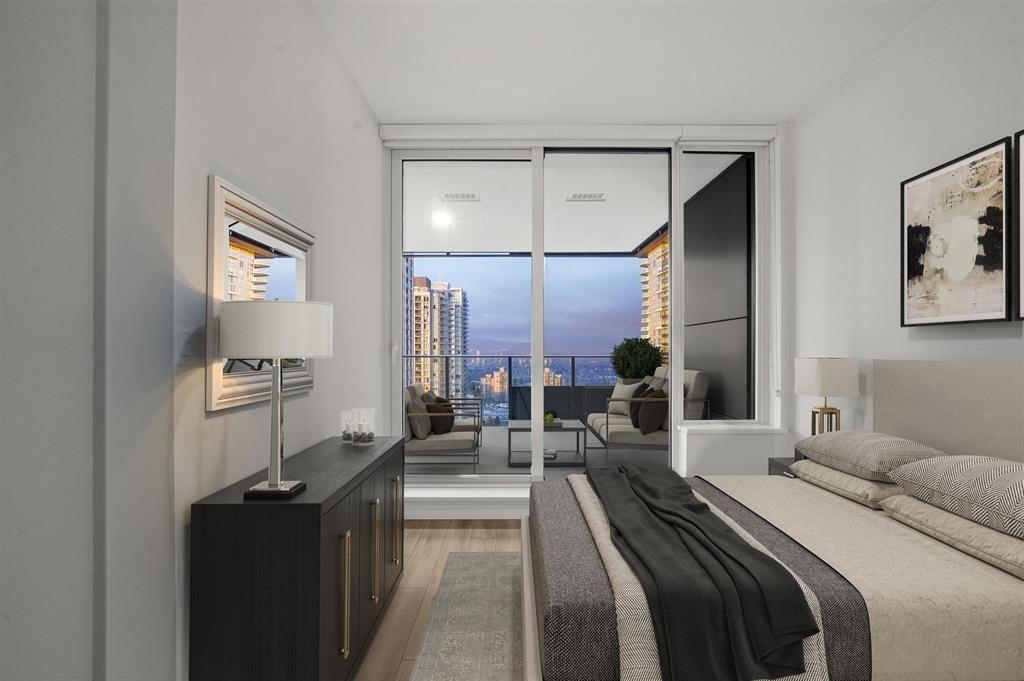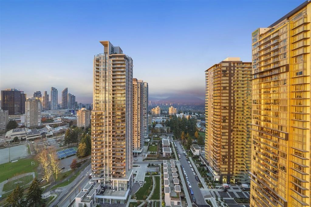 Welcome to your new home. This beautiful unit features concierge service, high-end Miele appliances, A/C, premium windows, and stunning city and mountain views. Includes 1 parking stall and 1 storage locker. The parking, locker, and car wash area are side-by-side for maximum convenience. Enjoy extensive amenities including a gym, lounge, golf simulator, table tennis, outdoor patio with BBQ, guest suite, and garden. Prime location—just steps from Metrotown shopping, restaurants, and the SkyTrain station.