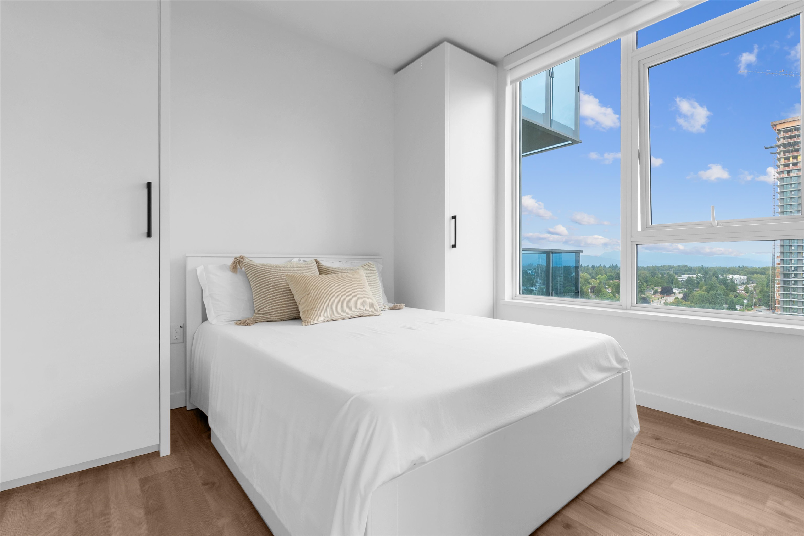Perched on the 25th floor, this southeast-facing corner unit showcases breathtaking mountain views and floods of natural light through floor-to-ceiling windows. Offering 2 bed, 2 bath, A/C, and a spacious balcony, it blends comfort with style. The Italian-designed kitchen feat wood-grain cabinetry, premium appliances & versatile ExtenTABLE™ island that expands to seat six. The spa-inspired ensuite is complete w/freestanding shower, stone countertops & Grohe™ matte black fixtures. Includes RARE 2 PARKING STA...