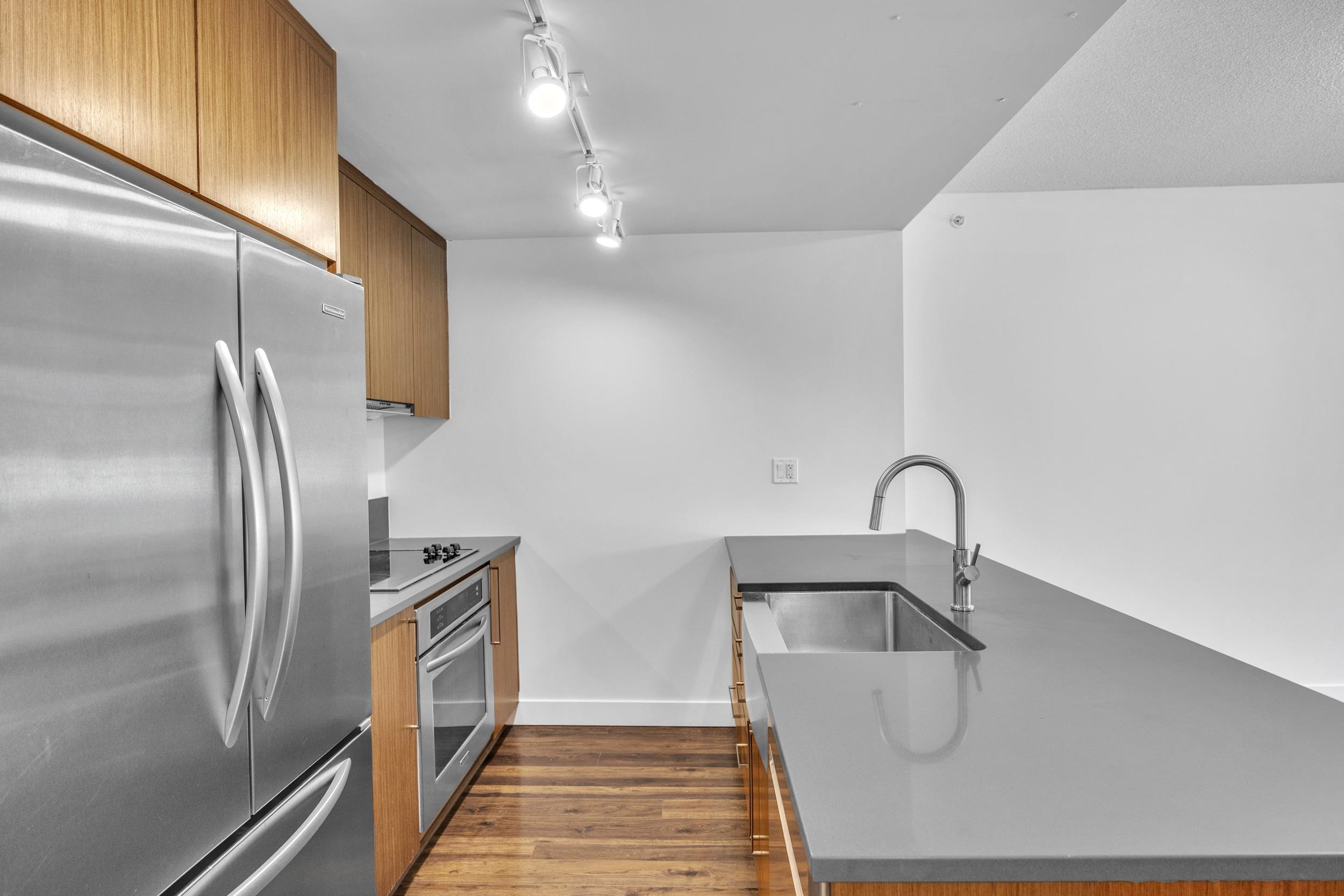 One bed + generous den in District, tucked into the community of Mt Pleasant, this concrete building and neighbourhood have much to offer! Over height ceilings, st/st appliances and quartz countertops in the kitchen. Bedroom w/ large walk in closet can accommodate clothing for 2. Lg den/flex space, perfect for home office or secondary seating area. Home has been freshly painted and is turn key ready. Large outdoor patio space for entertaining. Building amenities include two rooftop decks with BBQs, firepla...