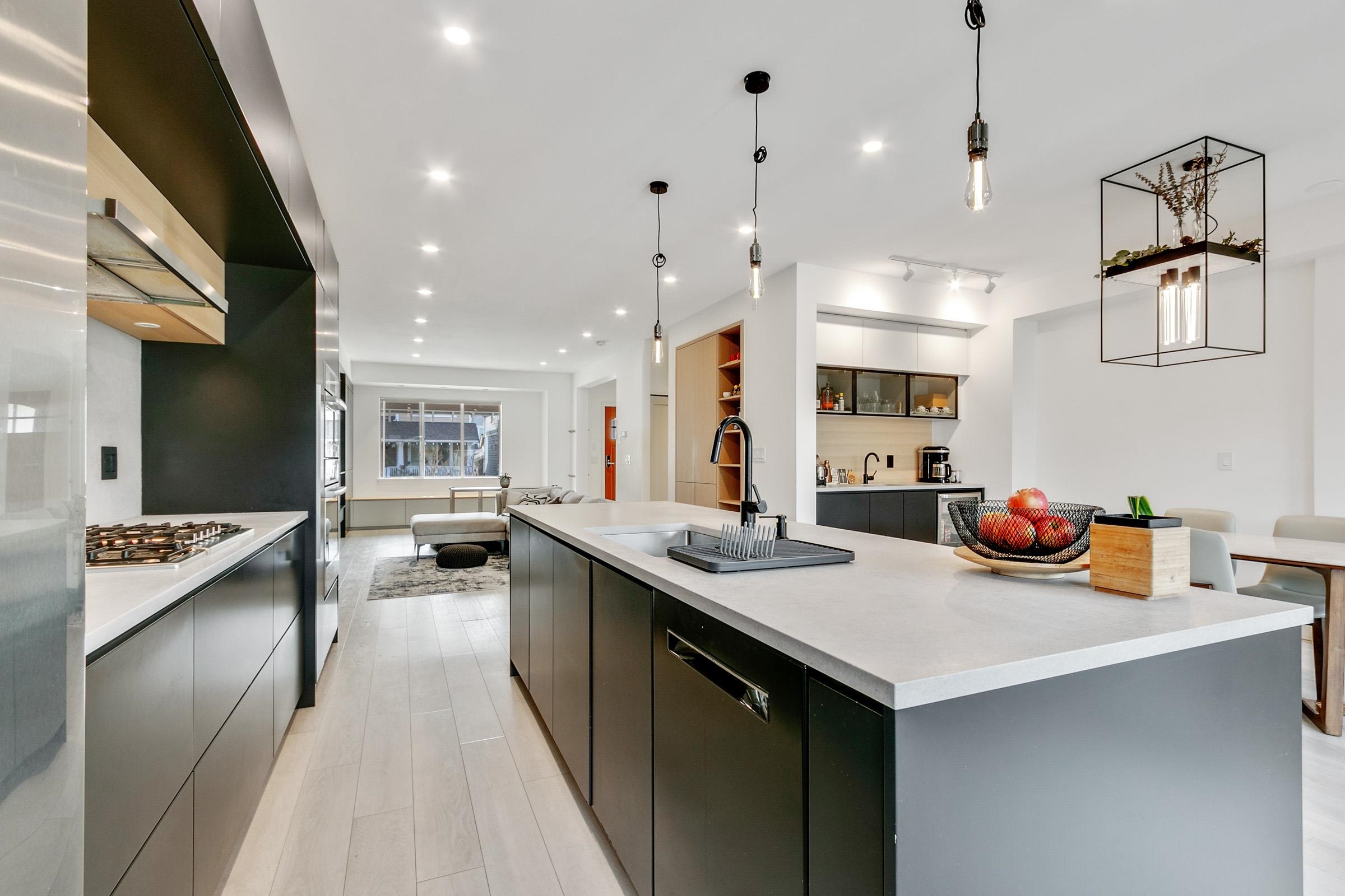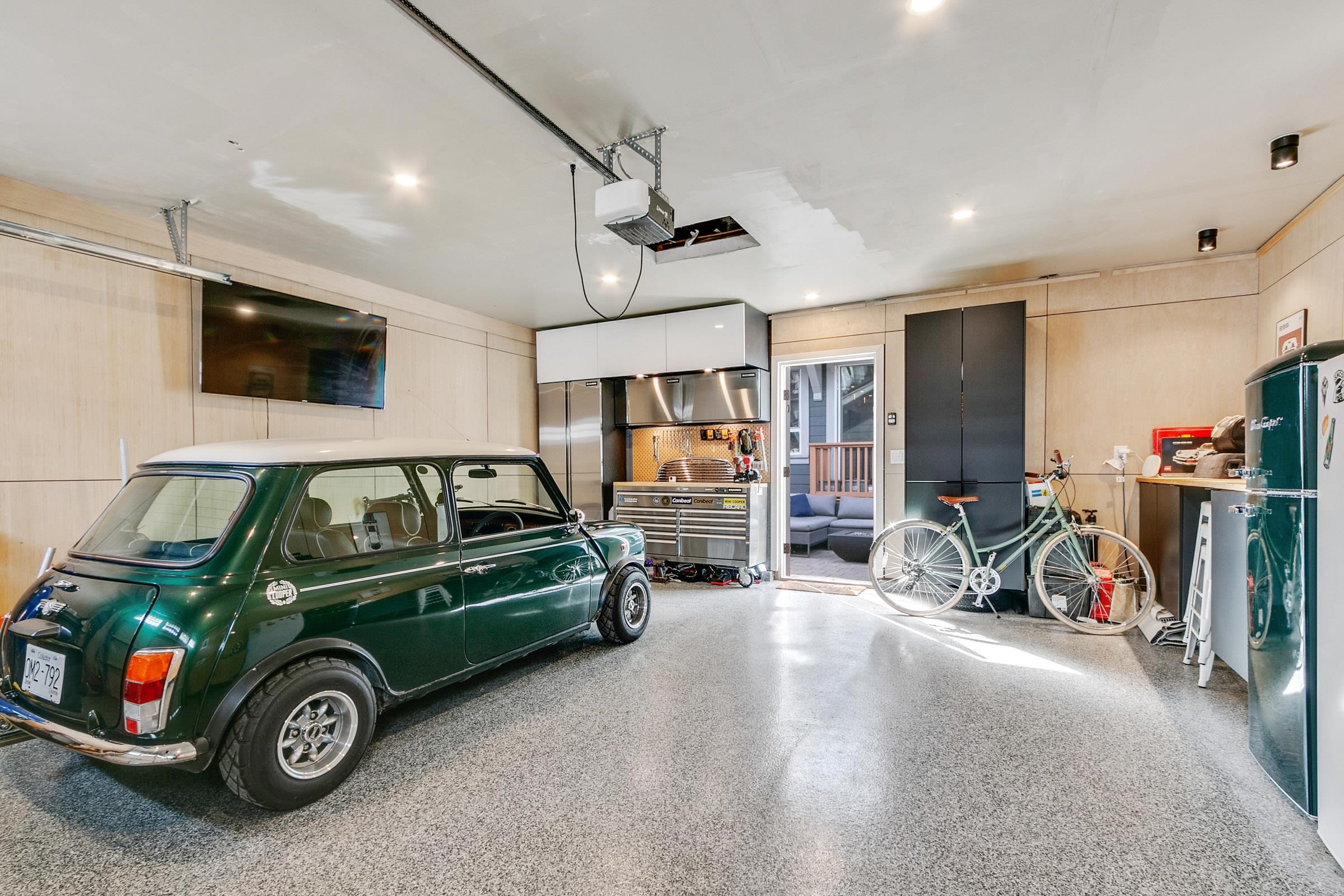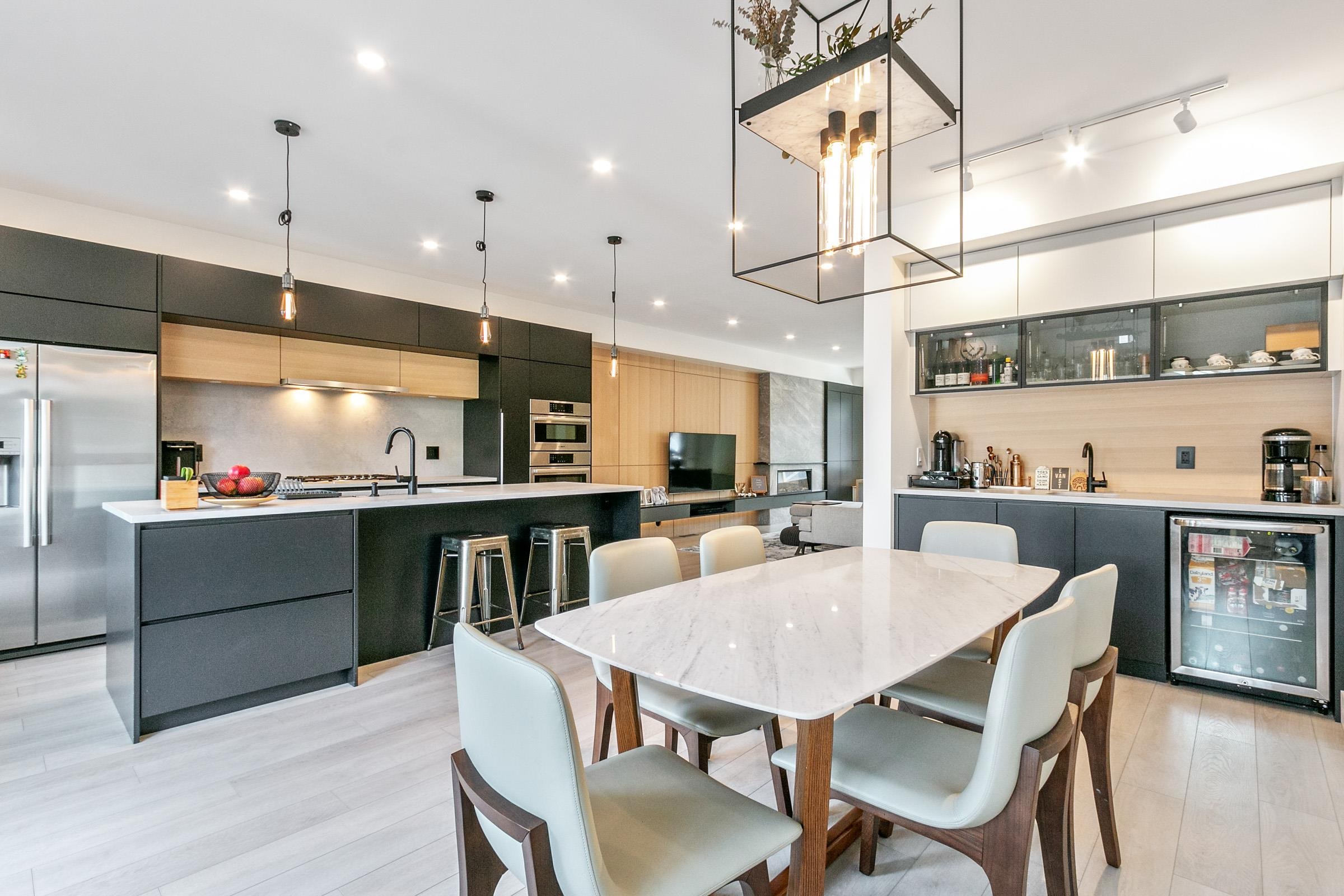 Stop into a stunning kitchen blonding modern design with high-end function. Dosigner fixtures from Buster + Punch, clogant island pendants, Cacsarstone countertops, and custom millwork croate a refinod space, complete with top-tier Bosch appliances. The Open-concept living area offors built-in storago for a clean, stylish look. Upstairs bathrooms foature in-floor hoated tiles for yoar-round comfort. Car lovers will appreciate the polyaspartic-coated garage floor, custom cabinets, attic storage, workspace, a...
