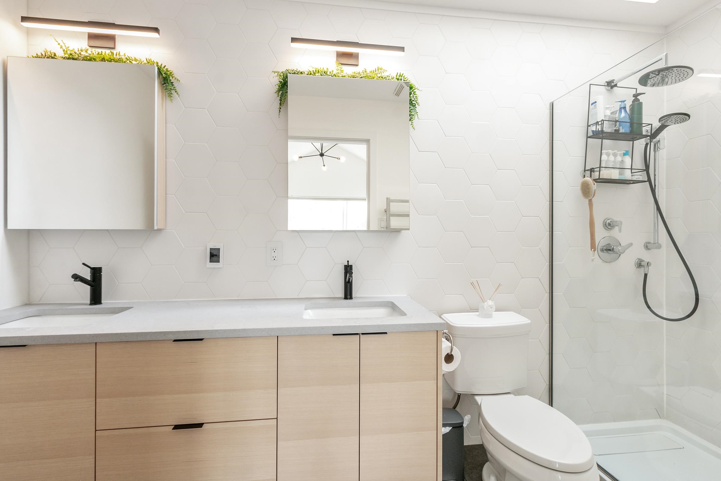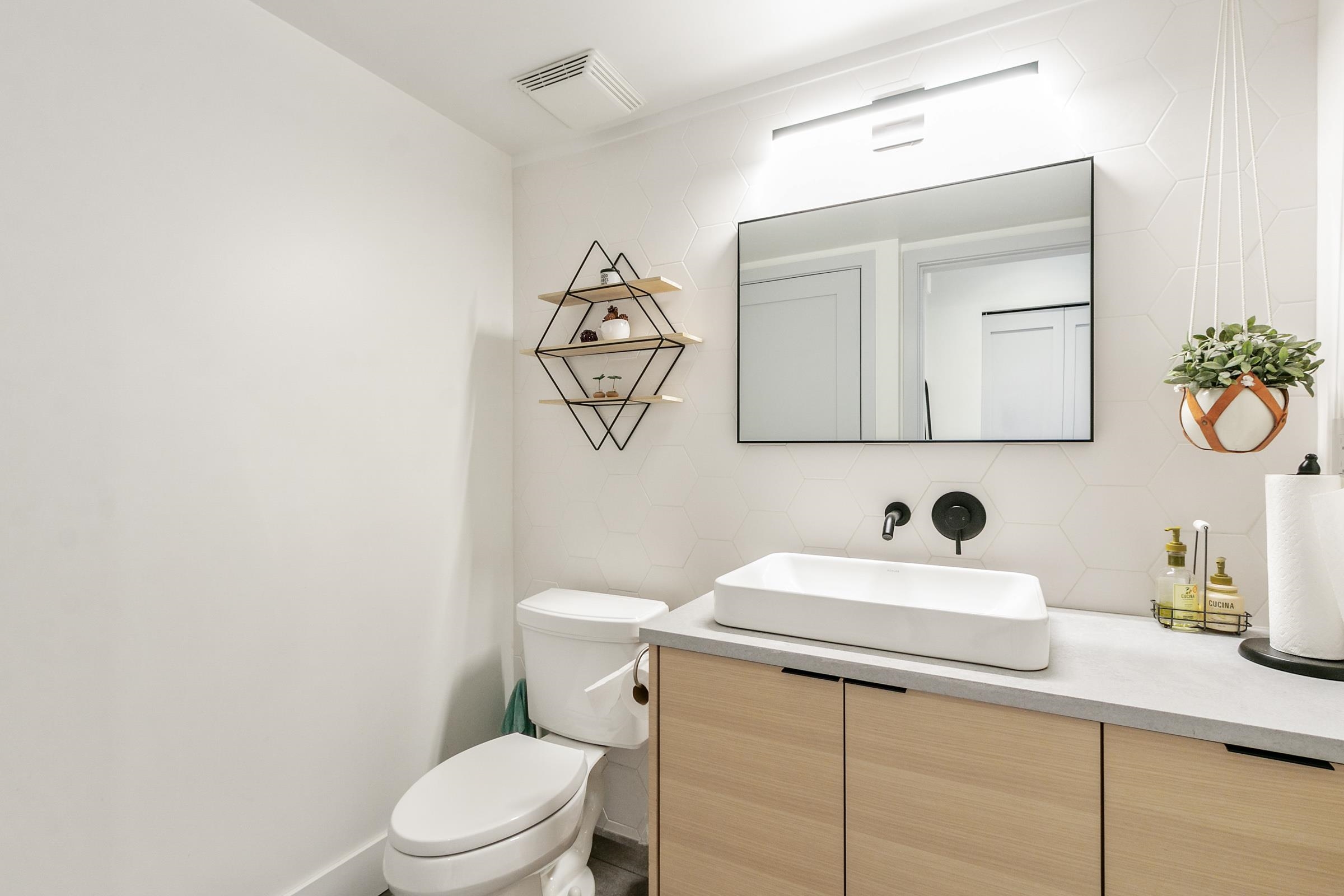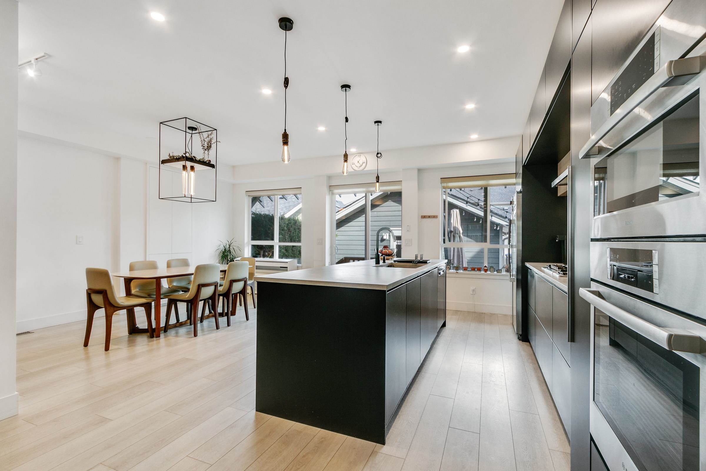 Stop into a stunning kitchen blonding modern design with high-end function. Dosigner fixtures from Buster + Punch, clogant island pendants, Cacsarstone countertops, and custom millwork croate a refinod space, complete with top-tier Bosch appliances. The Open-concept living area offors built-in storago for a clean, stylish look. Upstairs bathrooms foature in-floor hoated tiles for yoar-round comfort. Car lovers will appreciate the polyaspartic-coated garage floor, custom cabinets, attic storage, workspace, a...