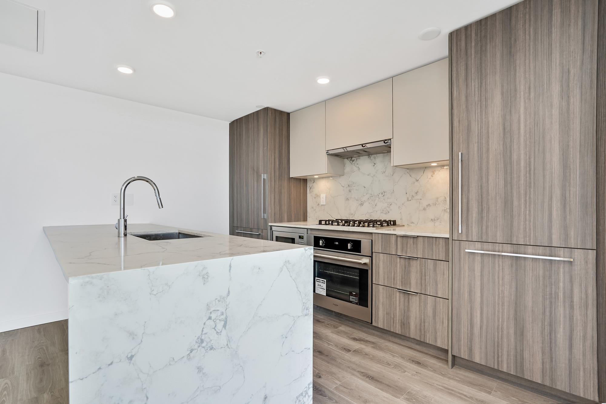 Penthouse perfection at MELROSE—luxury living in the heart of Surrey City Centre. This stunning 26-storey concrete tower offers 221 luxury residences with modern design and high-quality construction. This 2-bed, 2-bath home spans approx. 823 sqft, featuring floor-to-ceiling windows, 9-foot ceilings, and centralized A/C. The open kitchen boasts sleek two-tone cabinetry, quartz counters, and premium Italian Fulgor-Milano appliances with a gas cooktop. Residents enjoy 13,000+ sqft of amenities: rooftop lounge,...