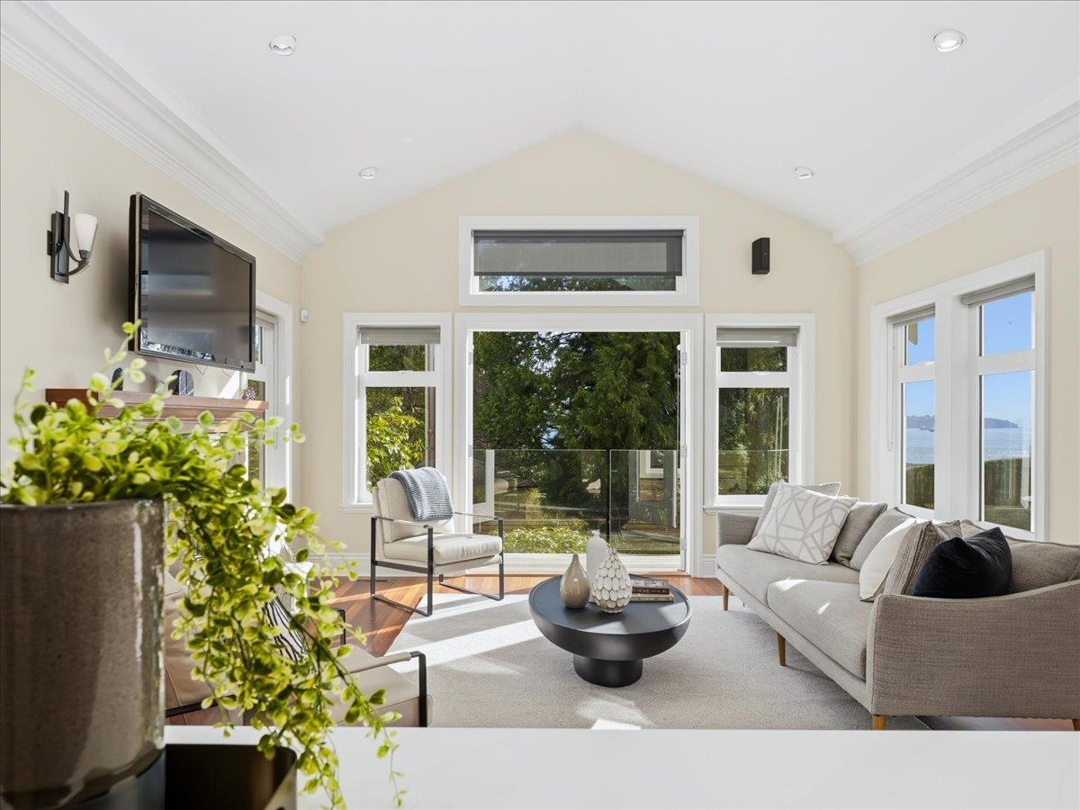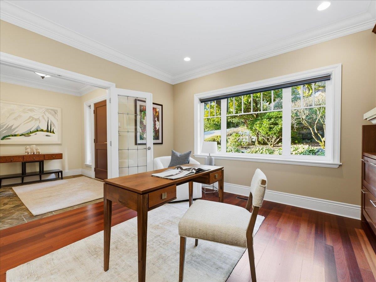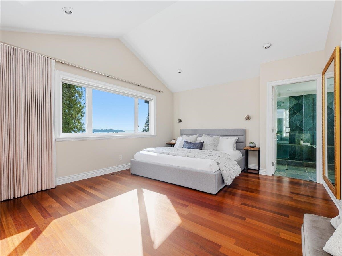 Impressive ocean views from two levels highlight this impeccably maintained home, perched high on a quiet street with sunrises over Mt. Baker and sunsets toward Vancouver Island. Inside, hardwood floors, crown molding, vaulted ceilings, and custom millwork create timeless appeal. The main level offers an elegant home office, and bright open-concept living and dining area with a chef’s kitchen featuring a Viking gas Range, Electric Oven and large island. Multiple French doors open to a spacious deck ideal fo...