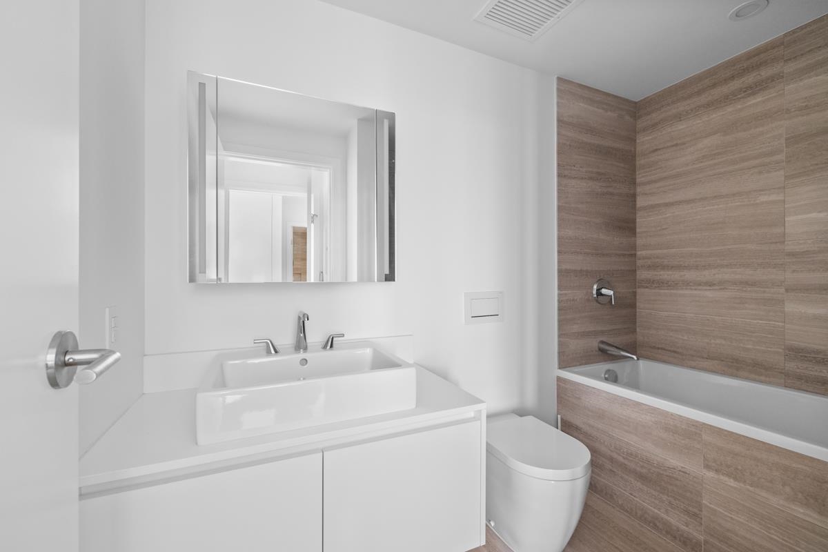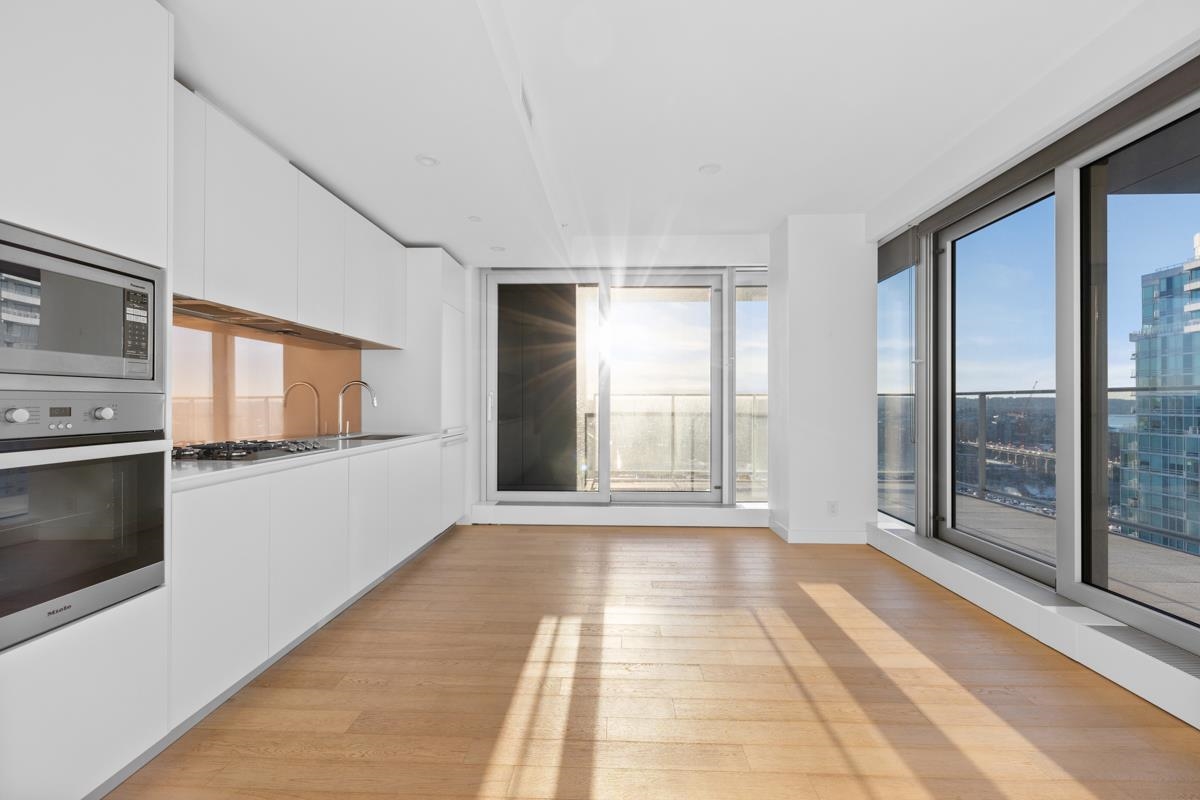 Two bedroom and two bathroom layout finished with light oak flooring throughout, contemporary roller blinds and triple glazed windows that would bring you a quieter environment. Unobstructed City, water and mountain view! Custom kitchen and bathroom cabinetry and closet organizers, full kitchen appliances and insuite laundry. Building amenities include fitness room, 25 metre outdoor pool, 24/7 concierge, visitor parking. 1 parking stall is included. The rent price includes gas and hot water. Tenant to p...