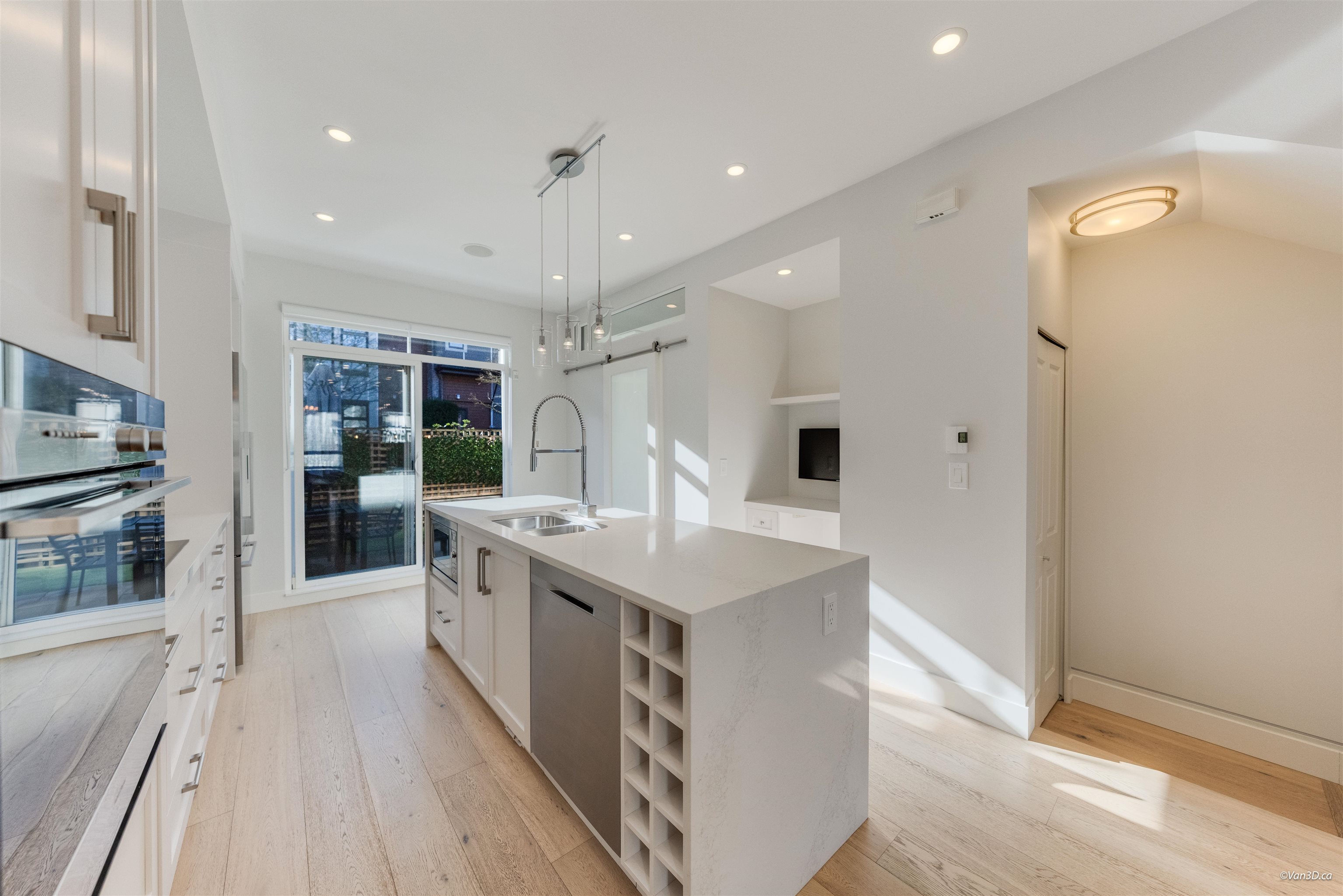 Fully renovated (with permits) end-unit townhome in Kaleden! Bright, open-concept layout with high ceilings, added main floor powder room & built-in desk. Engineered hardwood, fresh paint, zebra blinds, wall-mounted oven & new hot water tank. Living area features electric fireplace with custom built-ins & fully installed in-ceiling speakers, pre-wired for surround sound. Extra corner windows bring in abundant light. Private south-facing backyard off the kitchen. Garage with custom workshop & shelving. Acces...