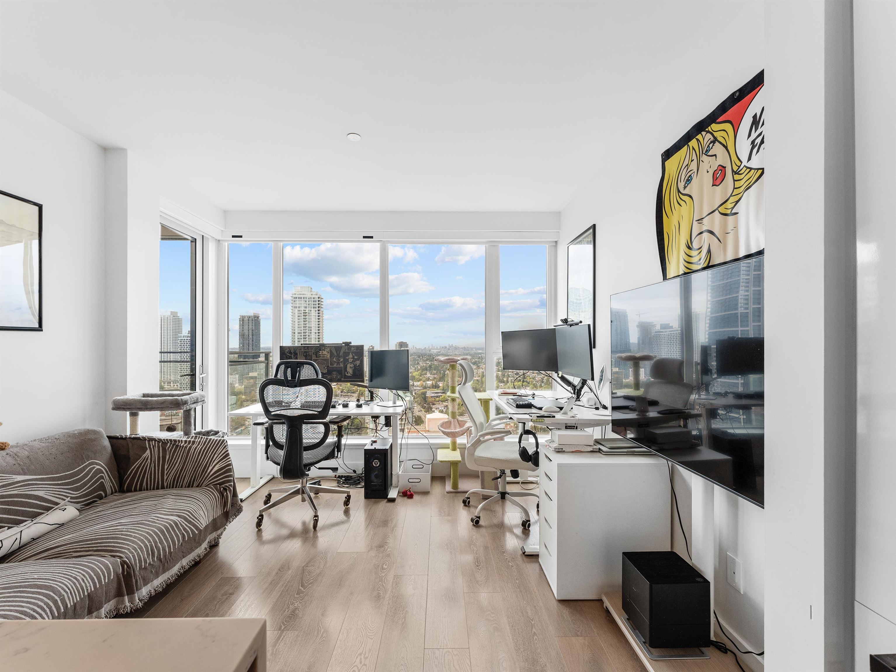 Welcome to the "Sussex by Townline at Metrotown" This well kept, spacious, beautiful, west facing unit on higher floor has a lot of brightness with big double glazed windows. A/C, with a very nice open kitchen, Bosch appliances and a good spacious balcony too. Central location and just steps to Metrotown, T & T supermarket, Crystal Mall, and Skytrain. School catchment: Marlborough Elementary & Moscrop Secondary. Amenities including concierge, bowling alley, and a Dex Terrace- heated outdoor area with harves...