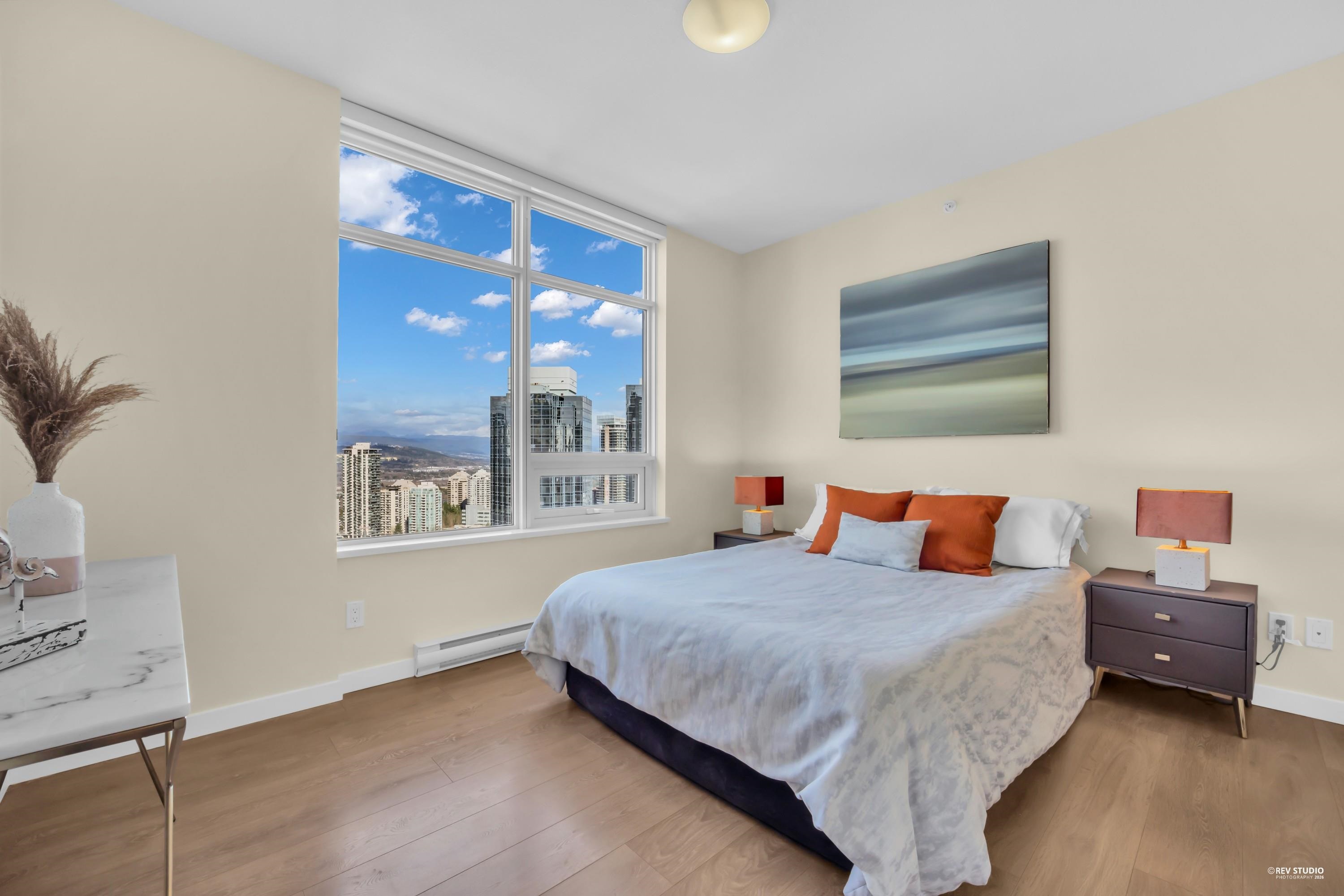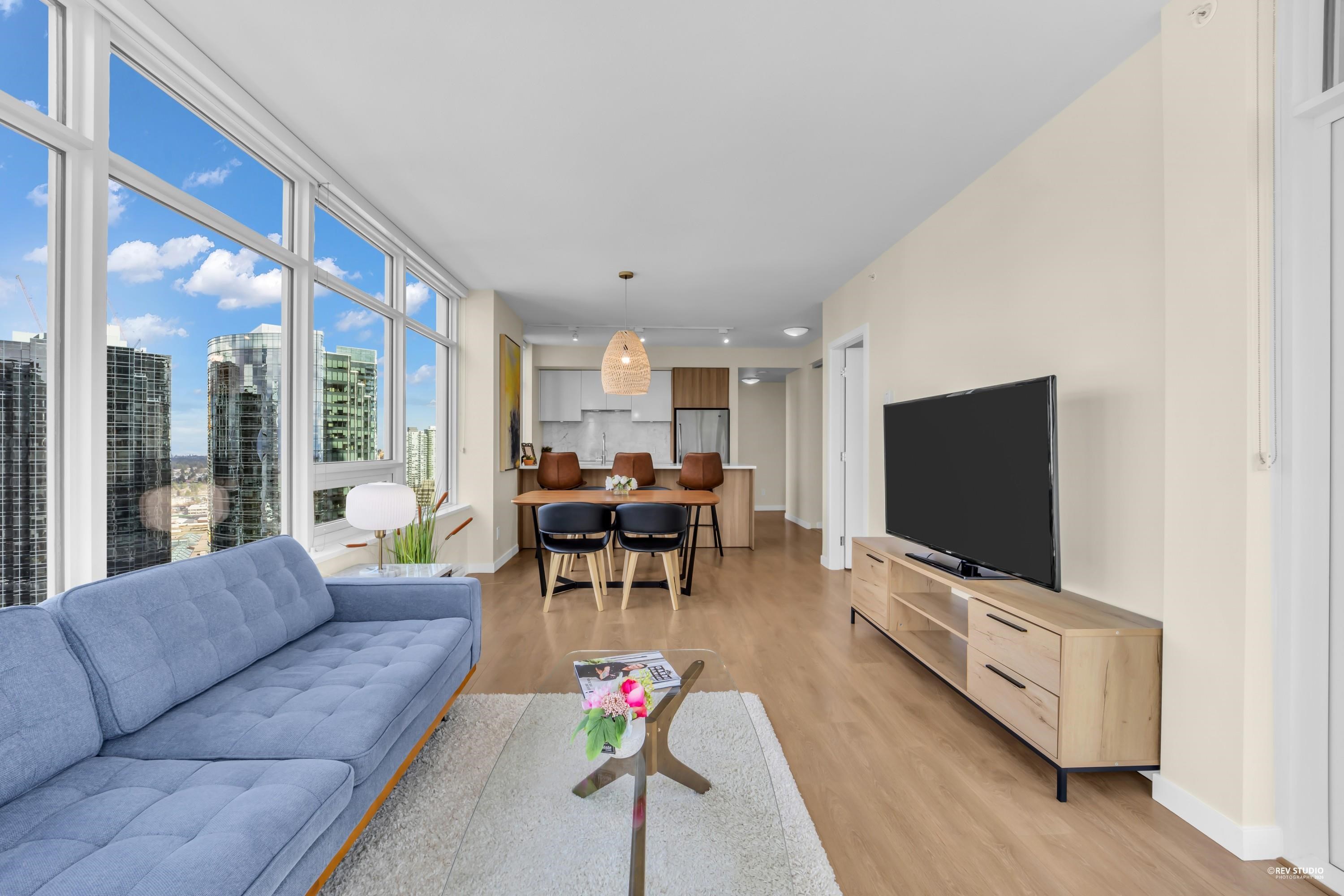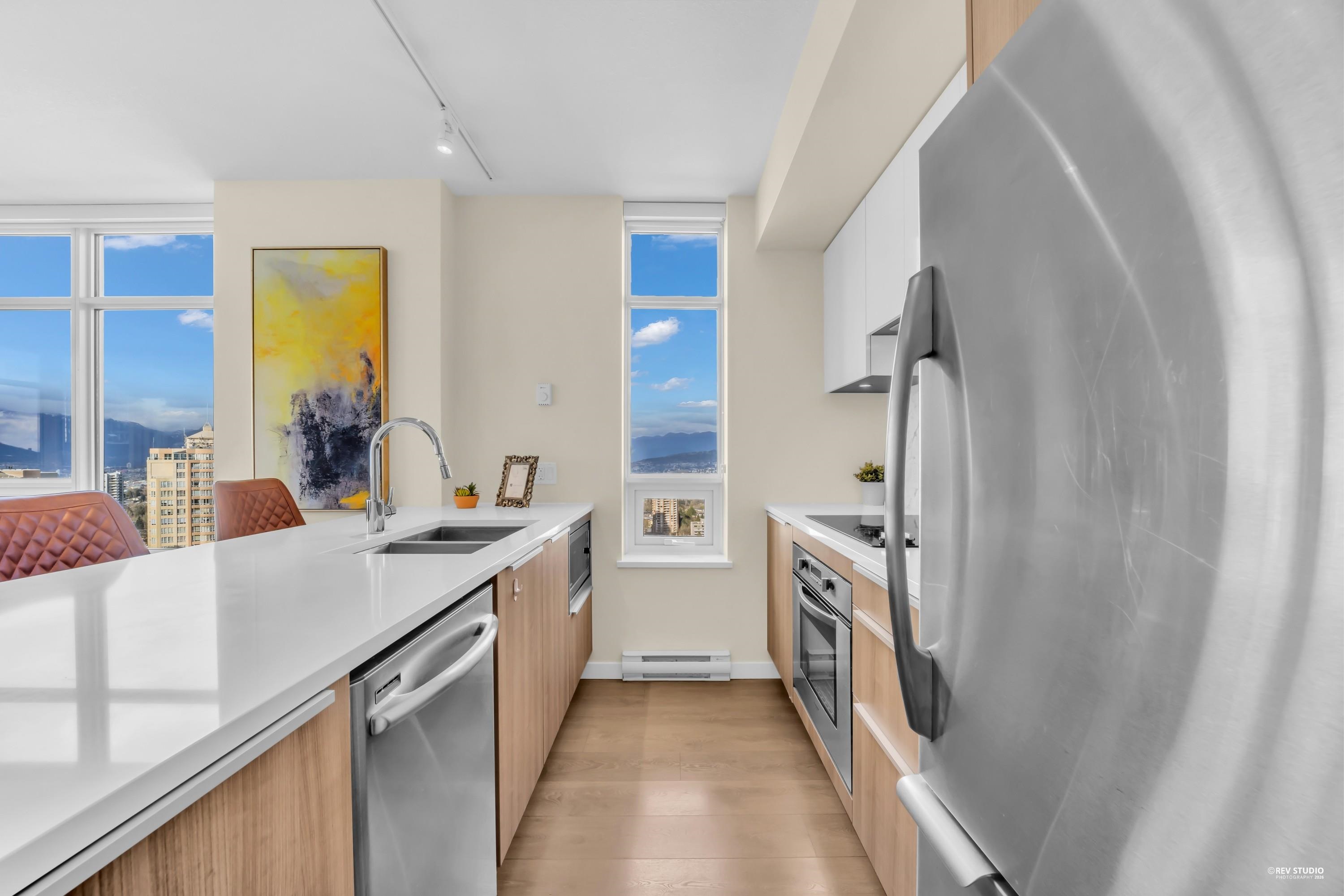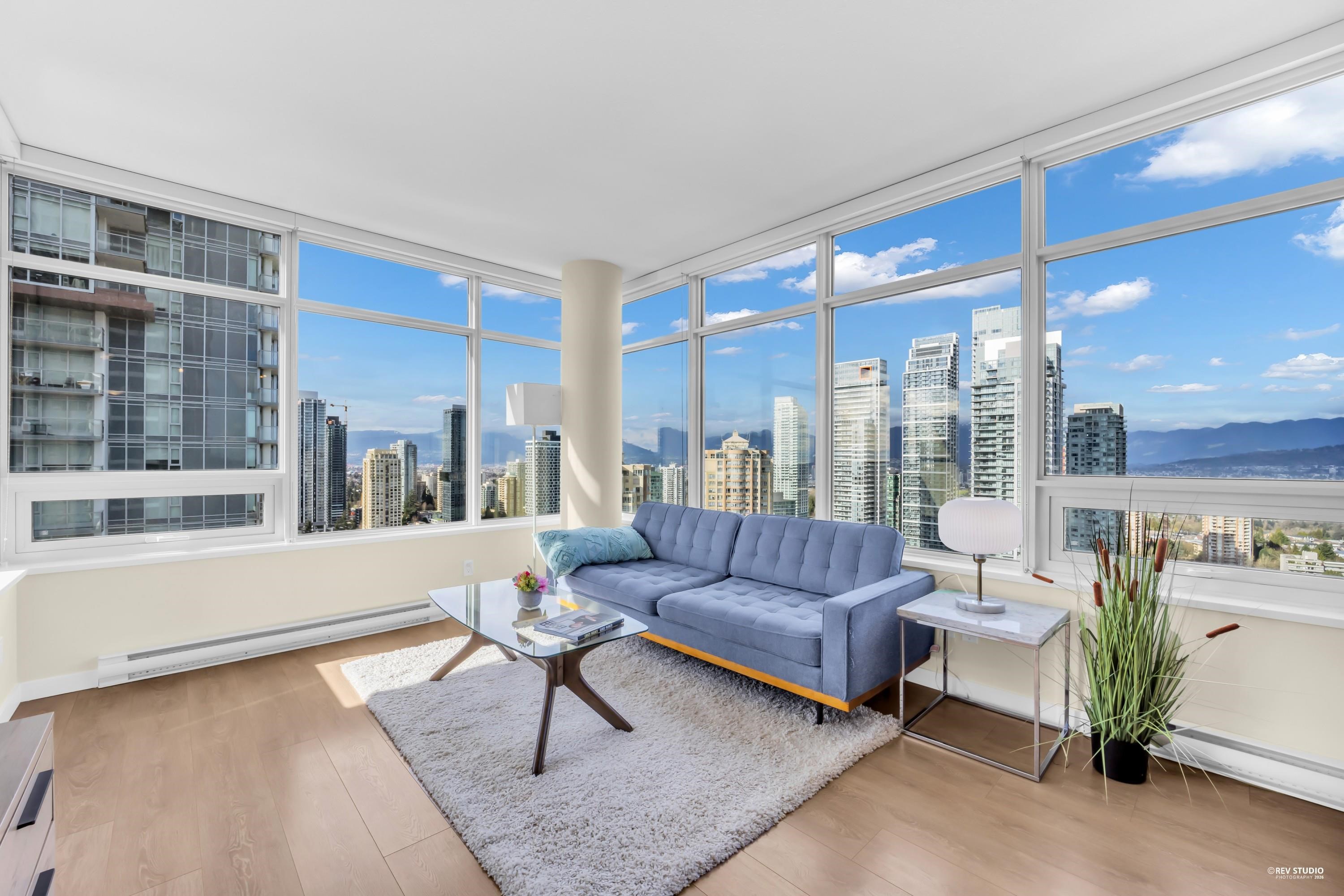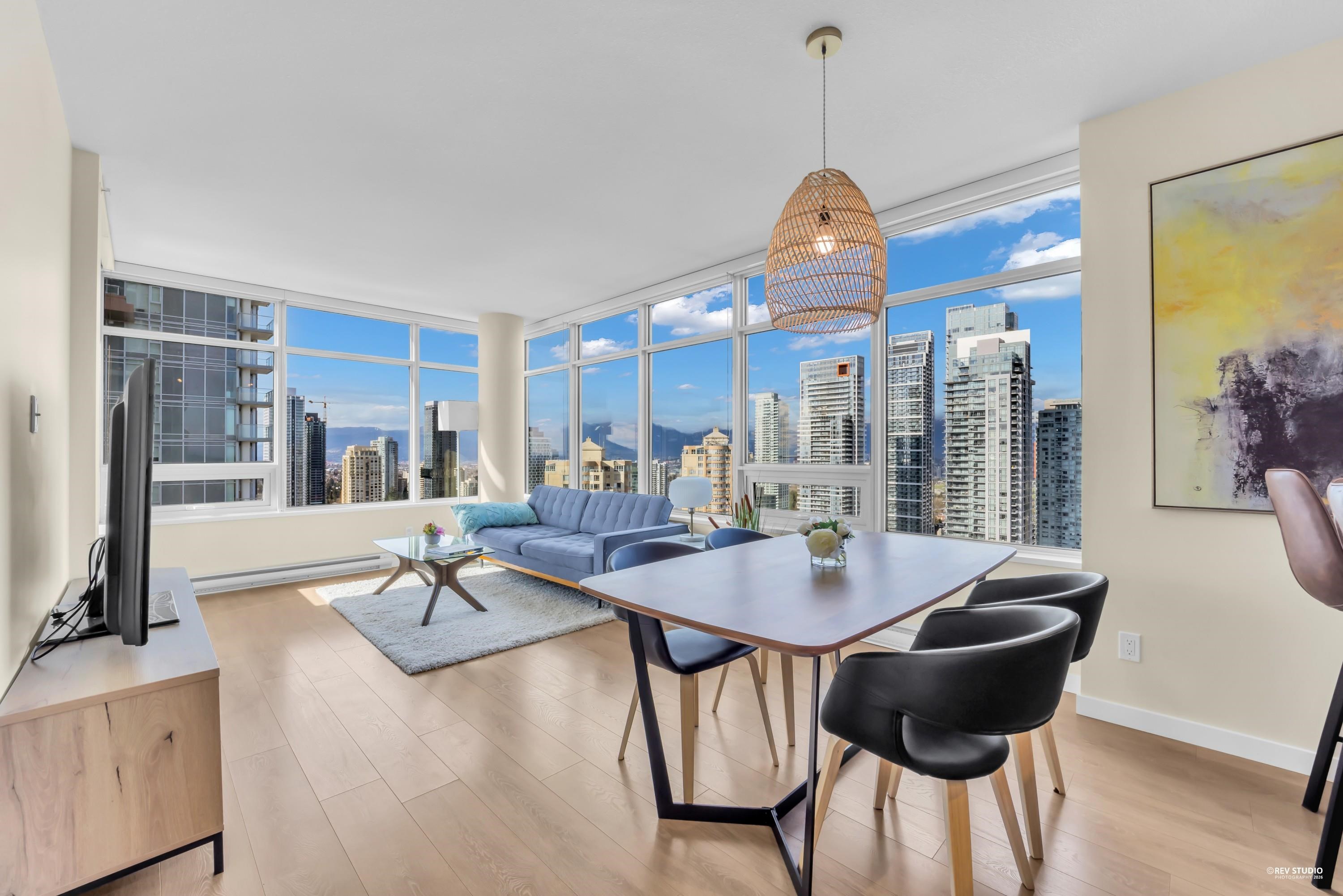 29th-floor corner unit at Metroplace by Intracorp. This bright home features 2B+ 2B, and a Large den able to fit a bed making it a potential third bedroom. With large windows for unobstructed mountain and city views. A major highlight is the DOUBLE side-by-side 2 parking stalls located very close to the elevator for maximum convenience. Nicely maintained. This property offers a gourmet kitchen with quartz countertops and a marble backsplash in an unbeatable location. Steps to the SkyTrain, bus loop, Metrop...