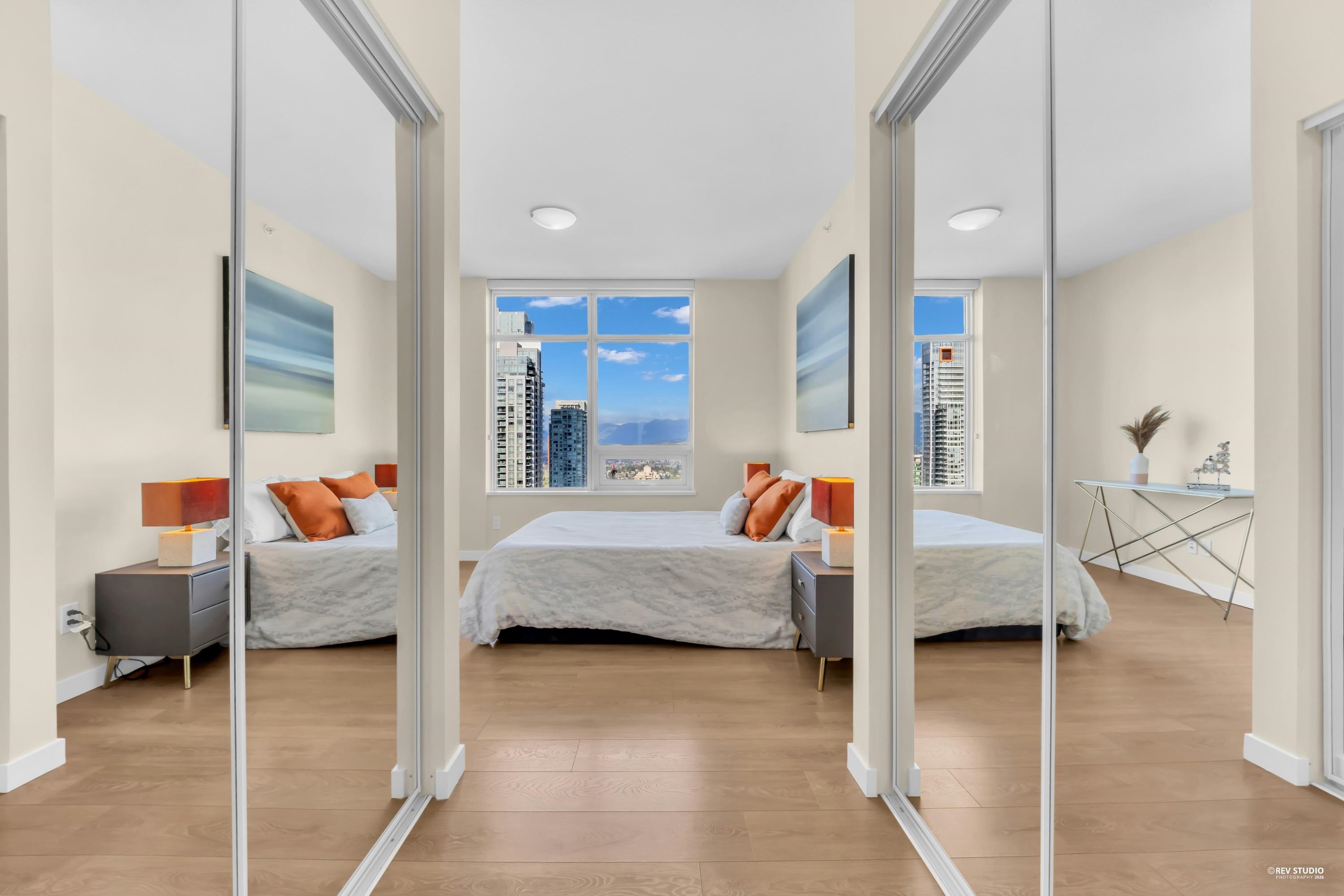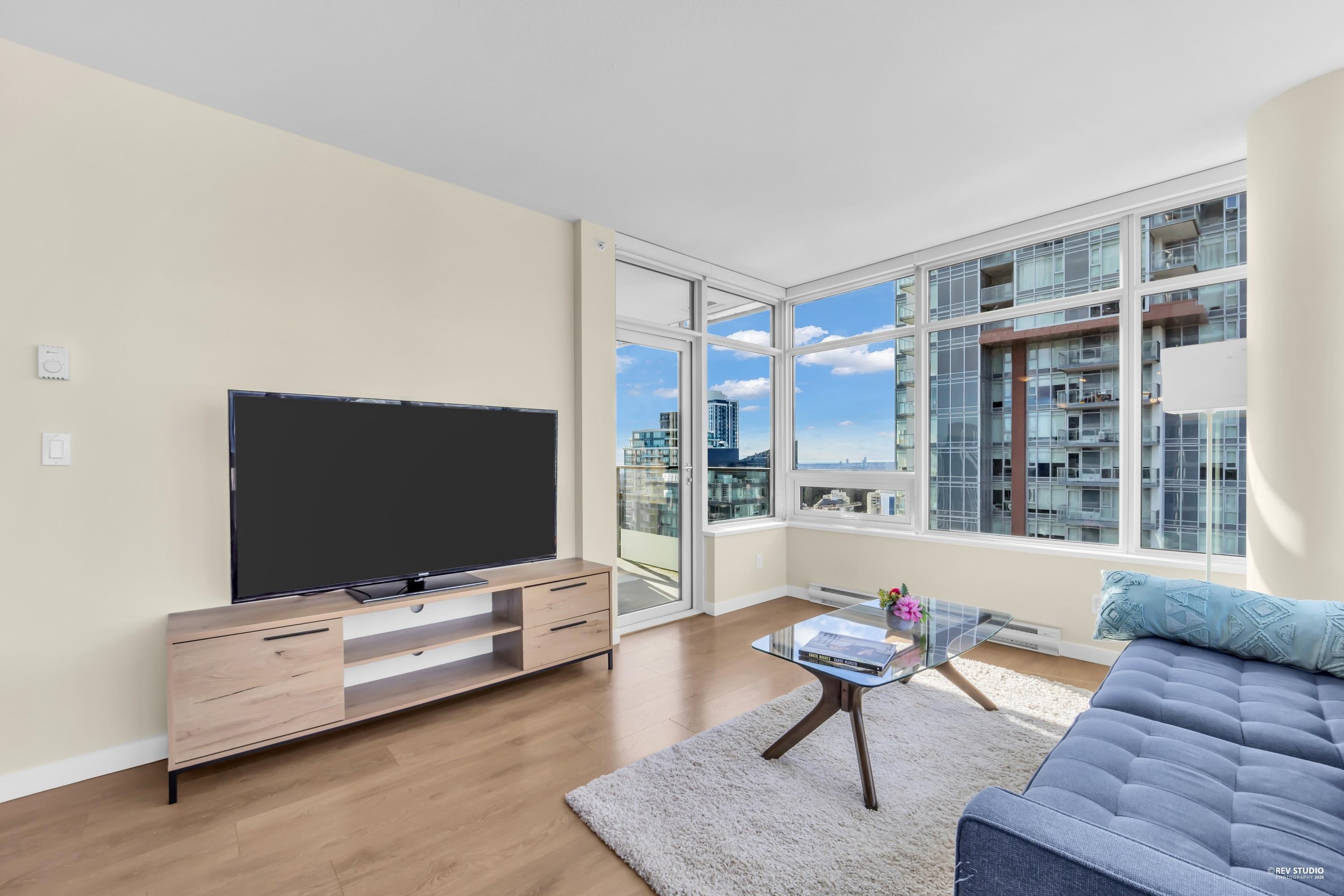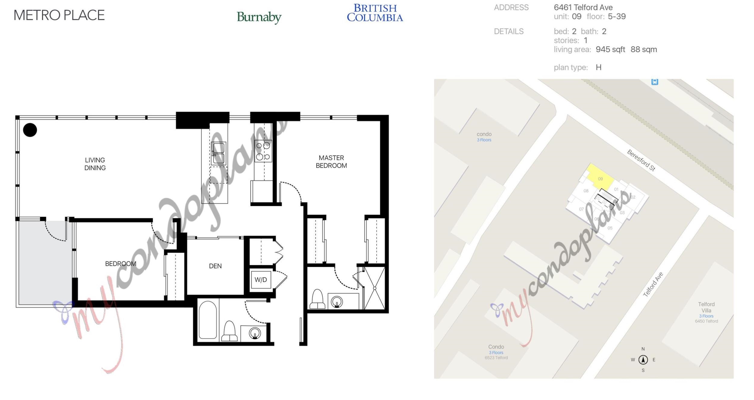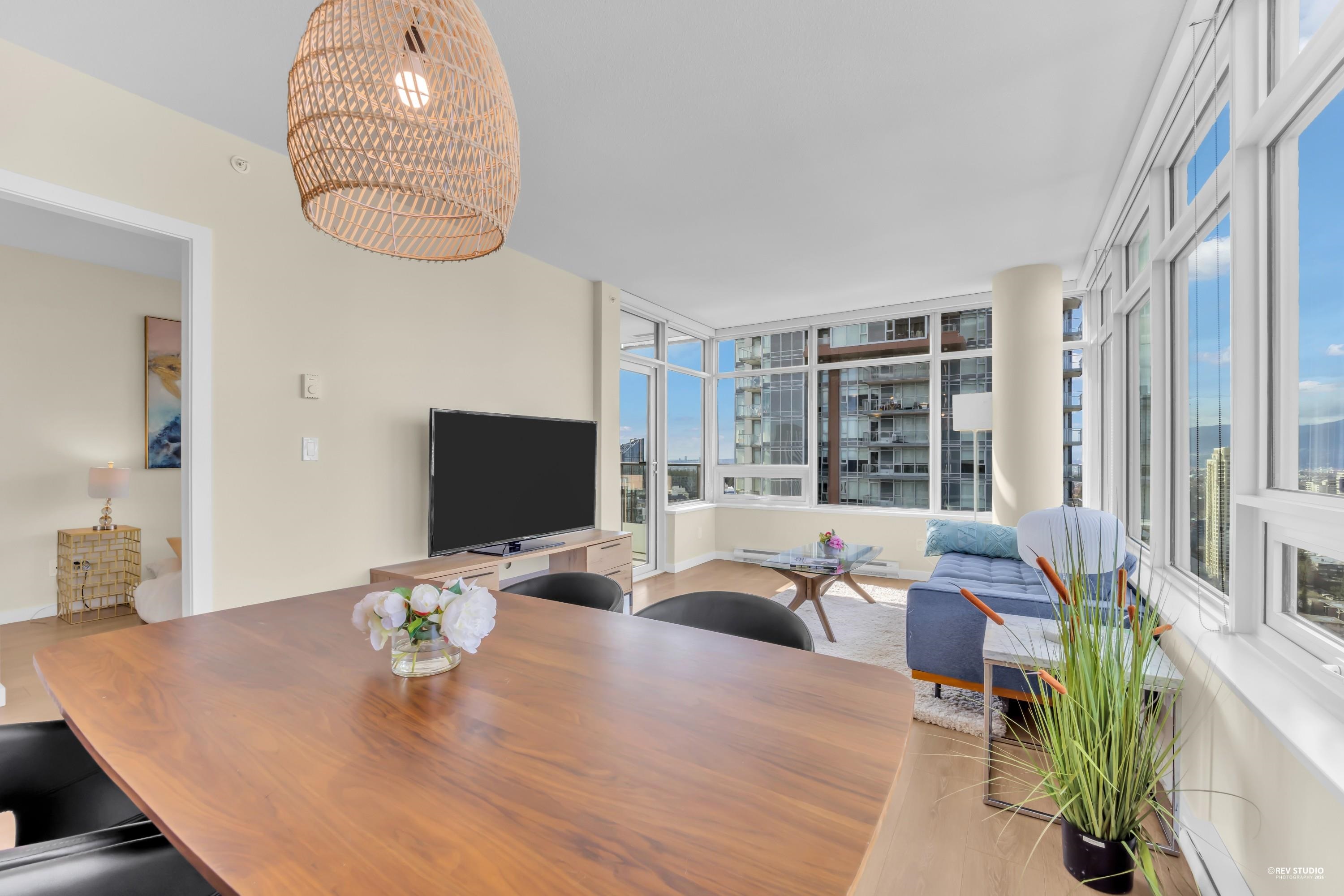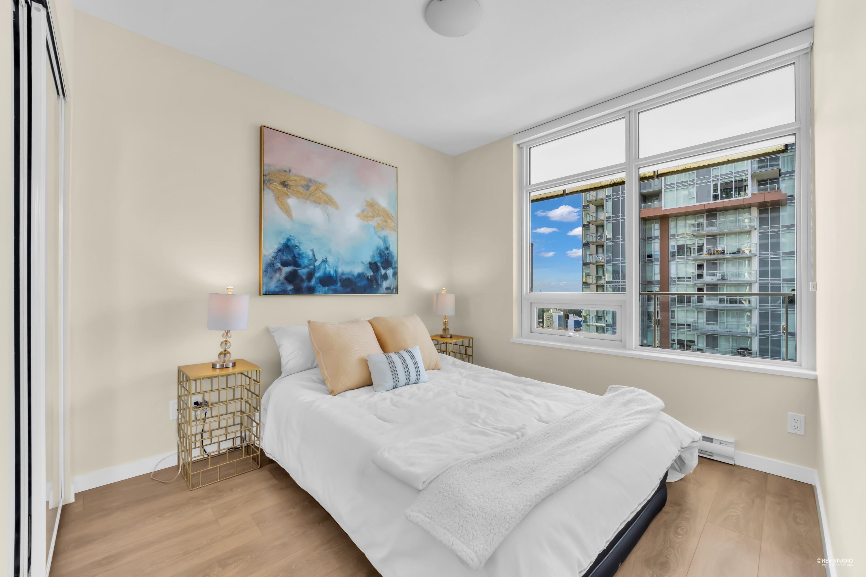29th-floor corner unit at Metroplace by Intracorp. This bright home features 2B+ 2B, and a Large den able to fit a bed making it a potential third bedroom. With large windows for unobstructed mountain and city views. A major highlight is the DOUBLE side-by-side 2 parking stalls located very close to the elevator for maximum convenience. Nicely maintained. This property offers a gourmet kitchen with quartz countertops and a marble backsplash in an unbeatable location. Steps to the SkyTrain, bus loop, Metrop...