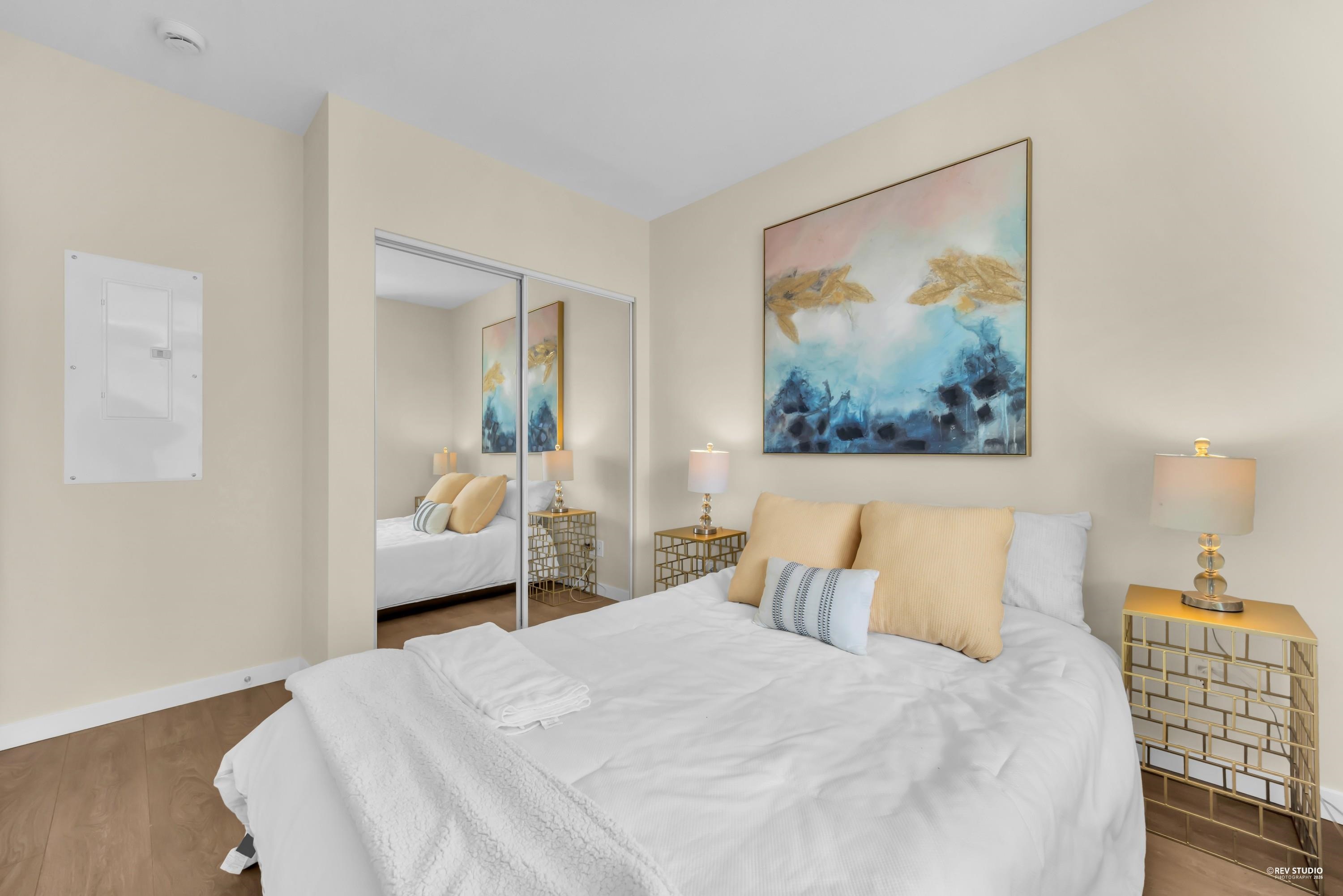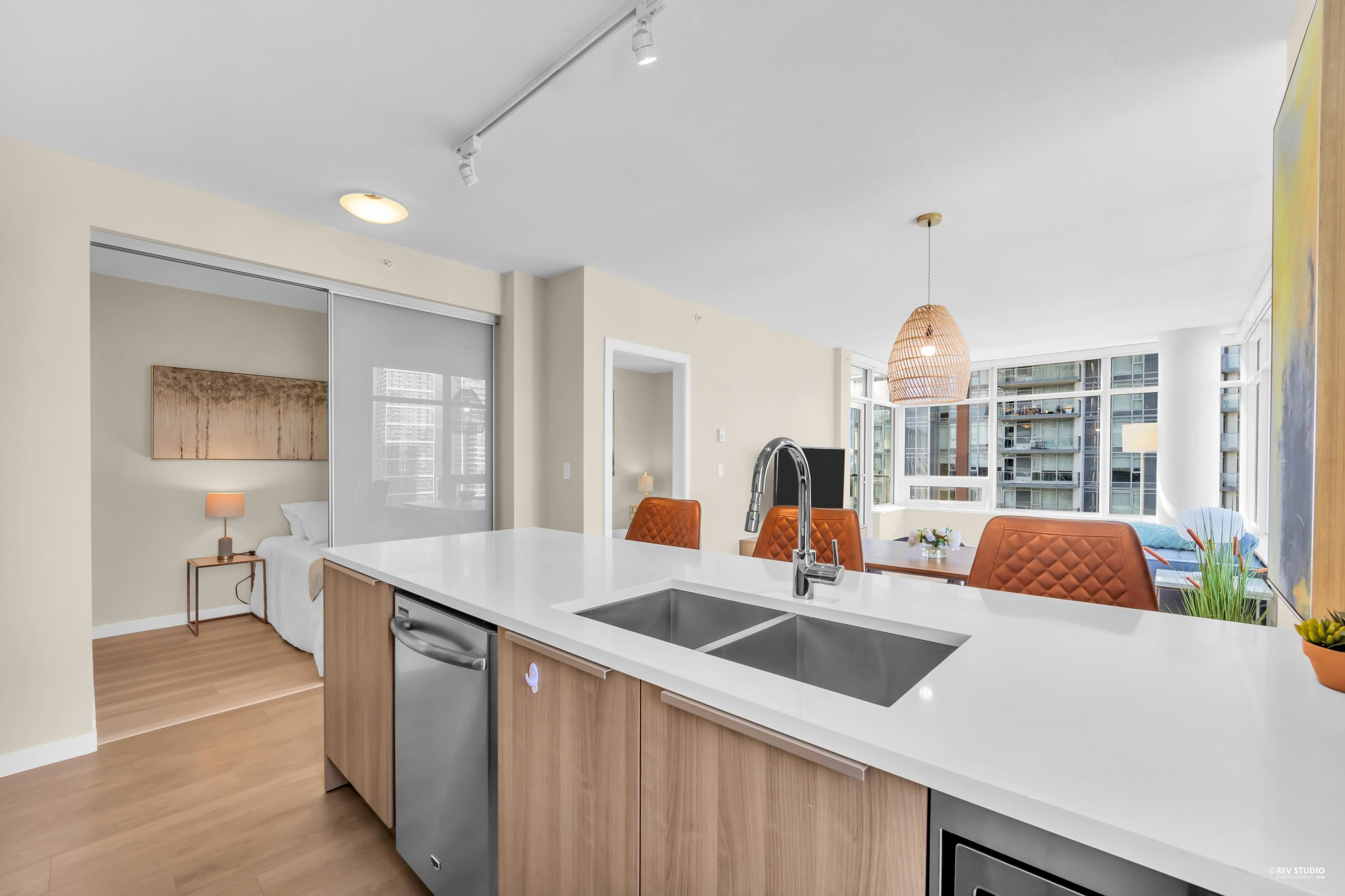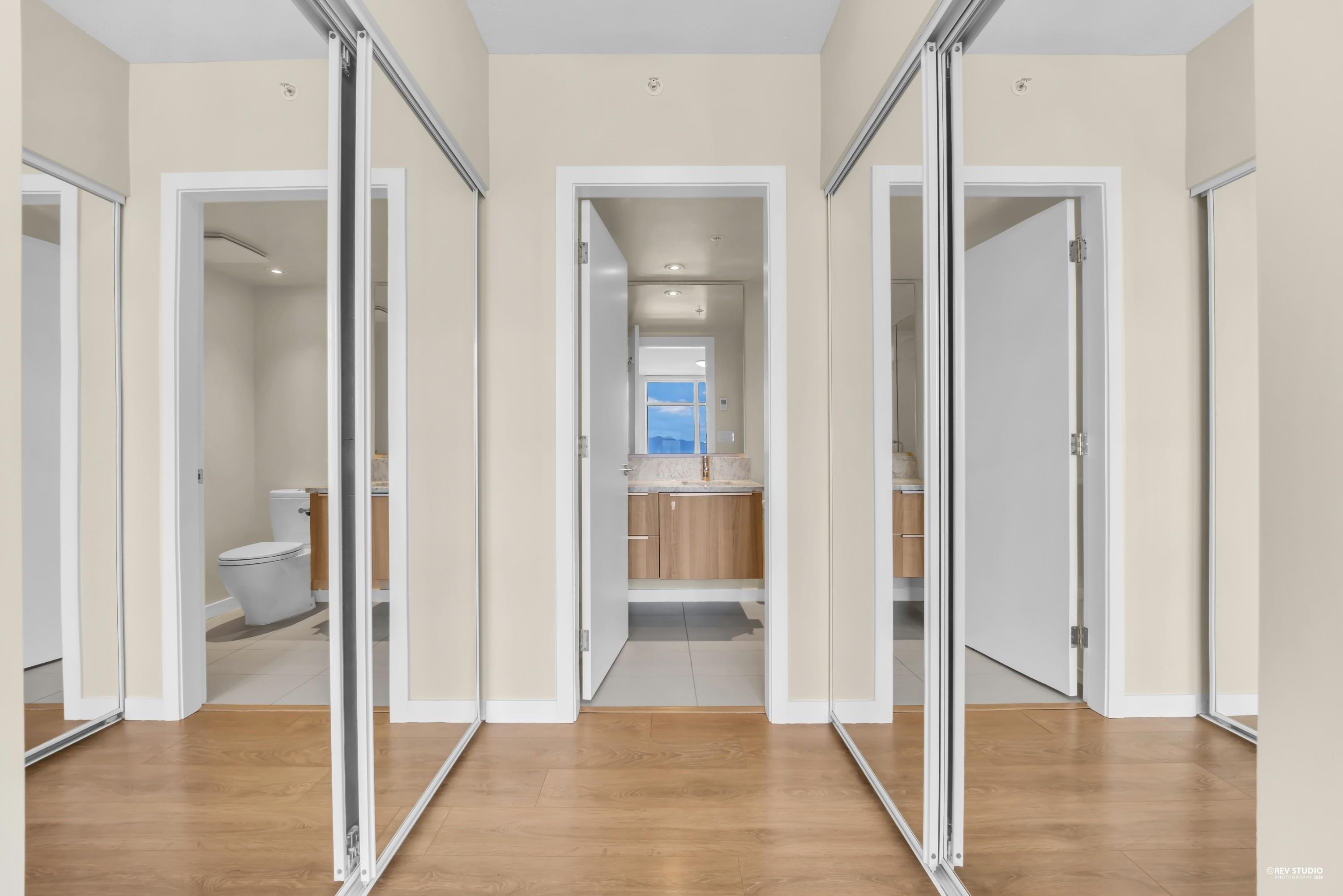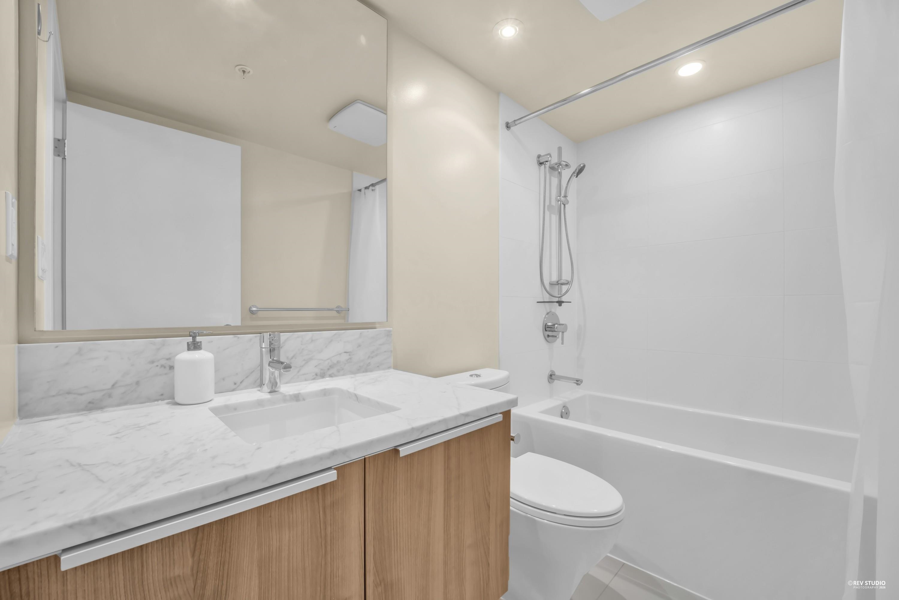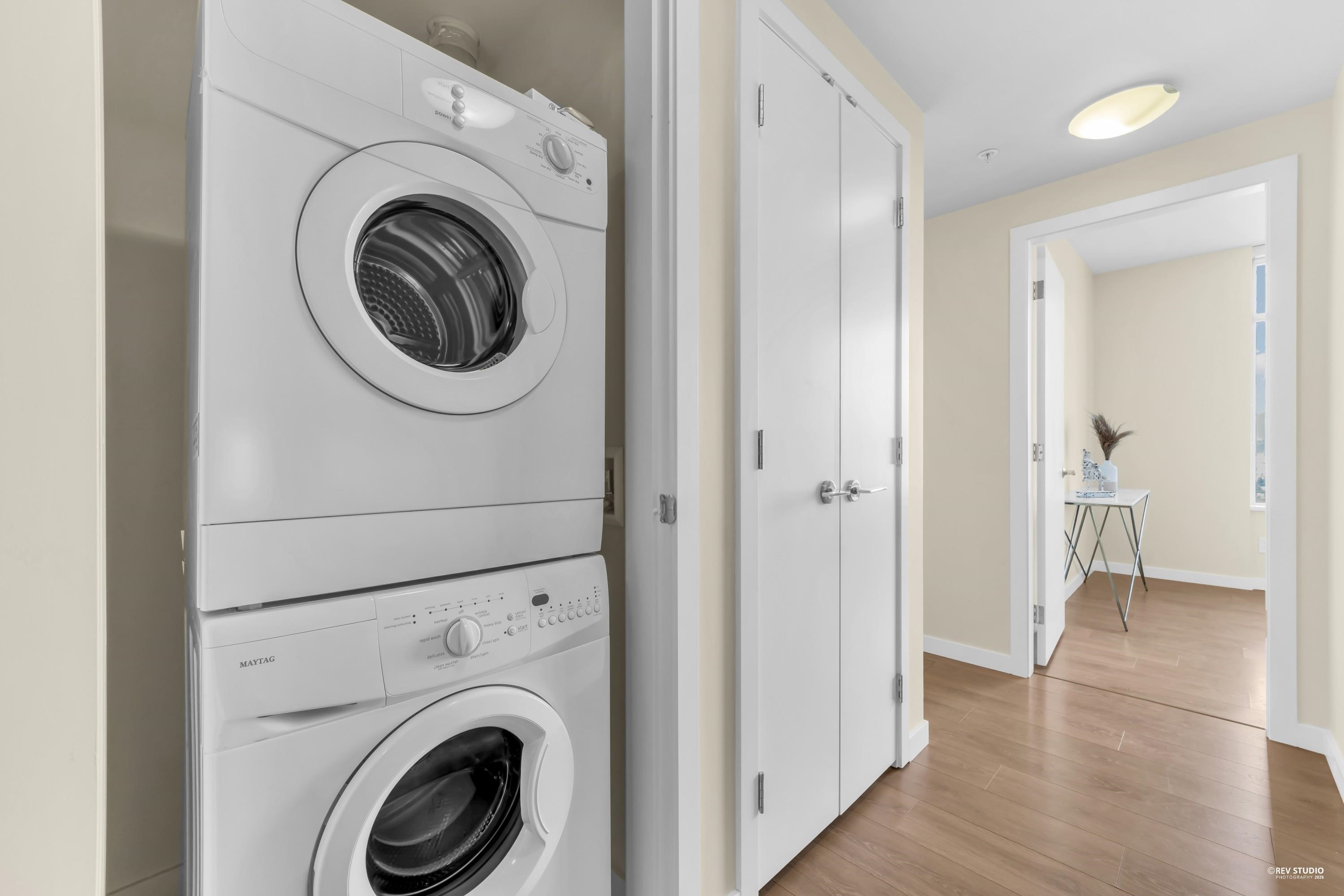 29th-floor corner unit at Metroplace by Intracorp. This bright home features 2B+ 2B, and a Large den able to fit a bed making it a potential third bedroom. With large windows for unobstructed mountain and city views. A major highlight is the DOUBLE side-by-side 2 parking stalls located very close to the elevator for maximum convenience. Nicely maintained. This property offers a gourmet kitchen with quartz countertops and a marble backsplash in an unbeatable location. Steps to the SkyTrain, bus loop, Metrop...