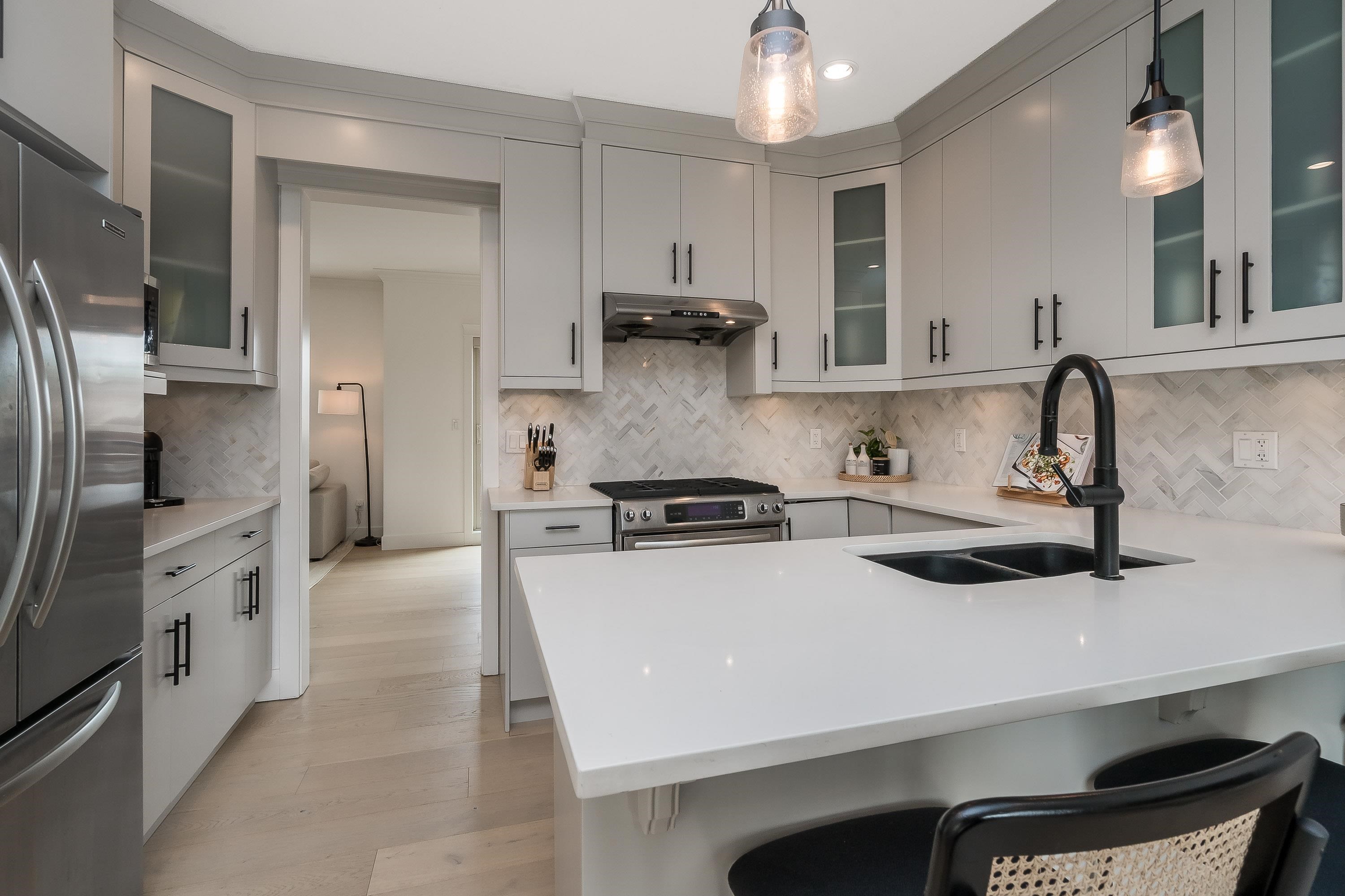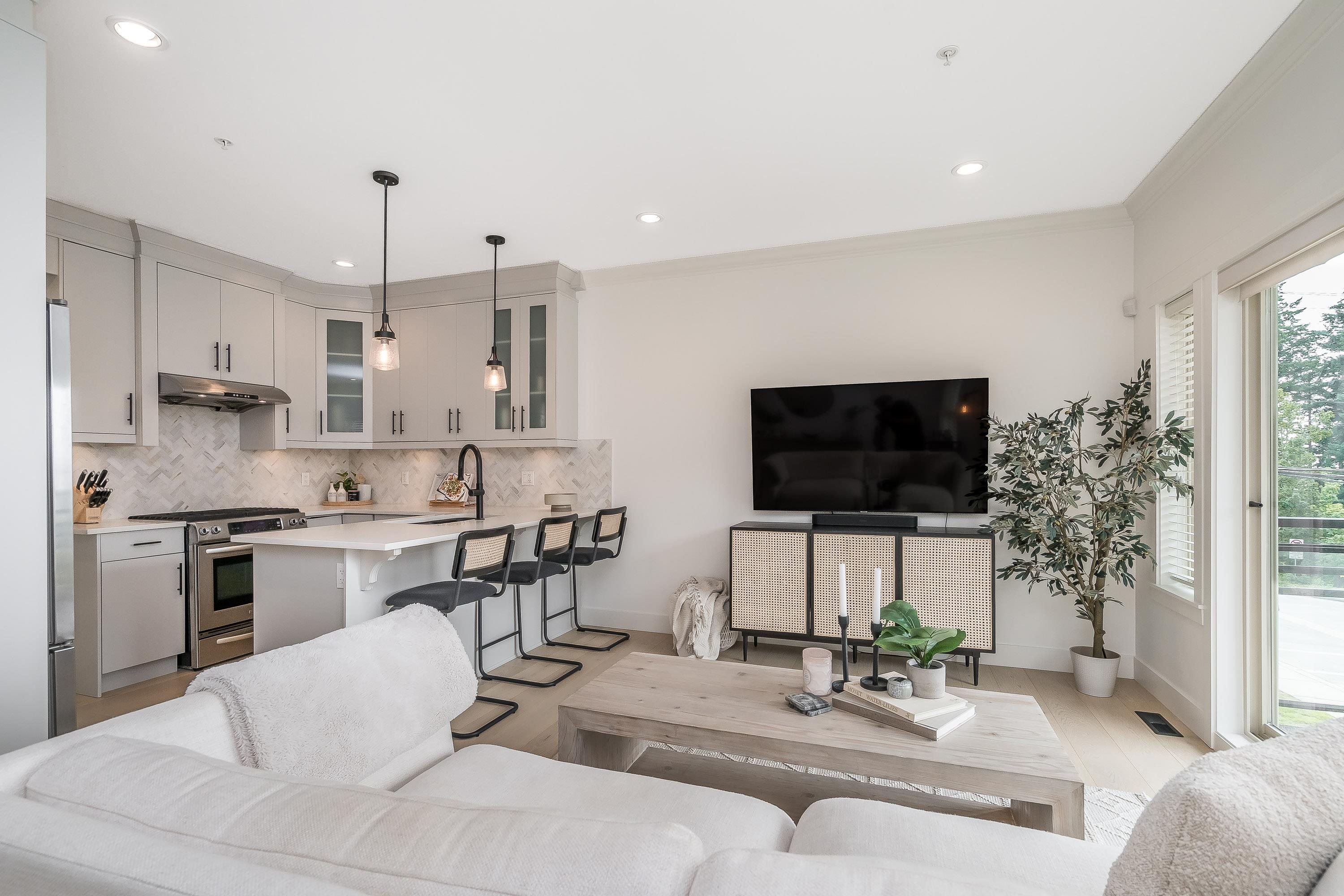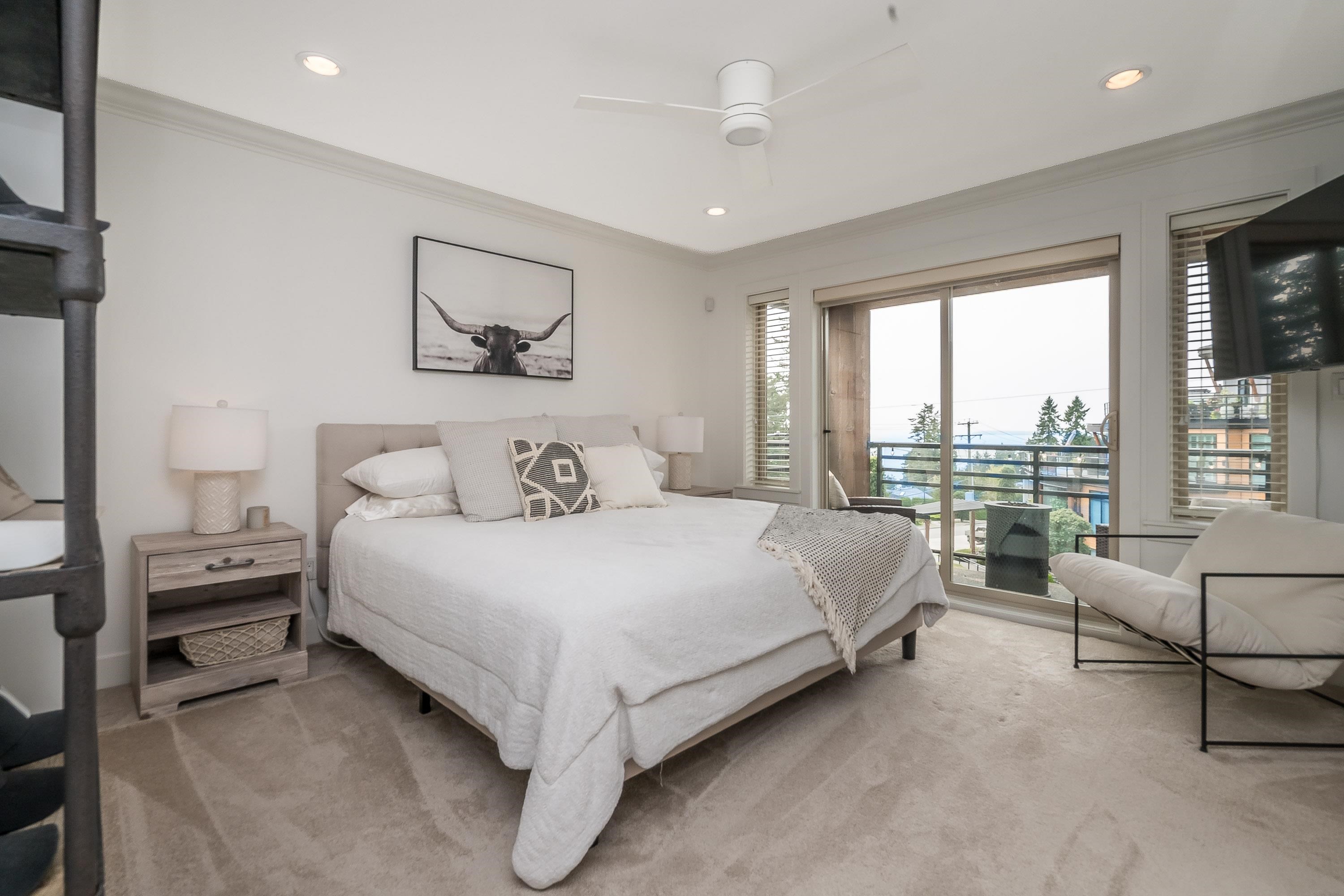 Rarely available in the Avonlea development! This substantially renovated 4-bed, 3-bath townhome offers stunning ocean views from both the main living area and the primary bedroom. Set within an exclusive 5-unit community, it features a private back-alley entrance to a double garage, modern upgrades throughout, and a bright open-concept layout with two spacious living areas on the main floor. With three balconies, including a top deck off the master showcasing beautiful ocean views, this home is steps from ...