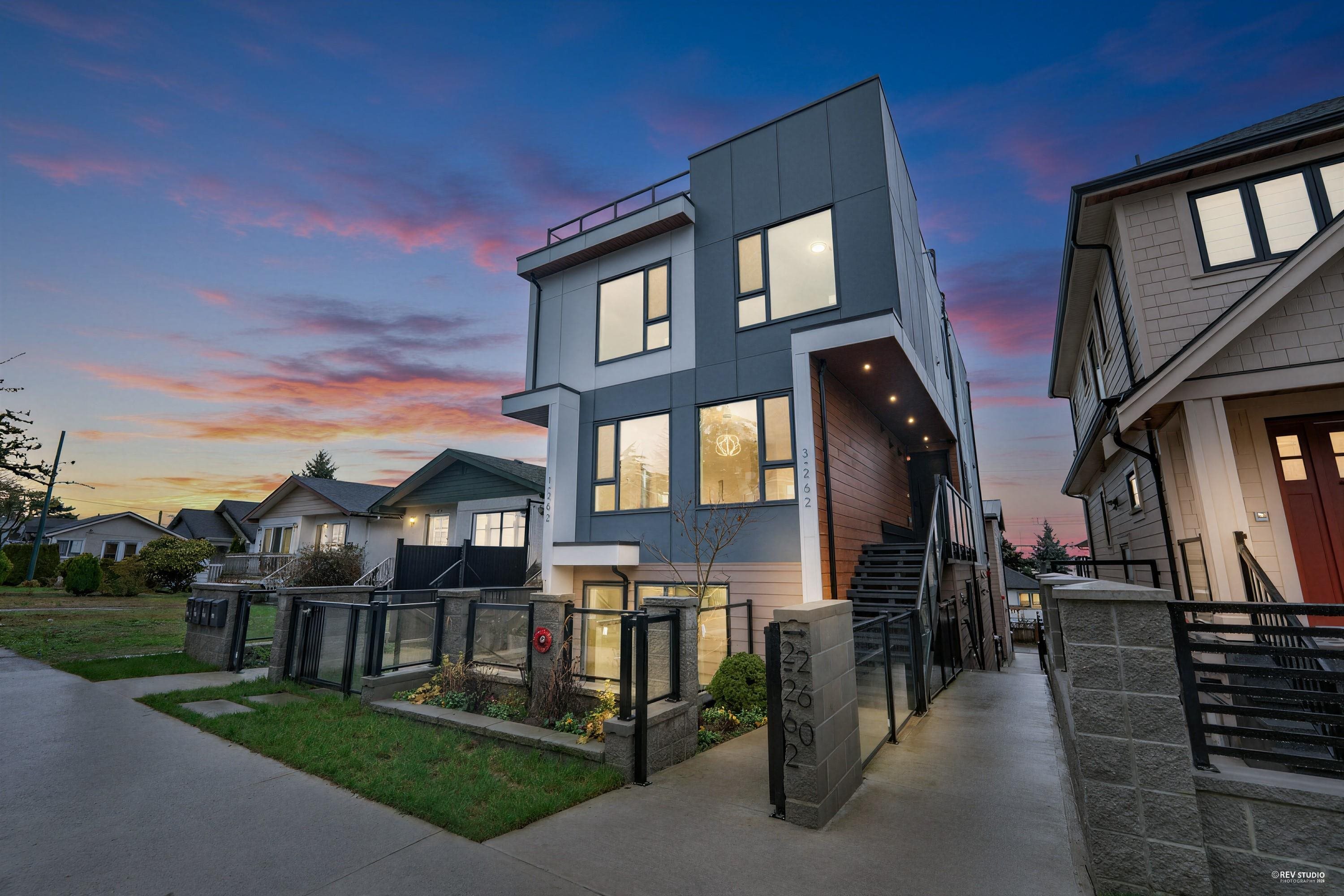 Brand-new south facing upper unit with full ownership, no strata fees, and private 450sqft rooftop patio w/ unobstructed city & mountain views! This thoughtfully designed residence features 3 bdrm & 2.5 bath, showcasing clean architectural lines and a bright open-concept layout. Quality finishes include triple-glazed metal-frame windows and energy-efficient systems. Ideally located within walking distance to bus routes and SkyTrain, with quick access to Knight Bridge and nearby shops. Enjoy 450sqft rooftop ...