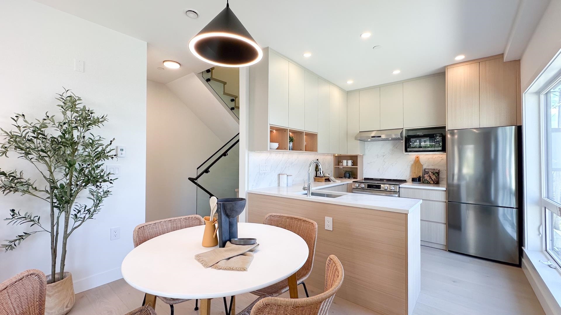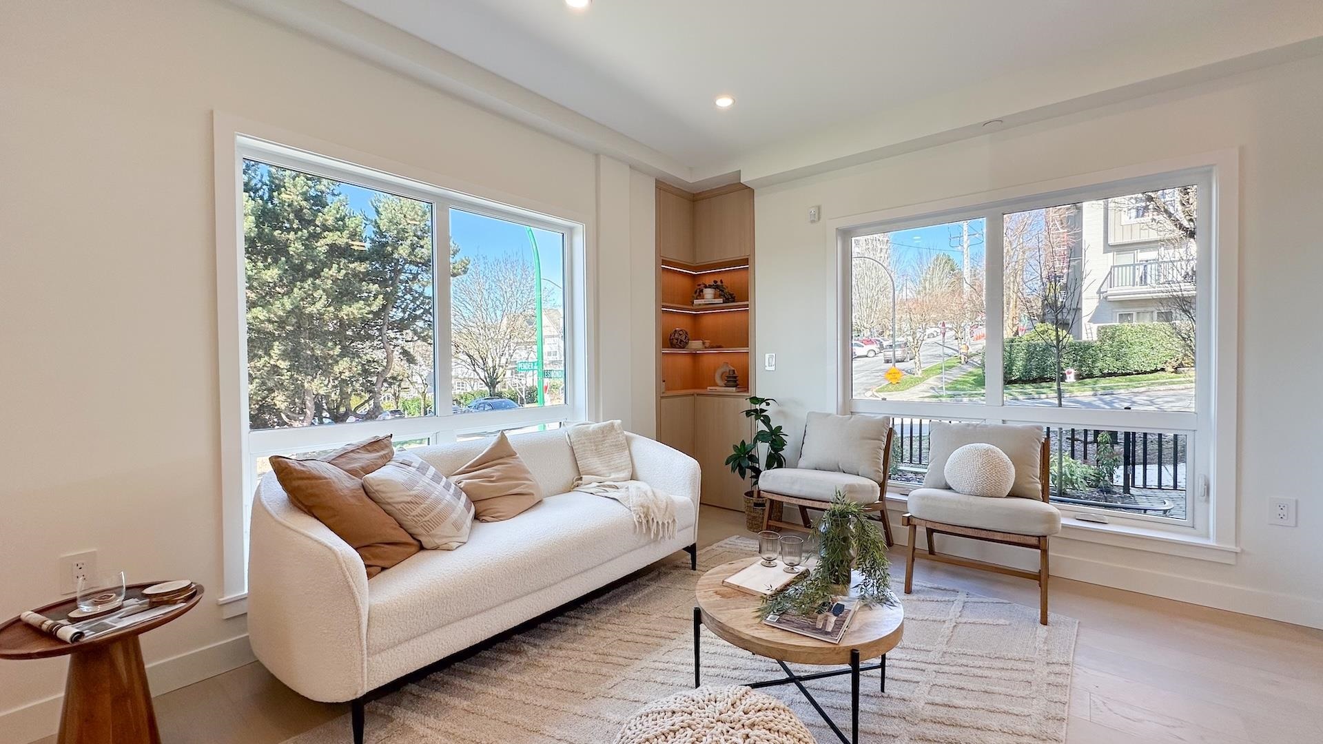 Welcome to Burnaby North's brand new 3 bedroom residence, ideally situated just one block from Vancouver in the heart of Willingdon Heights. This Northeast facing, 4 level townhouse showcases a view to the North Shore and an open concept designer floor plan. Built by a respected local builder with a refined designer touch, this home features elegant hardwood flooring, custom cabinetry & closets, quartz countertops an premium finishes throughout. Each unit is equipped with radiant in-floor heating and air co...