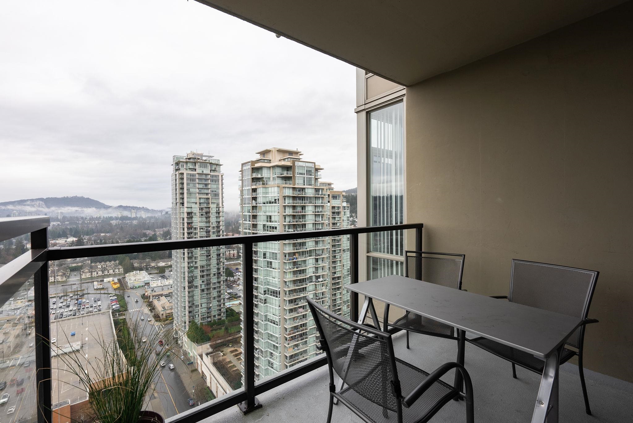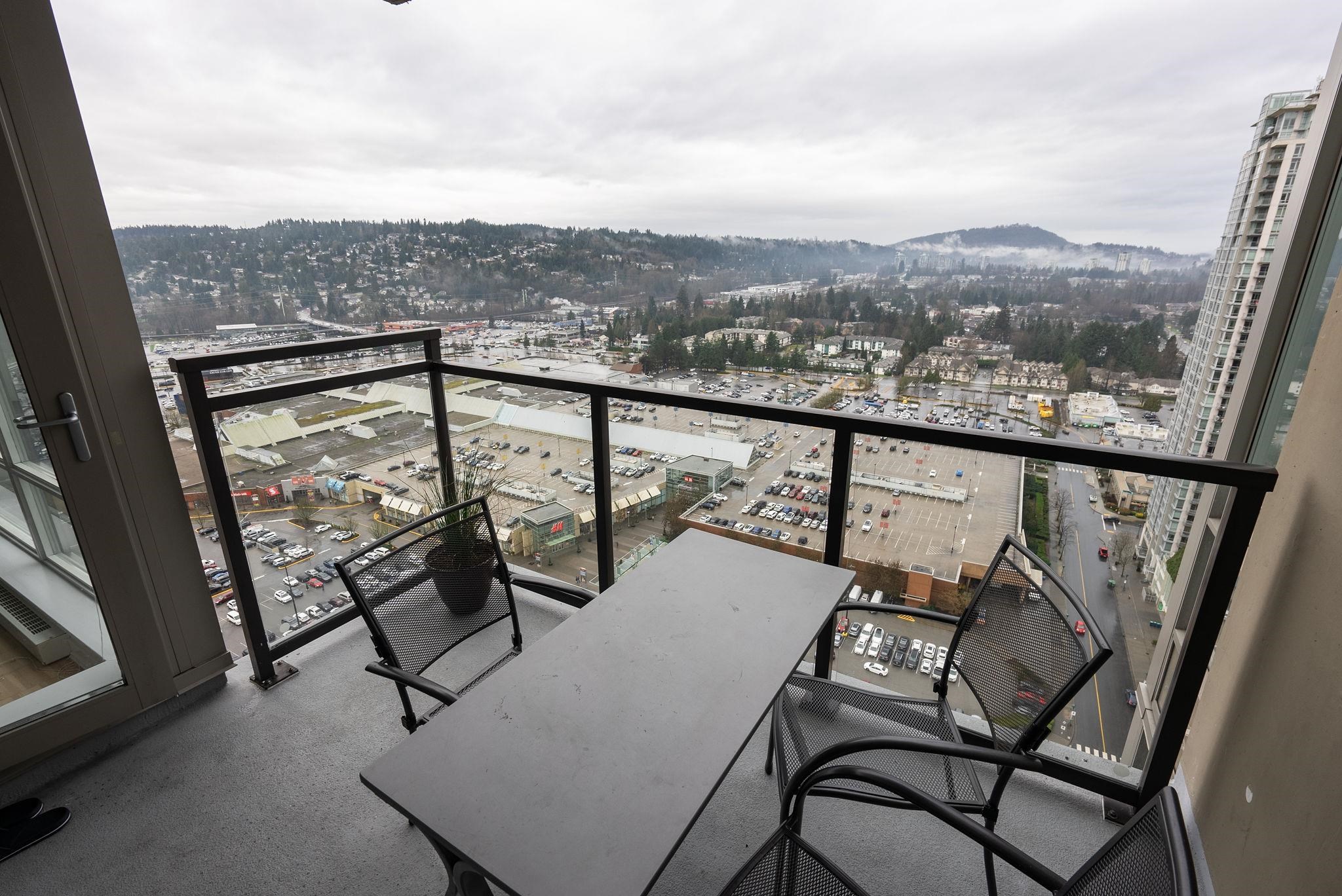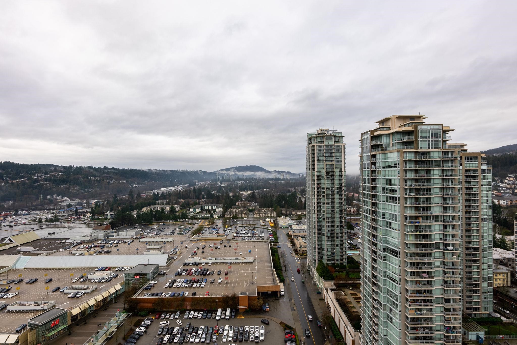 Welcome to The Levo! 30th floor west-facing 2 bed, 1 bath rental w/ unmatched panoramic mountain & city views from floor-to-ceiling windows. Open layout, S/S appliances, granite counters & spacious patio for sunsets. Amenities: party room & 30,000 sq ft rooftop garden. Steps to SkyTrain, WCE, Lafarge Lake, Douglas College, Coq Centre, shops & dining. Incl. 1 parking + 1 locker.