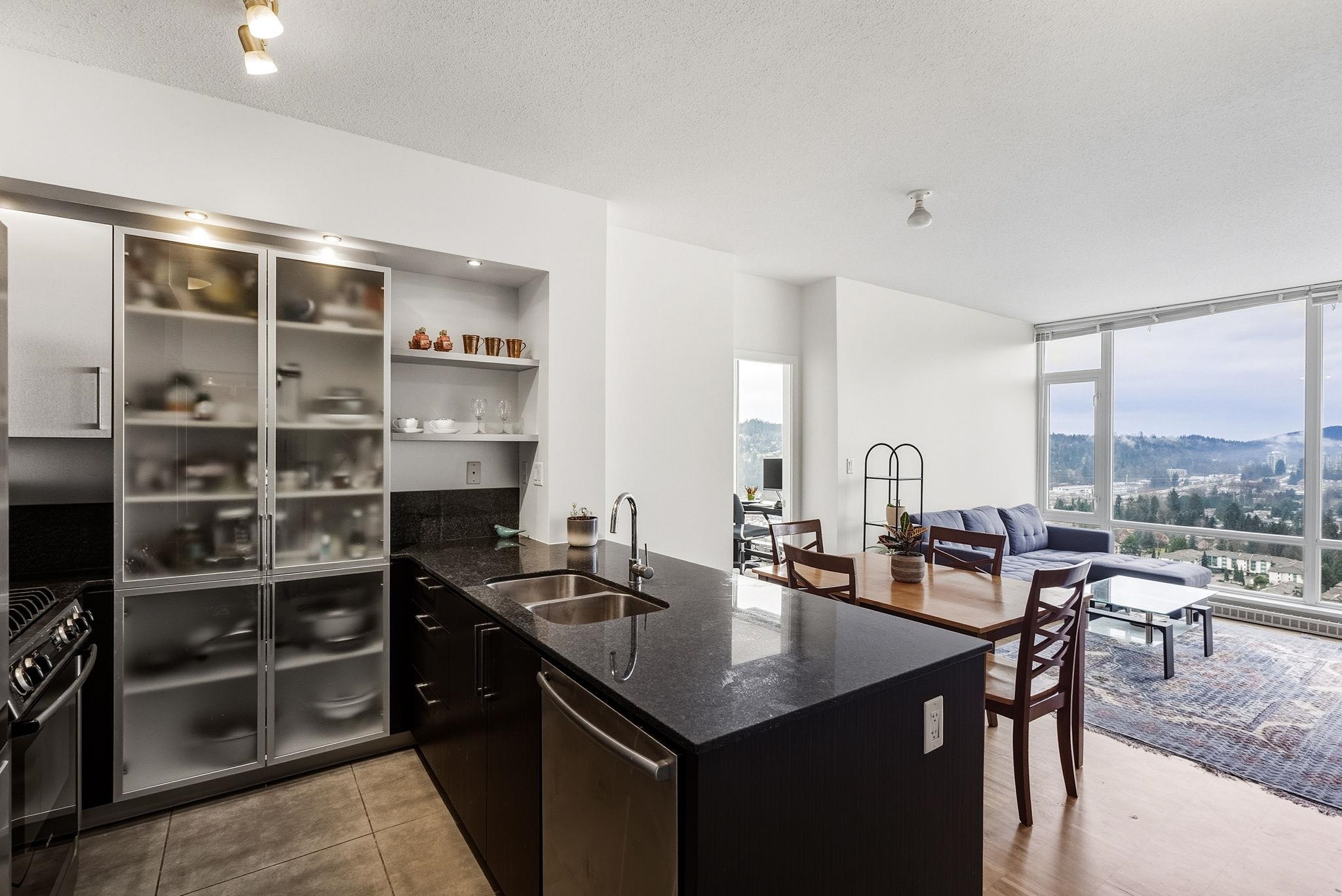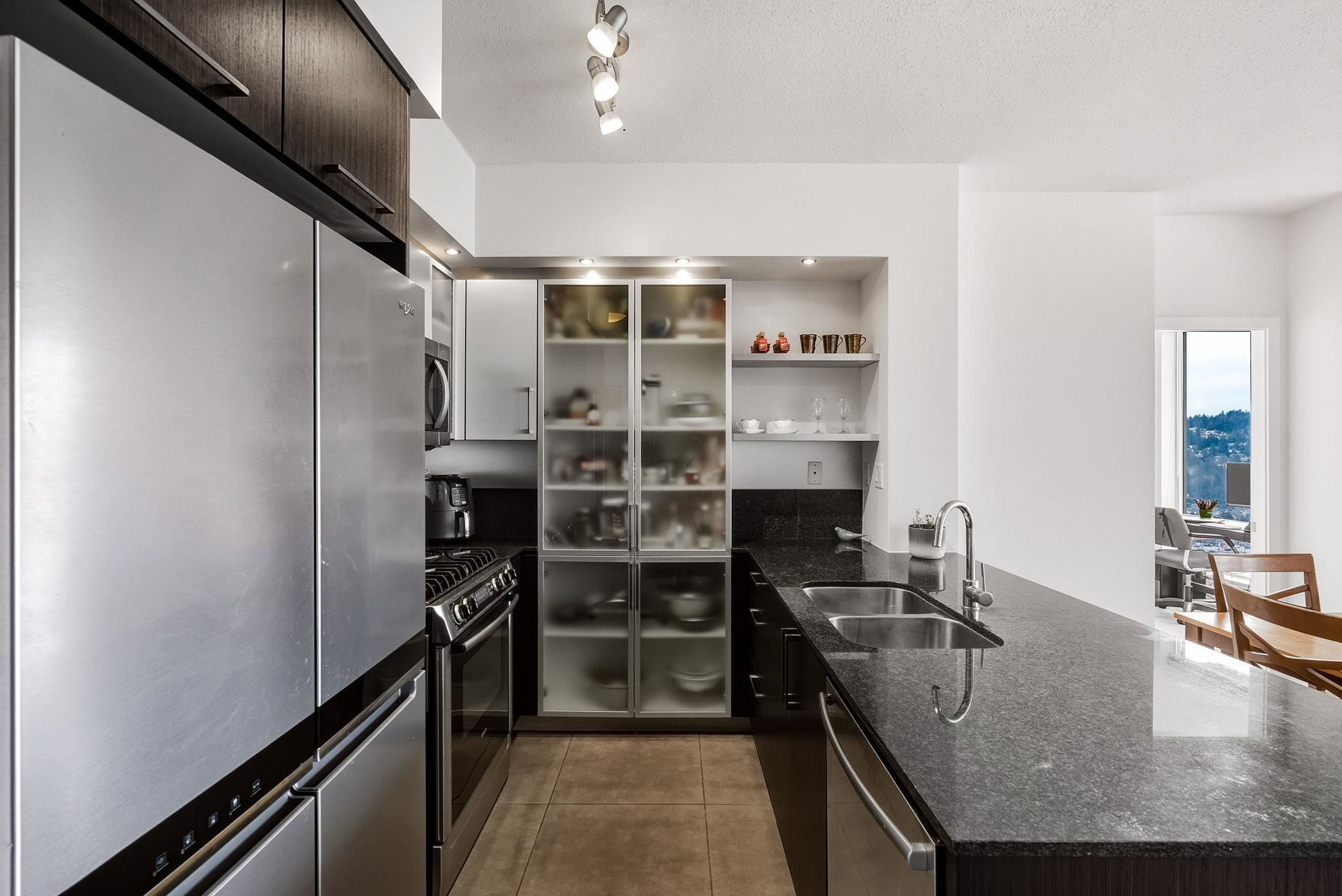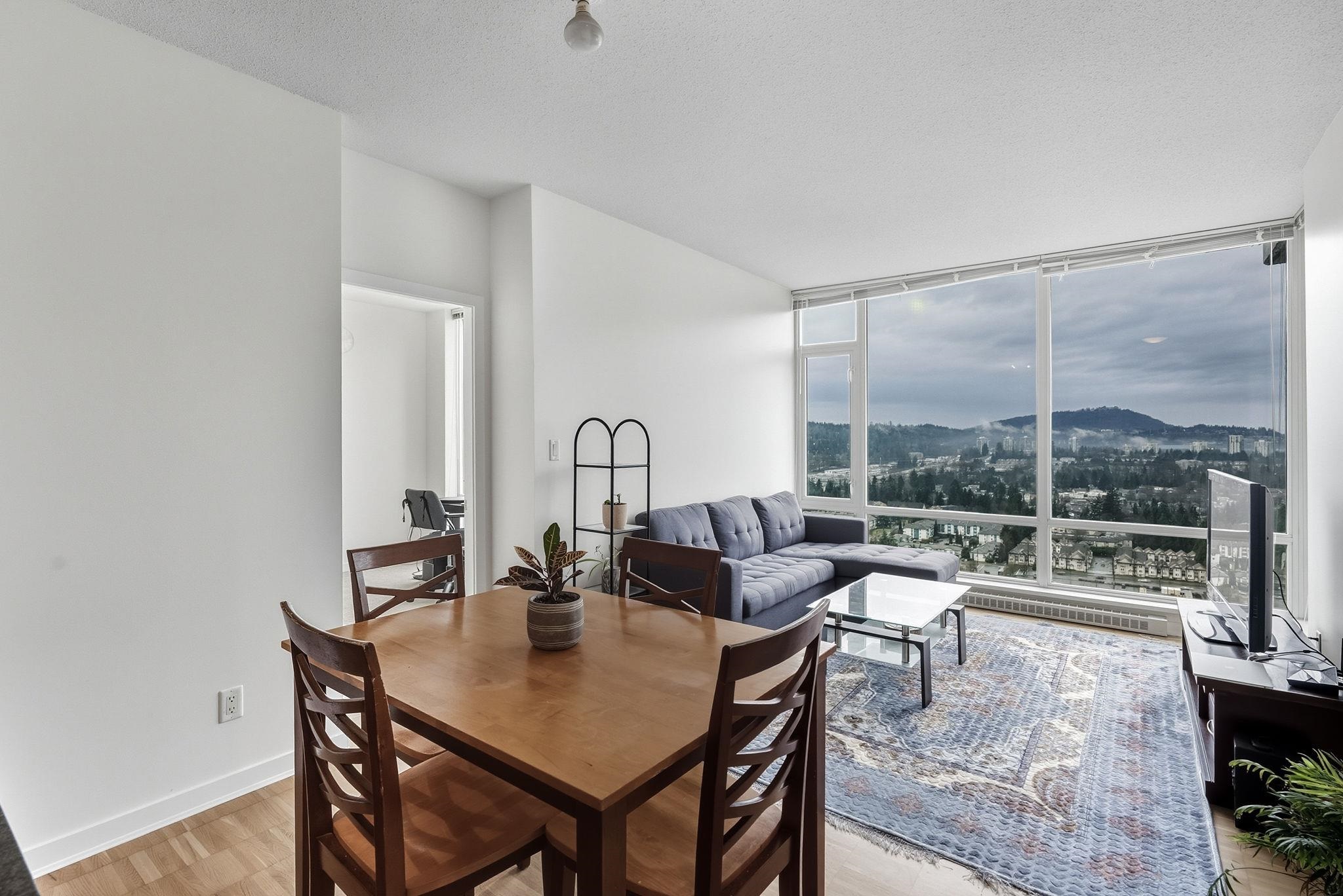 Welcome to The Levo! 30th floor west-facing 2 bed, 1 bath rental w/ unmatched panoramic mountain & city views from floor-to-ceiling windows. Open layout, S/S appliances, granite counters & spacious patio for sunsets. Amenities: party room & 30,000 sq ft rooftop garden. Steps to SkyTrain, WCE, Lafarge Lake, Douglas College, Coq Centre, shops & dining. Incl. 1 parking + 1 locker.