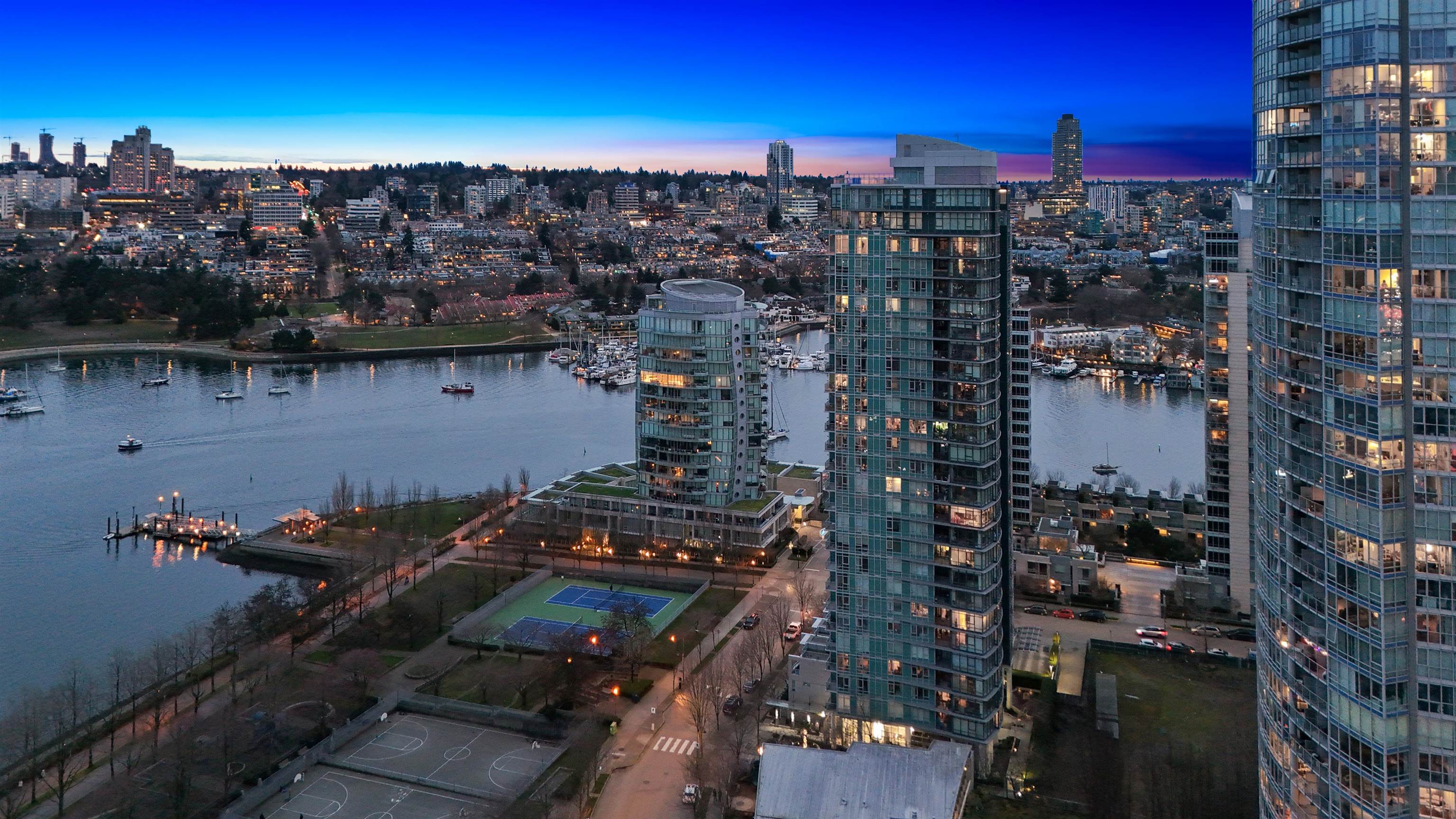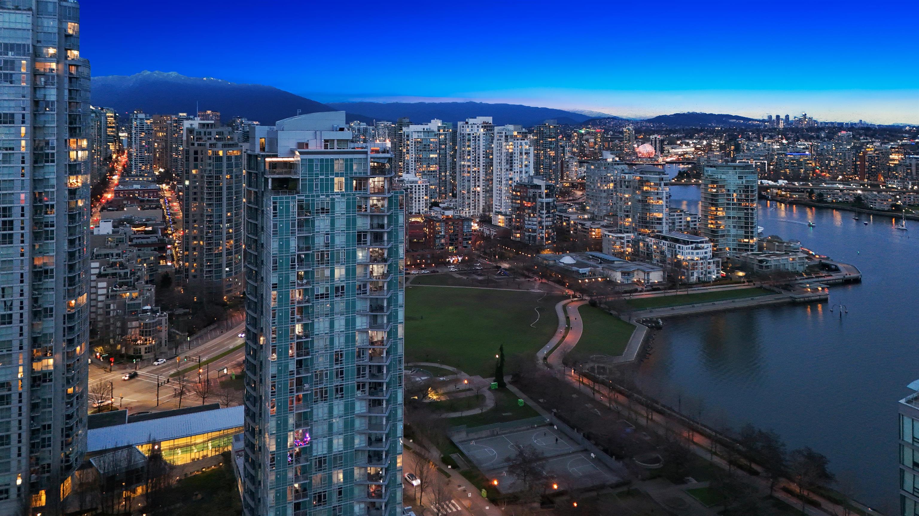 This exceptional 2 bdrm plus den sub-penthouse residence offers sweeping, unobstructed views of Downtown and False Creek from an elevated vantage point and offers 9'6 ceiling height on the 30th level. Waterford is a boutique development with only 5 suites per floor, AC, concierge, resort style amenities including pool, hot tub, sauna and steam room - perfectly combining luxury, comfort and urban sophistication.