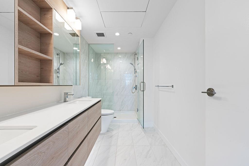 Solo District Tower 3! Welcome to Brentwood's premier location, & your 2 bedroom SW corner home with STUNNING mountain, city, and downtown Vancouver views! This freshly painted coveted "08" plan features over 960sf with central A/C, wide-plank laminate, stone countertops, separated spacious bedrooms, and two expansive outdoor terraces to take in the summer sunsets! Solo District living means Whole Foods, Amazing Brentwood, restaurants, retail, skytrain - all within steps! Soundly constructed by Jim Bosa's A...