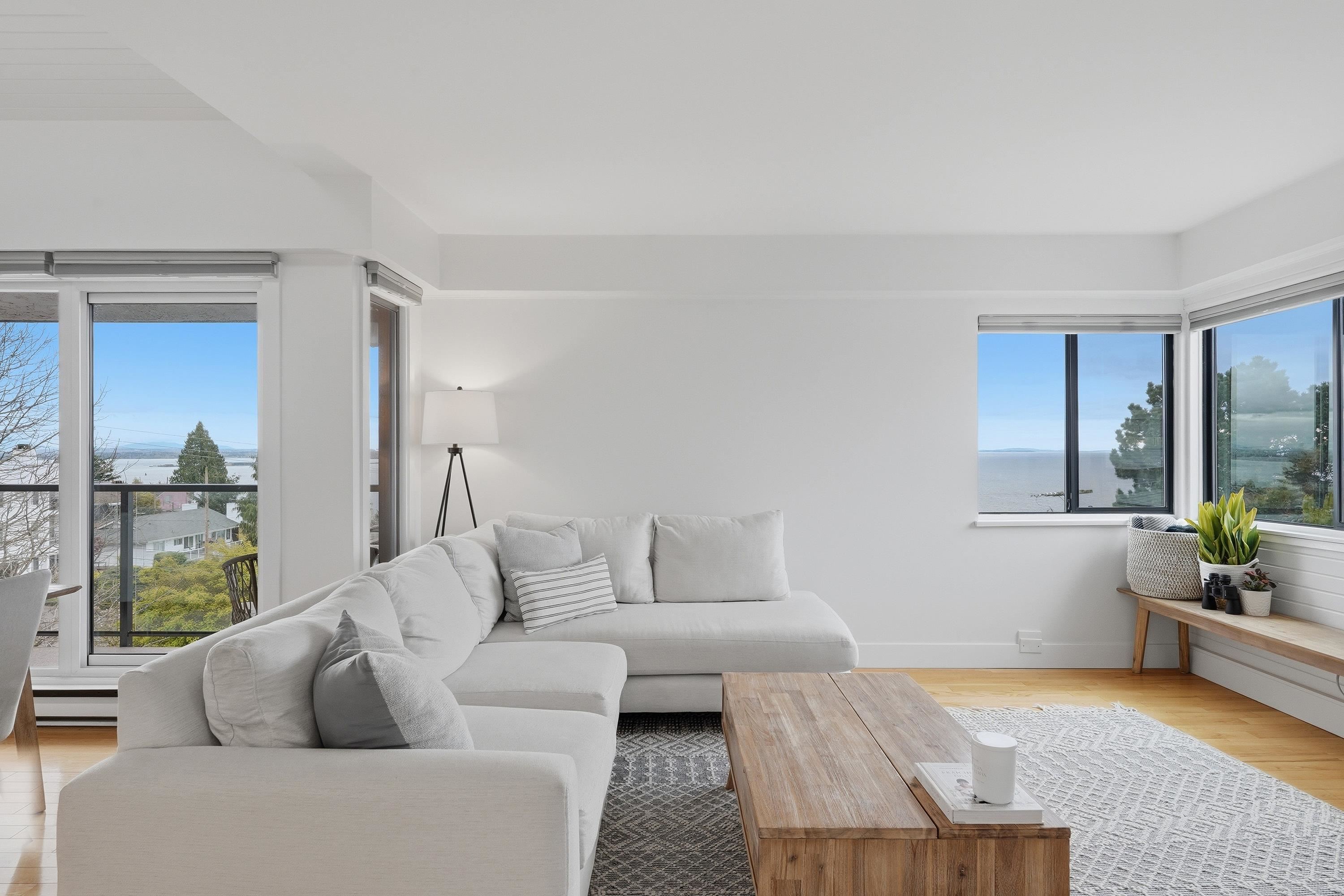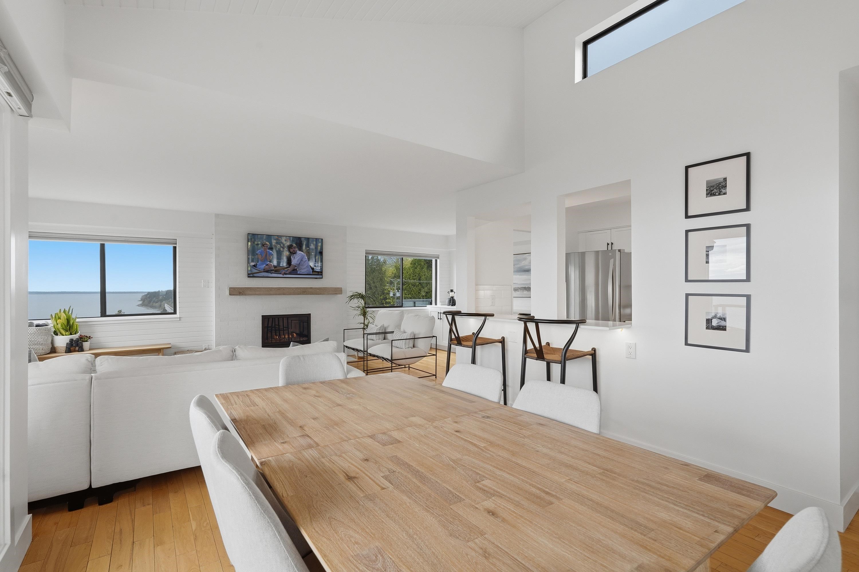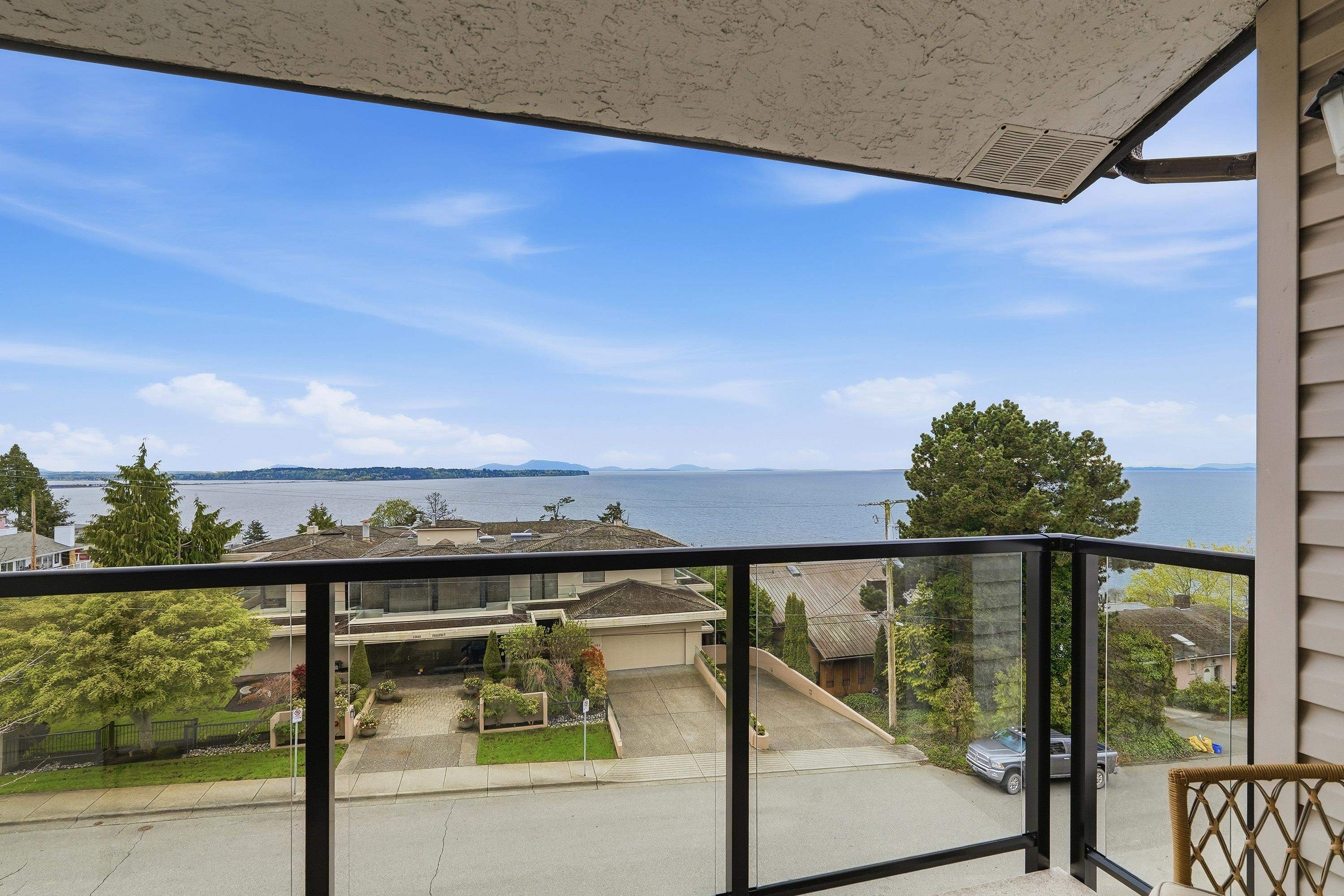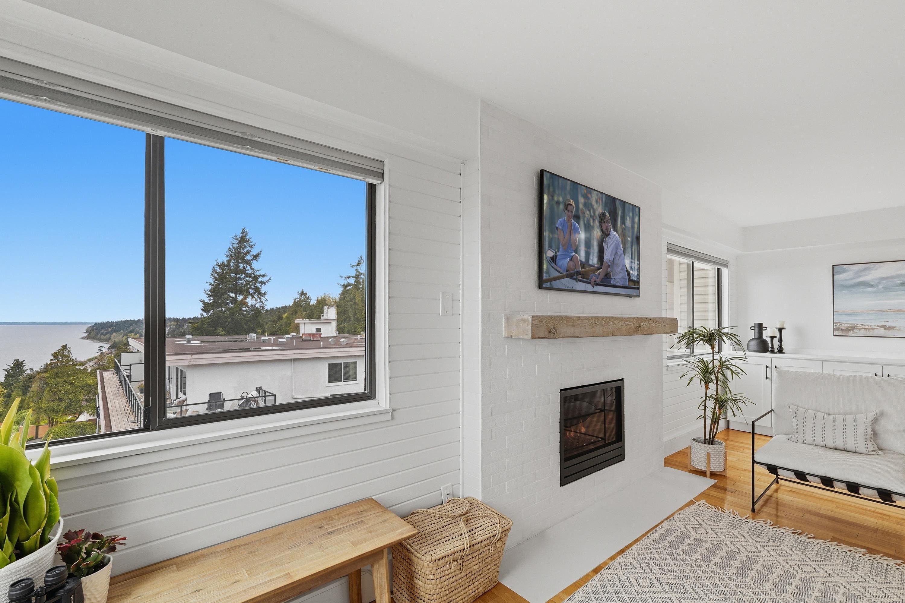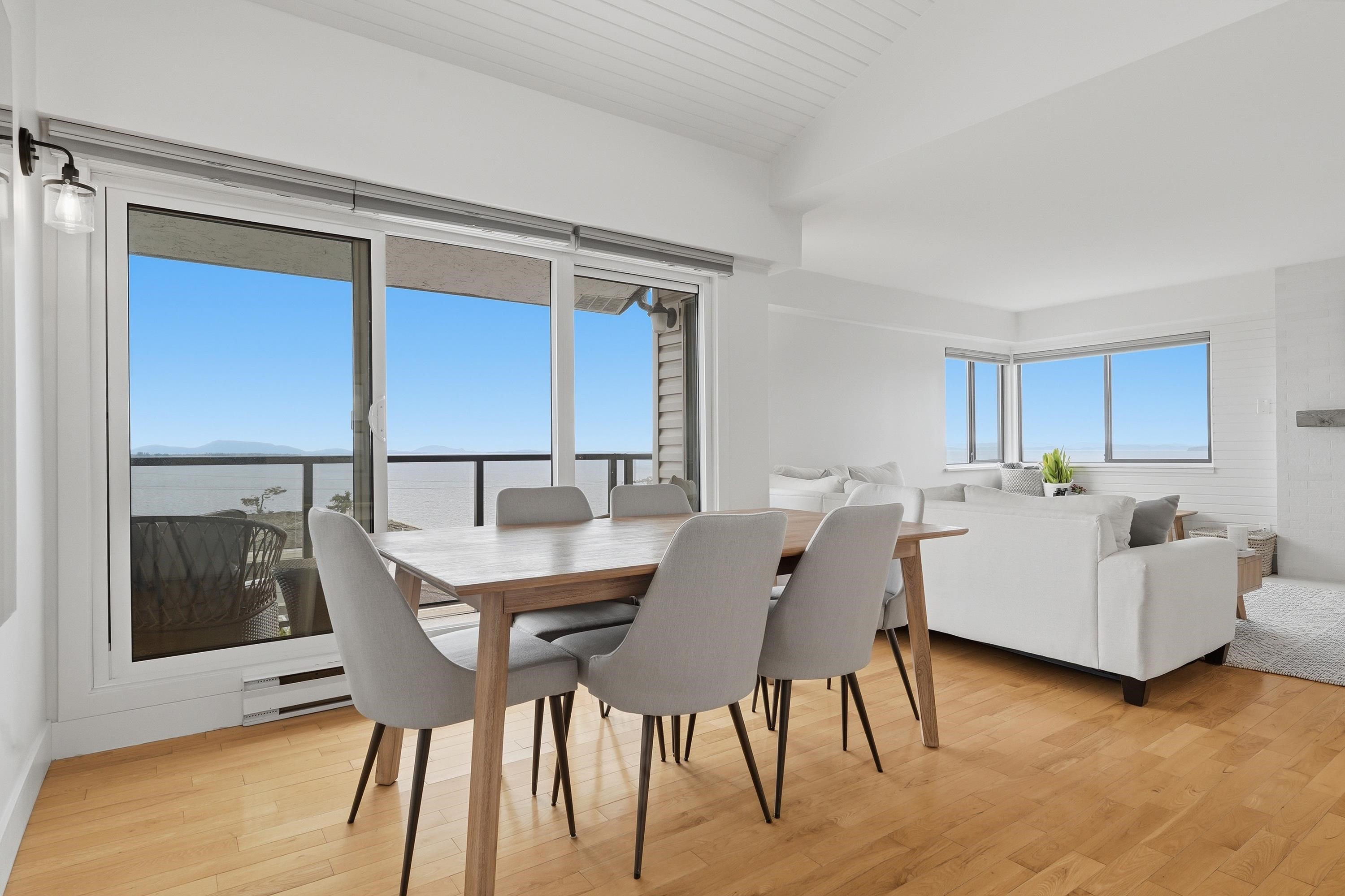 Very Rare 180° Ocean View Penthouse occupying the entire front of the building with only one shared wall, offering exceptional privacy. This renovated home features modern coastal design, 12.5' vaulted ceilings, and a bright south-facing exposure that fills the space with natural light all day. Enjoy a cozy gas fireplace, built in cabinets with wine fridge and outdoor deck for sunrises & sunsets on the ocean. Thoughtful layout includes 2 large bedrooms, 2 bathrooms, in-suite laundry & ample storage. 1 parki...