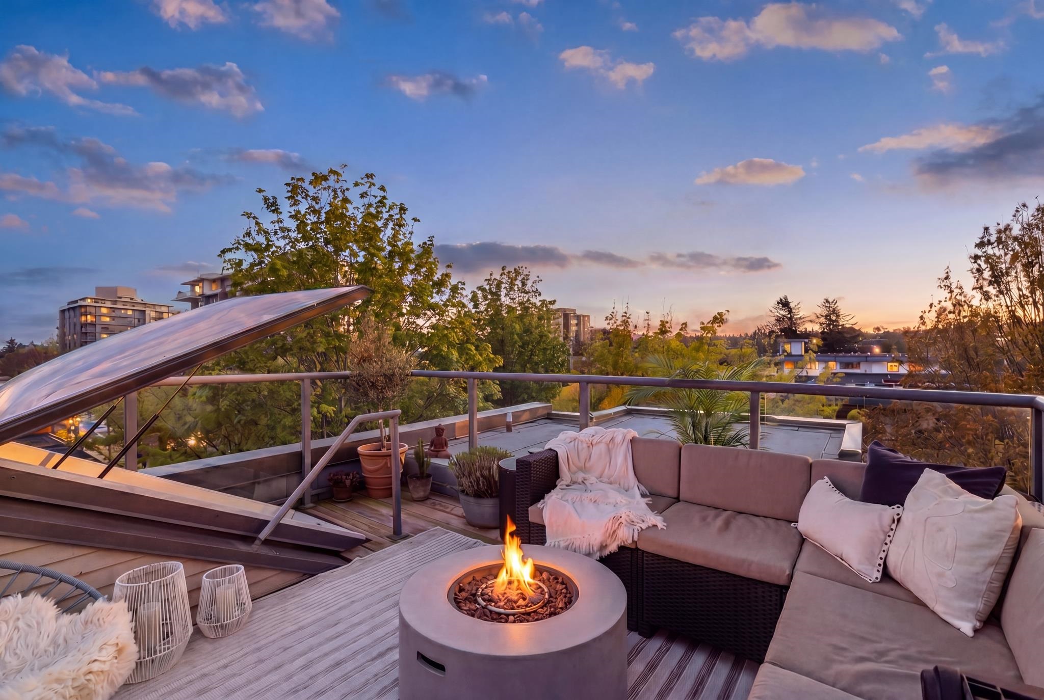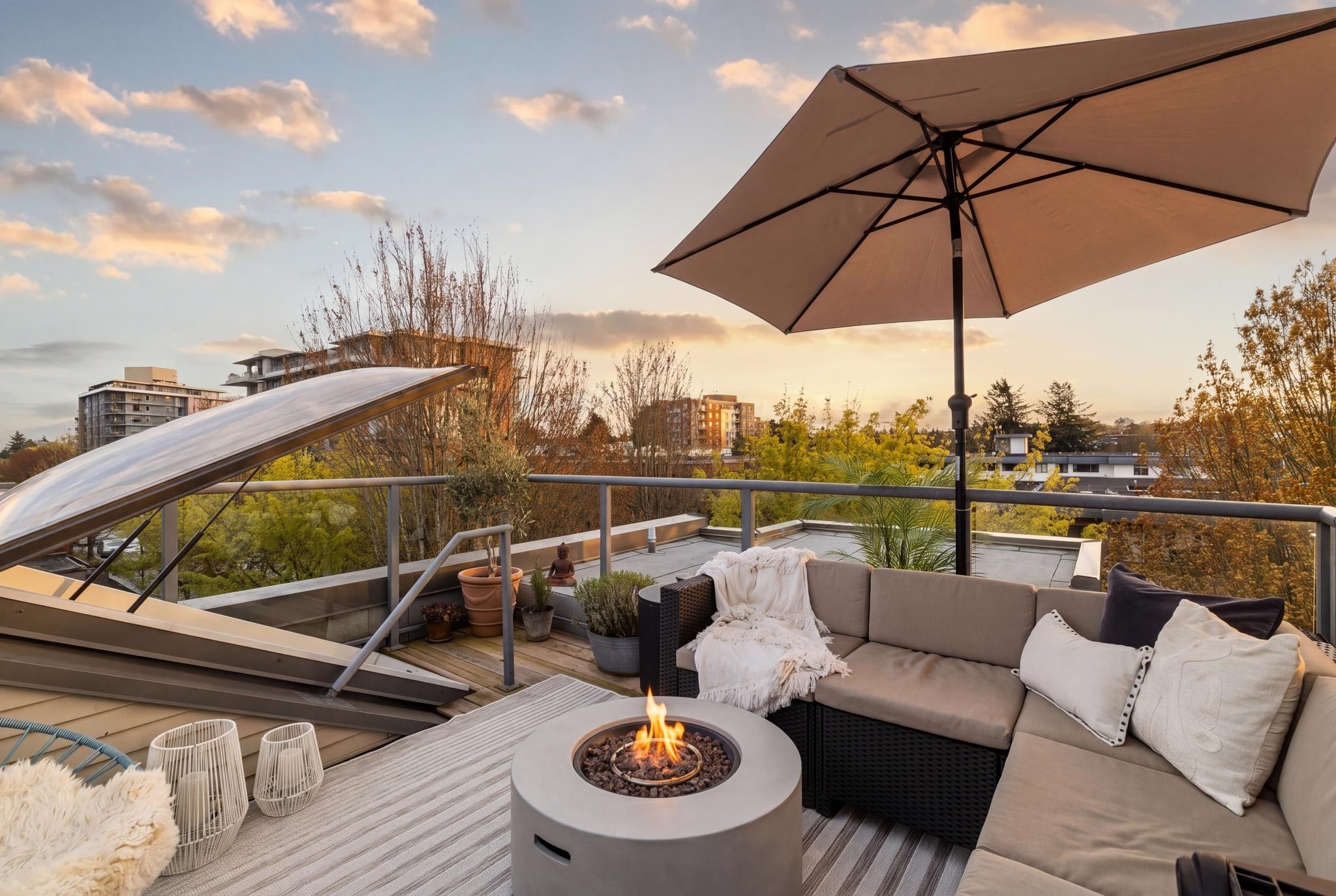 Welcome to Tala Vera, a boutique townhome community just steps from everything Main Street has to offer. The main floor features open-concept living and dining with warm bamboo flooring, a cozy gas fireplace, and a stylish chef’s kitchen with updated stainless steel appliances. Upstairs offers two spacious bedrooms, including a versatile second bedroom with a built-in office nook, plus a beautifully renovated bathroom and custom closets throughout. A true standout, the private rooftop patio offers breathtak...