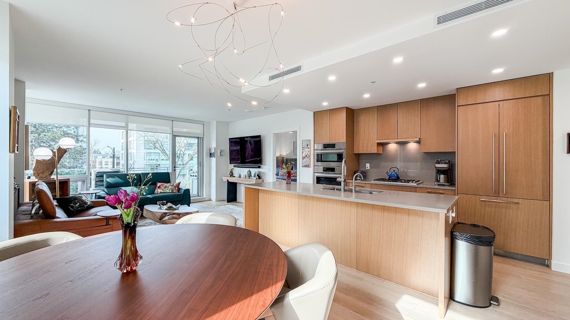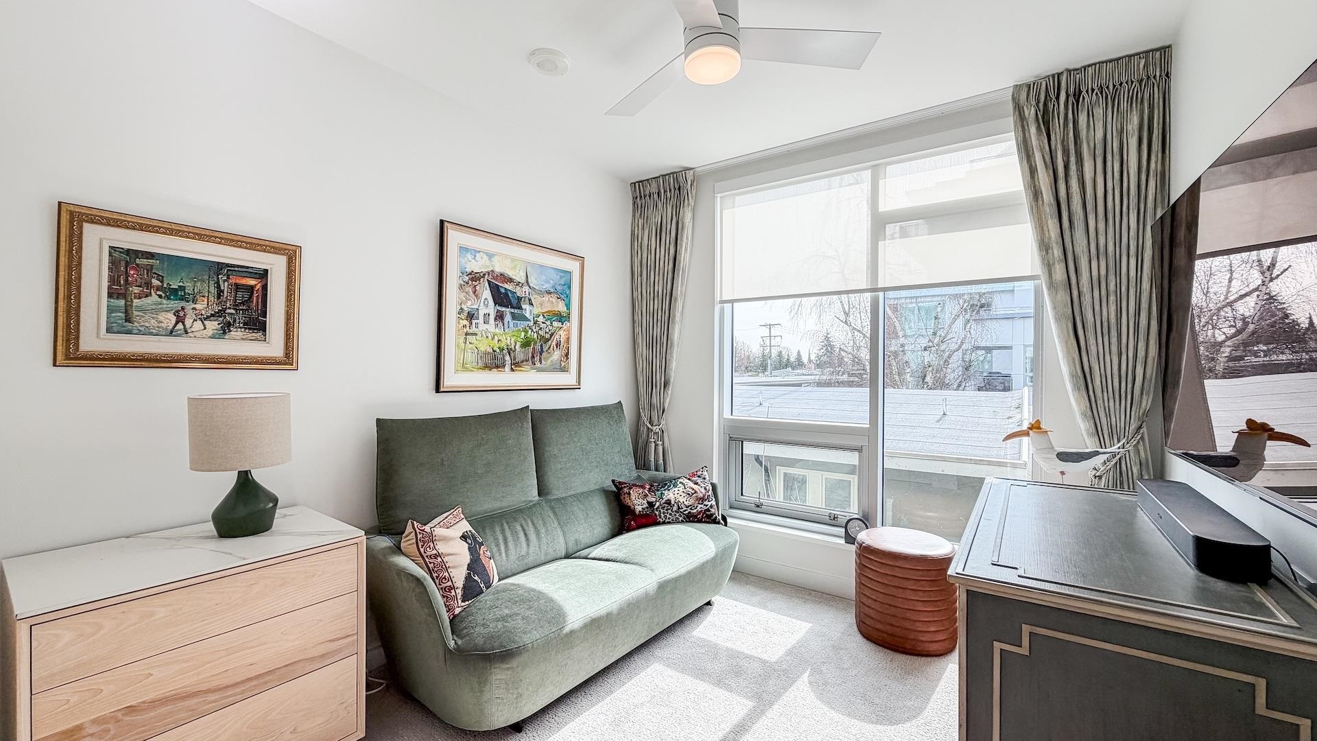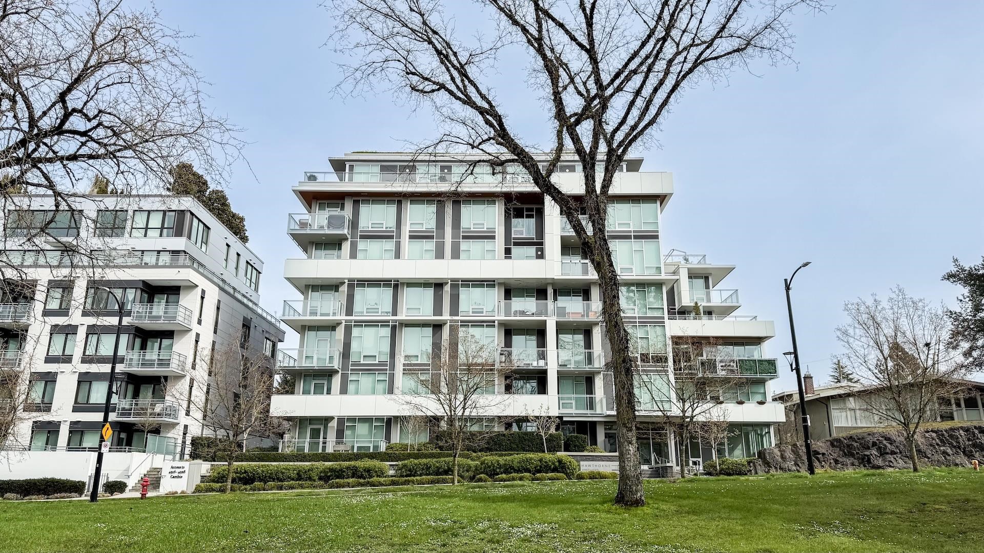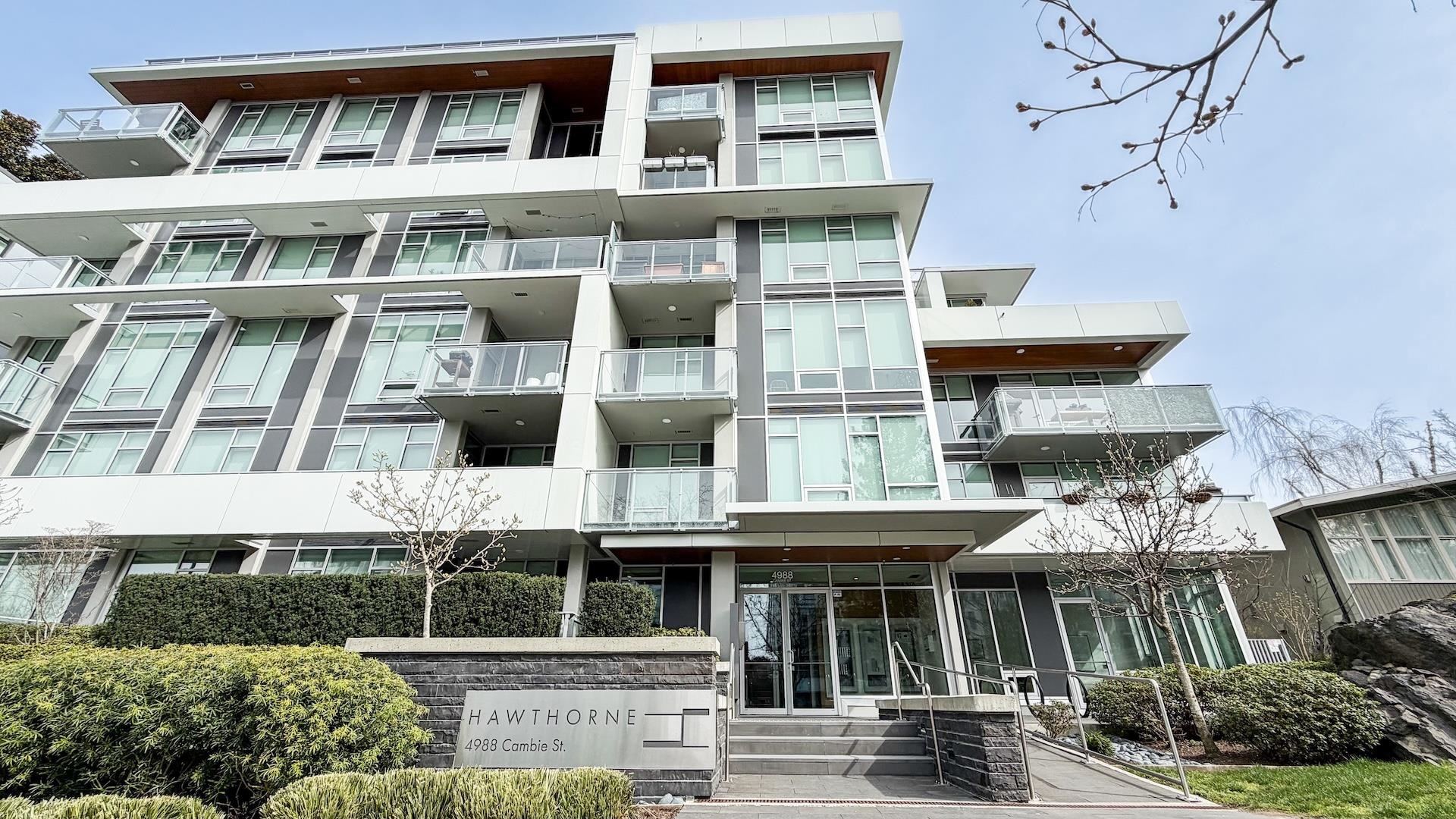 Spectacular Home! South west-facing corner residence at Hawthorne offering 1,135 sq ft, 2-bedroom, 2 bath & flex/pantry beside Queen Elizabeth Park. Open layout with dual-pane windows fills the contemporary living space with natural light. Gourmet kitchen with Bosch appliances, quartz counters /backsplash, custom cabinetry and breakfast bar. Air Conditioning, large 92 sq. ft. balcony, 2 side-by-side parking stalls and 1 large locker. Upgrades included a Viking cooktop, a Miele dishwasher, an LG washer/dryer...