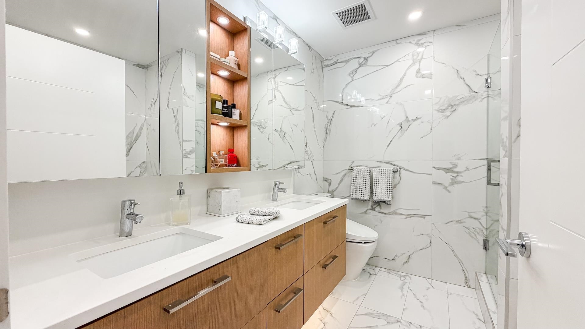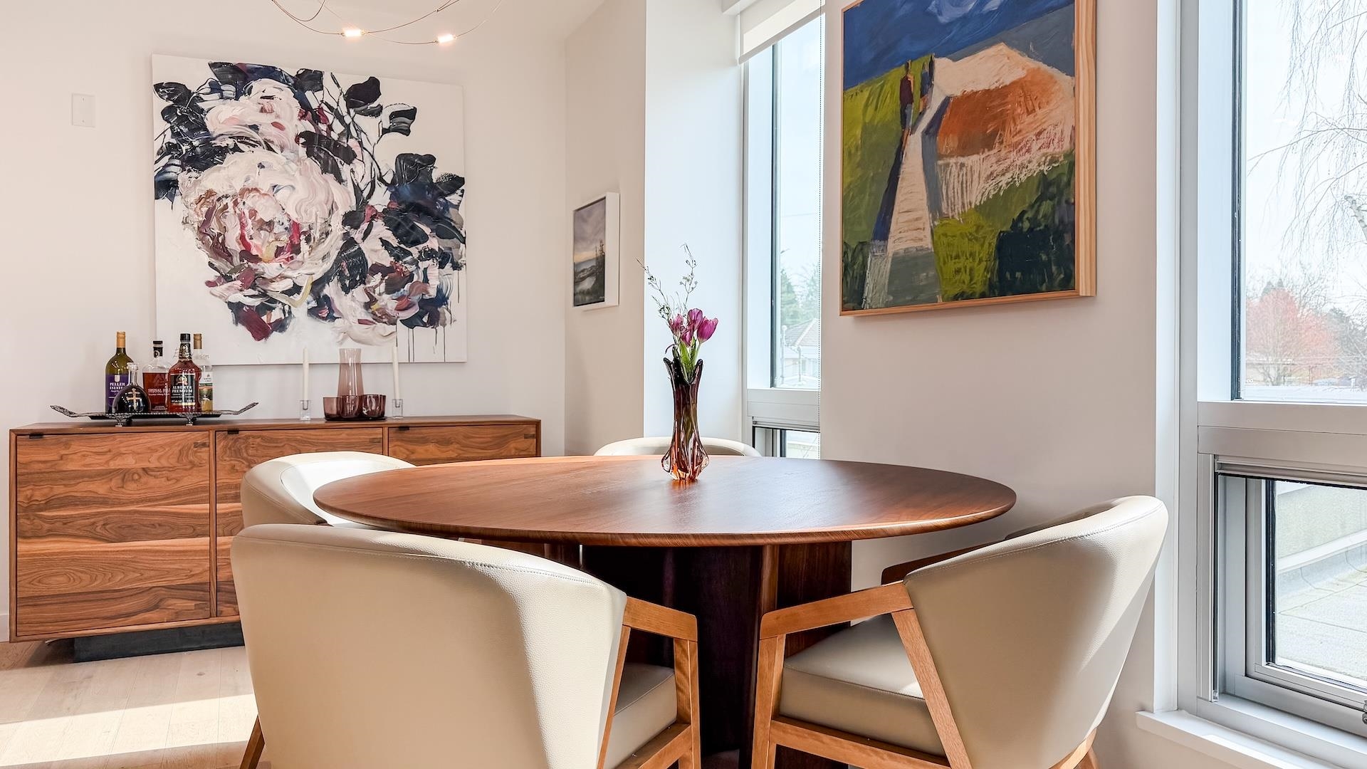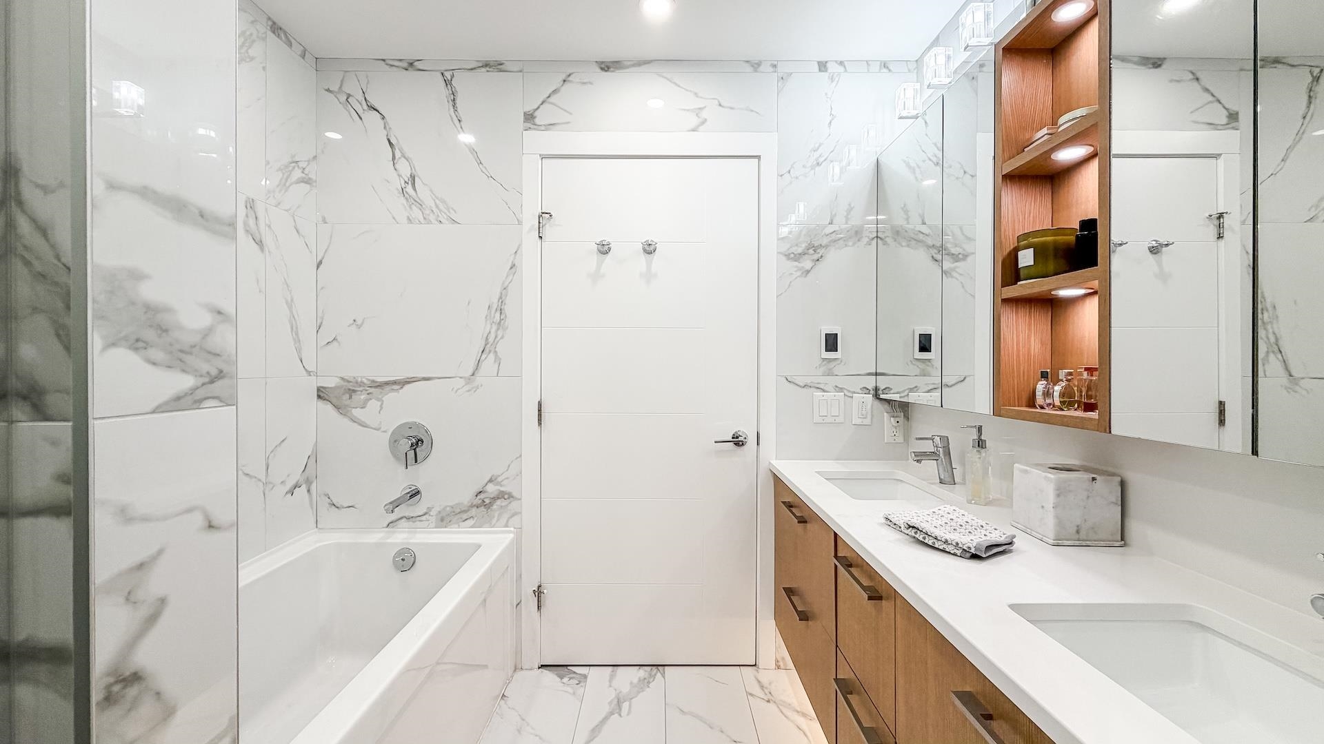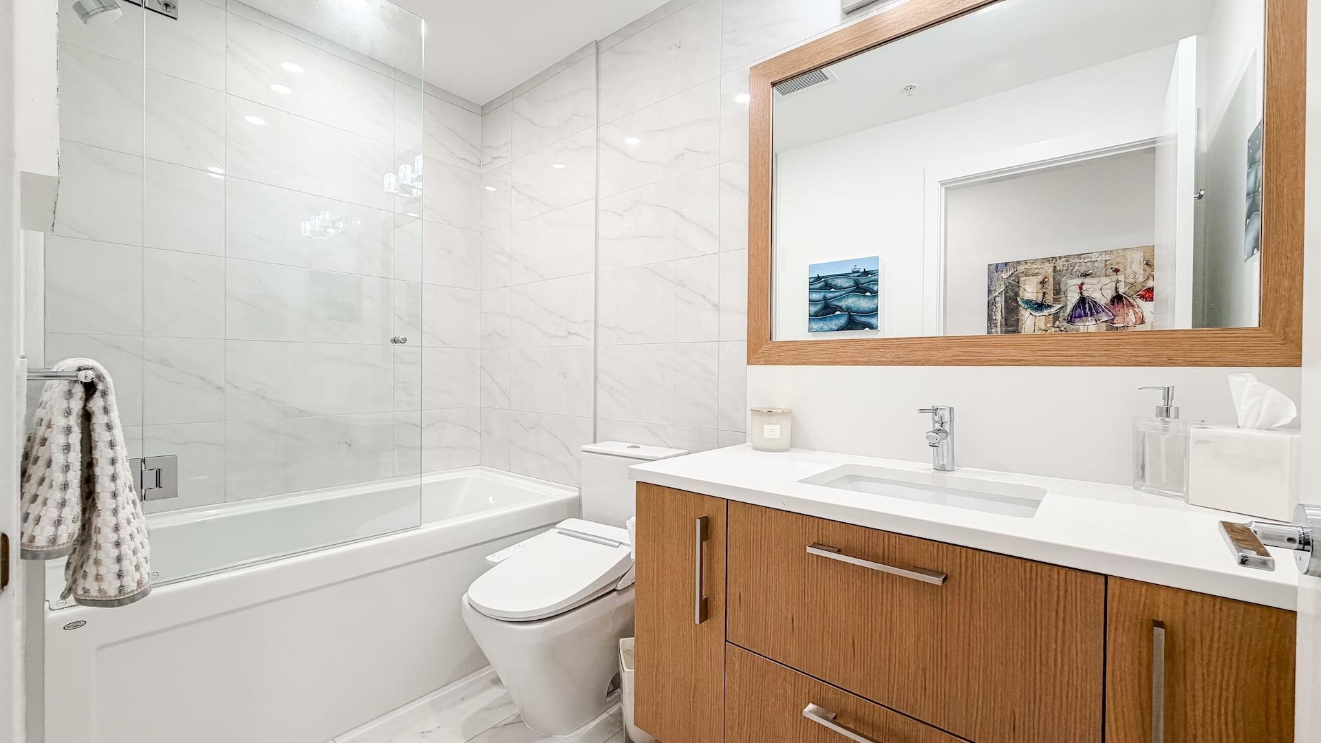 Spectacular Home! South west-facing corner residence at Hawthorne offering 1,135 sq ft, 2-bedroom, 2 bath & flex/pantry beside Queen Elizabeth Park. Open layout with dual-pane windows fills the contemporary living space with natural light. Gourmet kitchen with Bosch appliances, quartz counters /backsplash, custom cabinetry and breakfast bar. Air Conditioning, large 92 sq. ft. balcony, 2 side-by-side parking stalls and 1 large locker. Upgrades included a Viking cooktop, a Miele dishwasher, an LG washer/dryer...