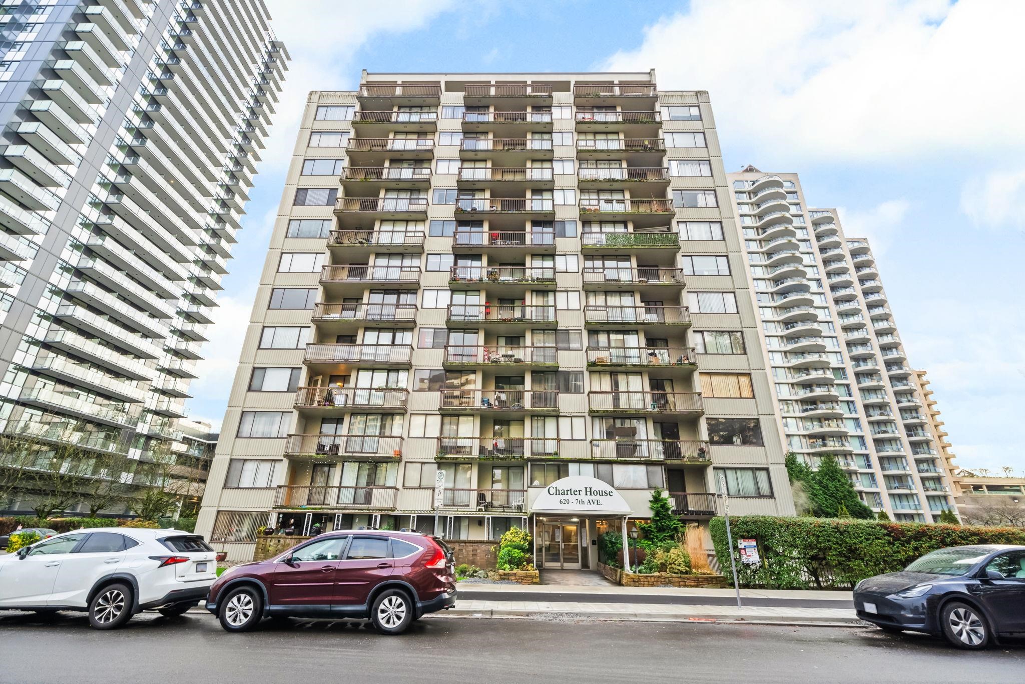 Welcome to Charter House, a well-managed concrete building in the heart of Uptown New Westminster, steps to transit, shopping, schools, parks, library, and recreation. This beautifully maintained 937 sq. ft. corner 2-bedroom, 1.5-bath home has been tastefully renovated with quality in mind, featuring a partially opened kitchen with extended cabinetry, quartz countertops, and updated bathrooms. Maintenance fees include heat and hot water, and the home comes with 1 parking and 1 locker, plus visitor parking. ...