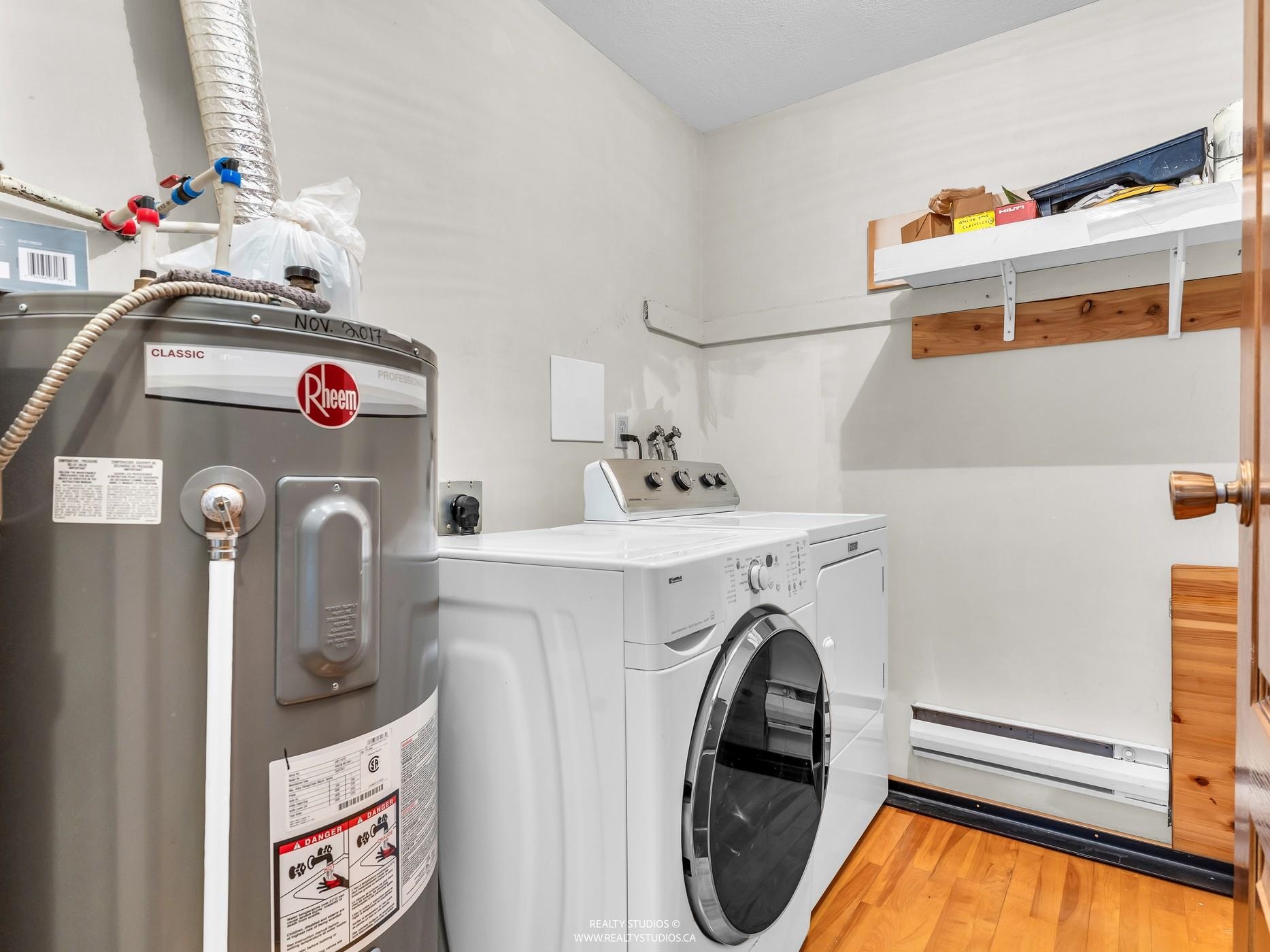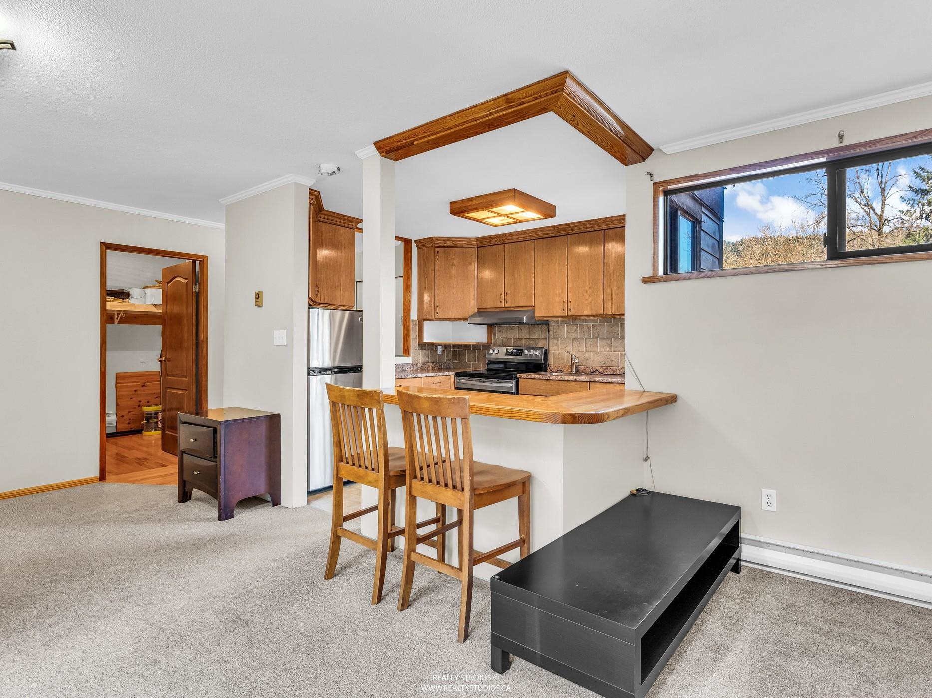 Set within the serene, park-like 20-acre grounds of Mountain Wood, this bright top-floor penthouse offers an exceptional blend of nature, convenience, and value. The open-plan layout features two comfortable bedrooms and a rare, oversized walk-in in-suite laundry room, creating a home that feels both spacious and practical. Surrounded by private walking paths and forested trails, the community delivers a peaceful, retreat-like atmosphere while still placing you steps from Stoney Creek Elementary, Burnaby Mo...