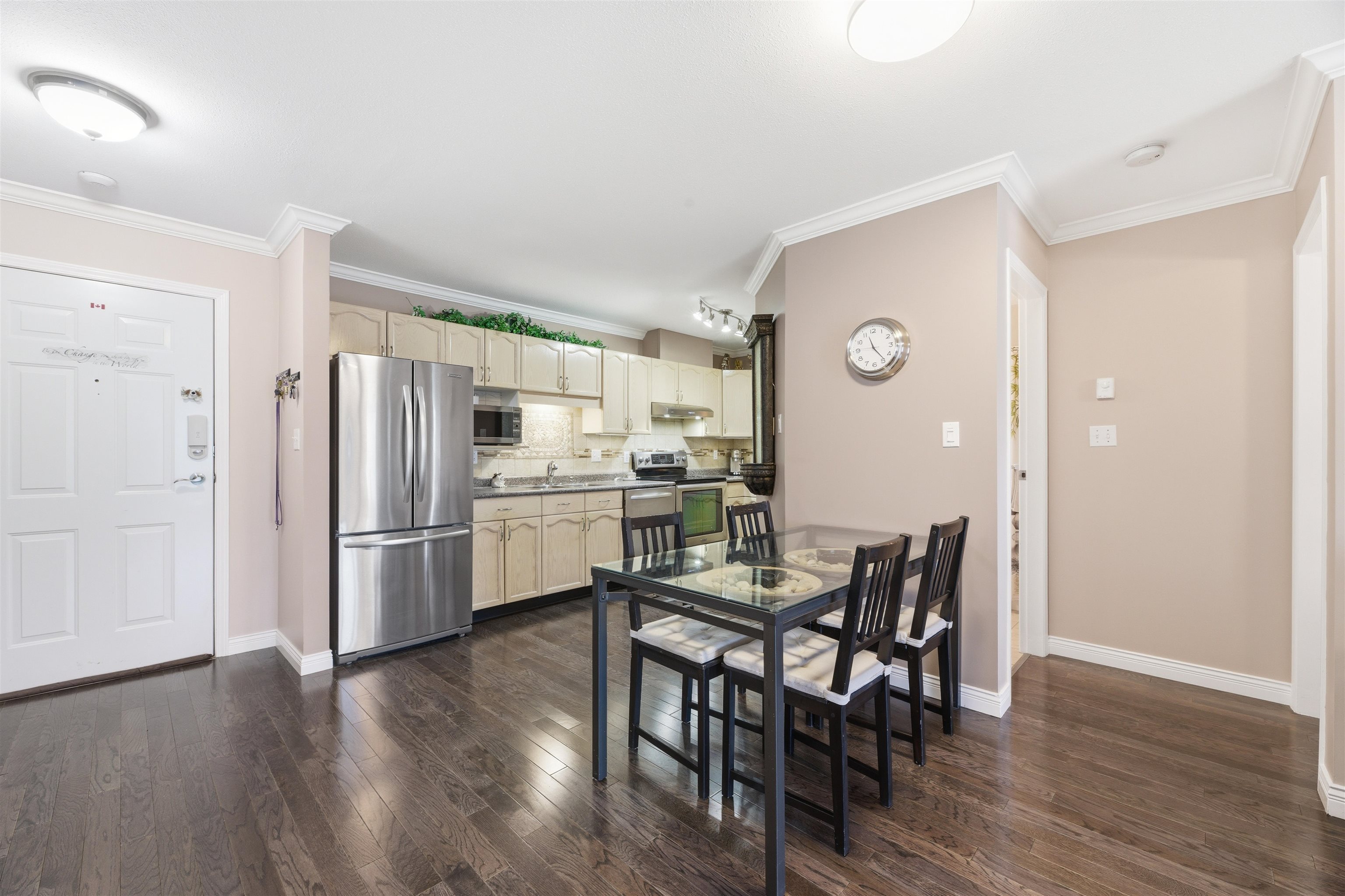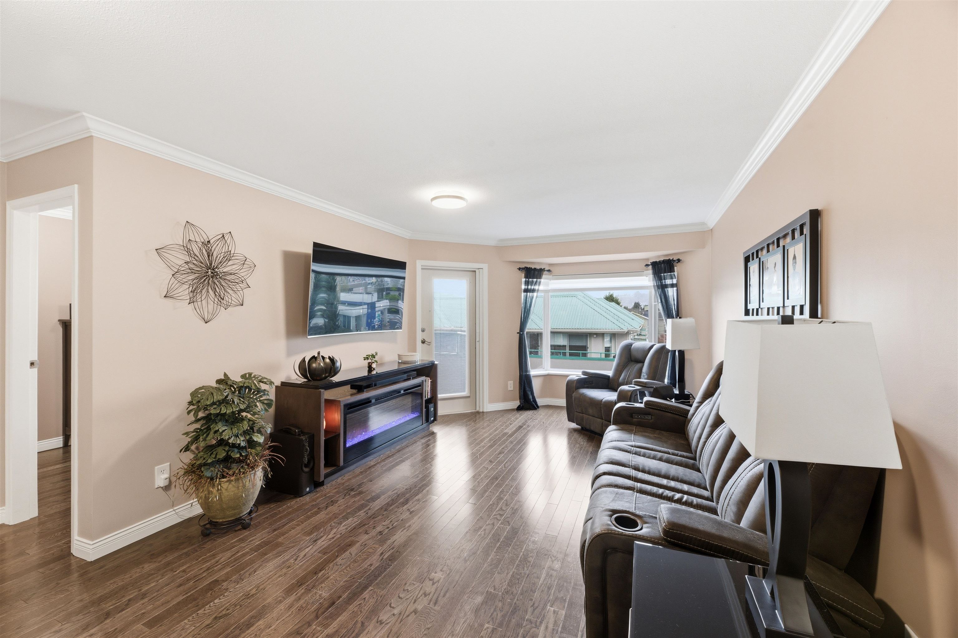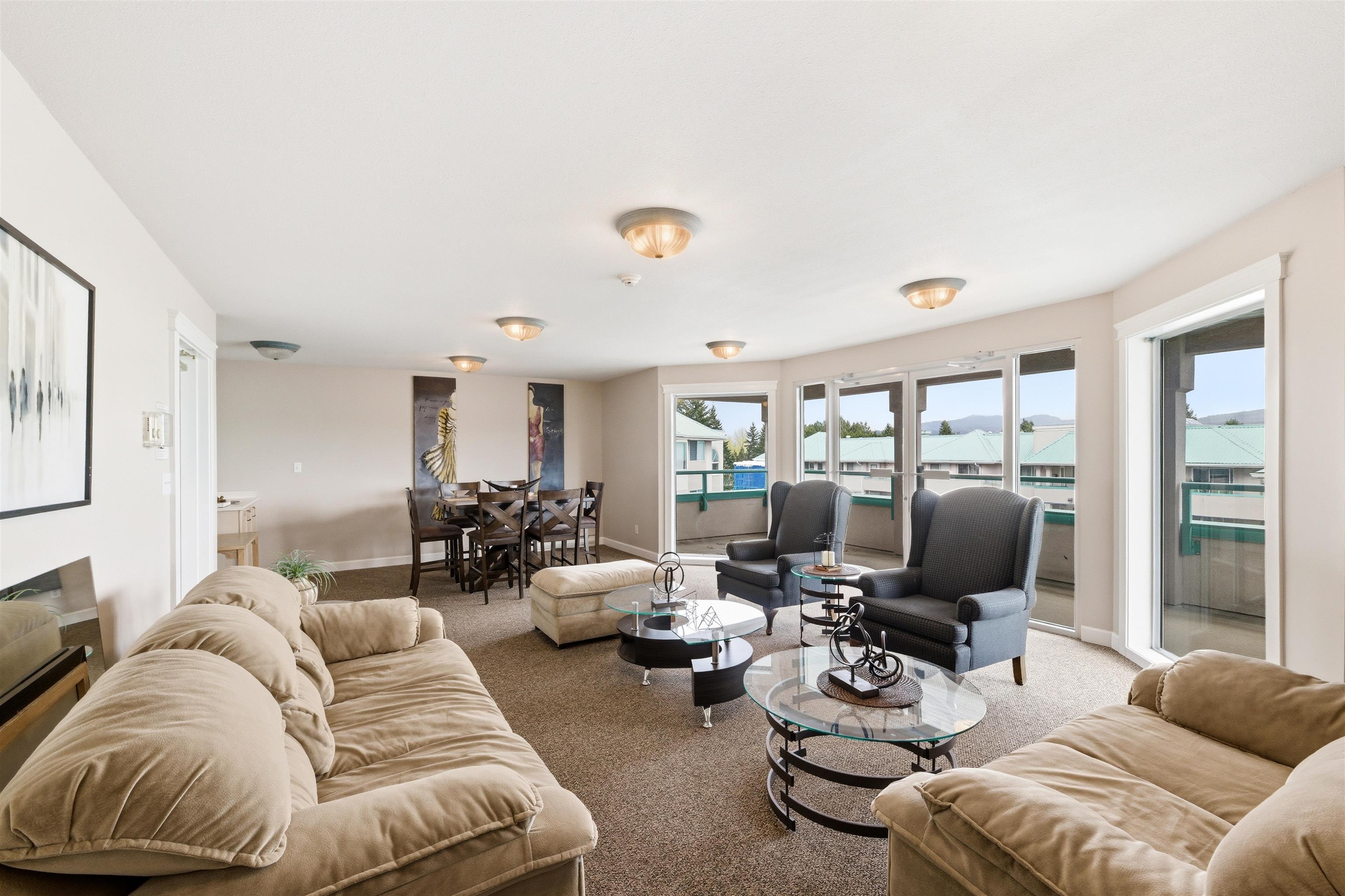 TOP FLOOR corner unit with stunning panoramic mountain views, including Mt. Baker. This spacious open concept 2-bedroom, 2-bathroom home features beautiful engineered wood flooring, fresh paint and bedrooms on opposite sides. The kitchen is equipped with newer KitchenAid stainless steel appliances and an excellent workspace for everyday living and entertaining. Brand new washer and dryer included. Super clean and move-in ready with renovations completed over the past 9 years. Pet-friendly building with stor...
