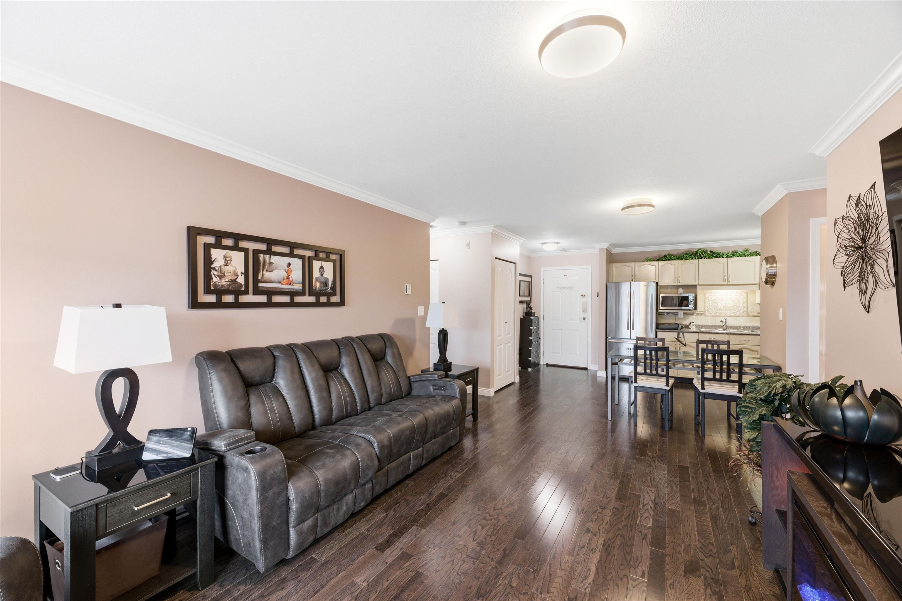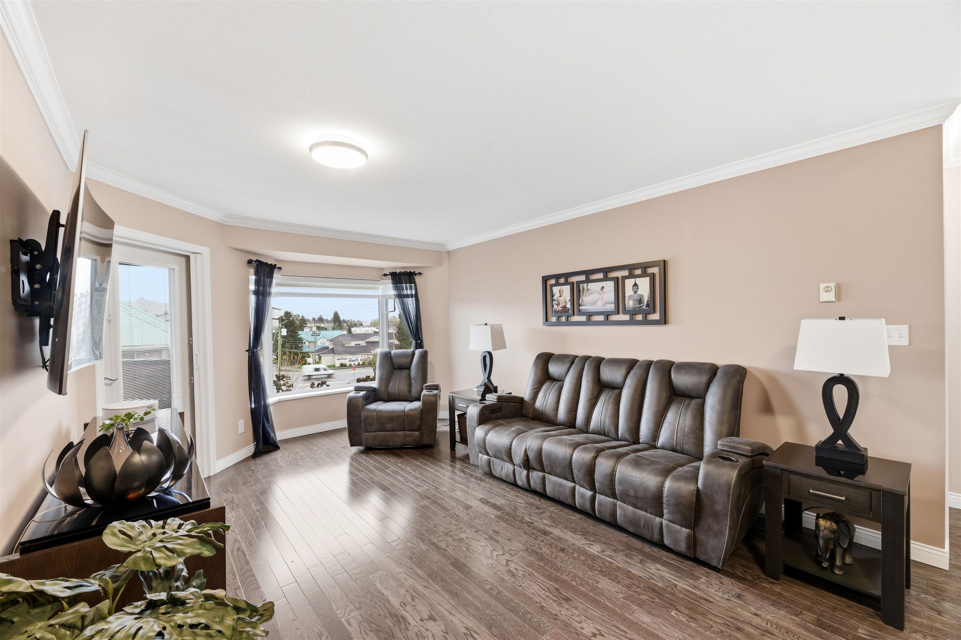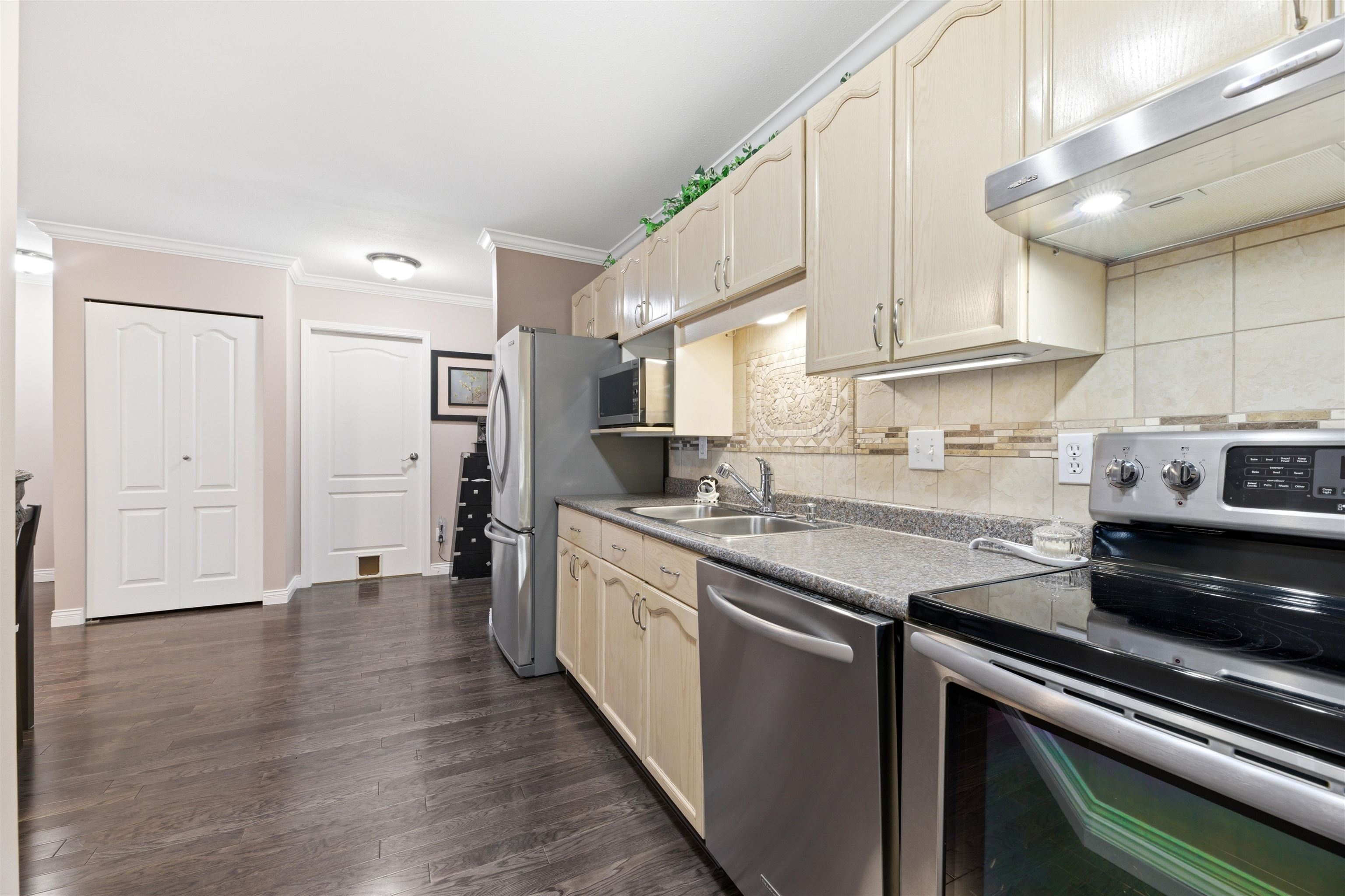 TOP FLOOR corner unit with stunning panoramic mountain views, including Mt. Baker. This spacious open concept 2-bedroom, 2-bathroom home features beautiful engineered wood flooring, fresh paint and bedrooms on opposite sides. The kitchen is equipped with newer KitchenAid stainless steel appliances and an excellent workspace for everyday living and entertaining. Brand new washer and dryer included. Super clean and move-in ready with renovations completed over the past 9 years. Pet-friendly building with stor...