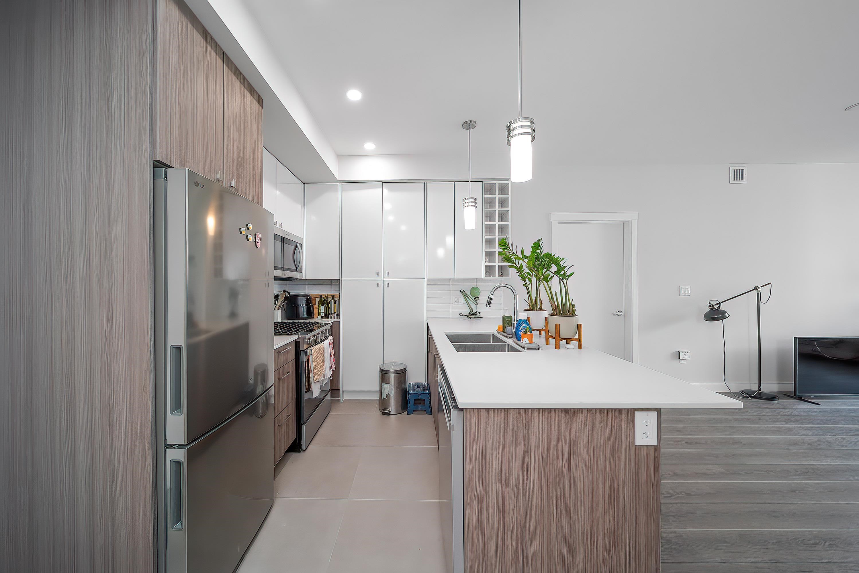 There are 2 bedrooms and 2 bathrooms in this unit, which faces south and has a quiet beautiful garden view, 2 parking spaces (one of which is for EV charging), and a storage locker. With geothermal heating and air conditioning, your new home in Hamilton Village West has a well-designed living space. Featuring an open-concept kitchen including a gas stove, quartz counters, and stainless steel appliances. With a balcony facing south, you are able to enjoy lovely sunshine and a quiet and open view. It has a ga...