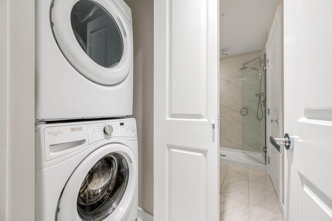Experience refined urban living in this extra spacious one-bedroom residence at West Quay! Impeccably maintained and thoughtfully designed, this home showcases beautiful water and courtyard views from the bedroom, living area, and private balcony. The gourmet kitchen is equipped with quartz countertops, stainless steel appliances, and generous storage cabinetry, while radiant floor heating provides seamless, year-round comfort. Residents enjoy building amenities including a fully equipped gym and an elegant...