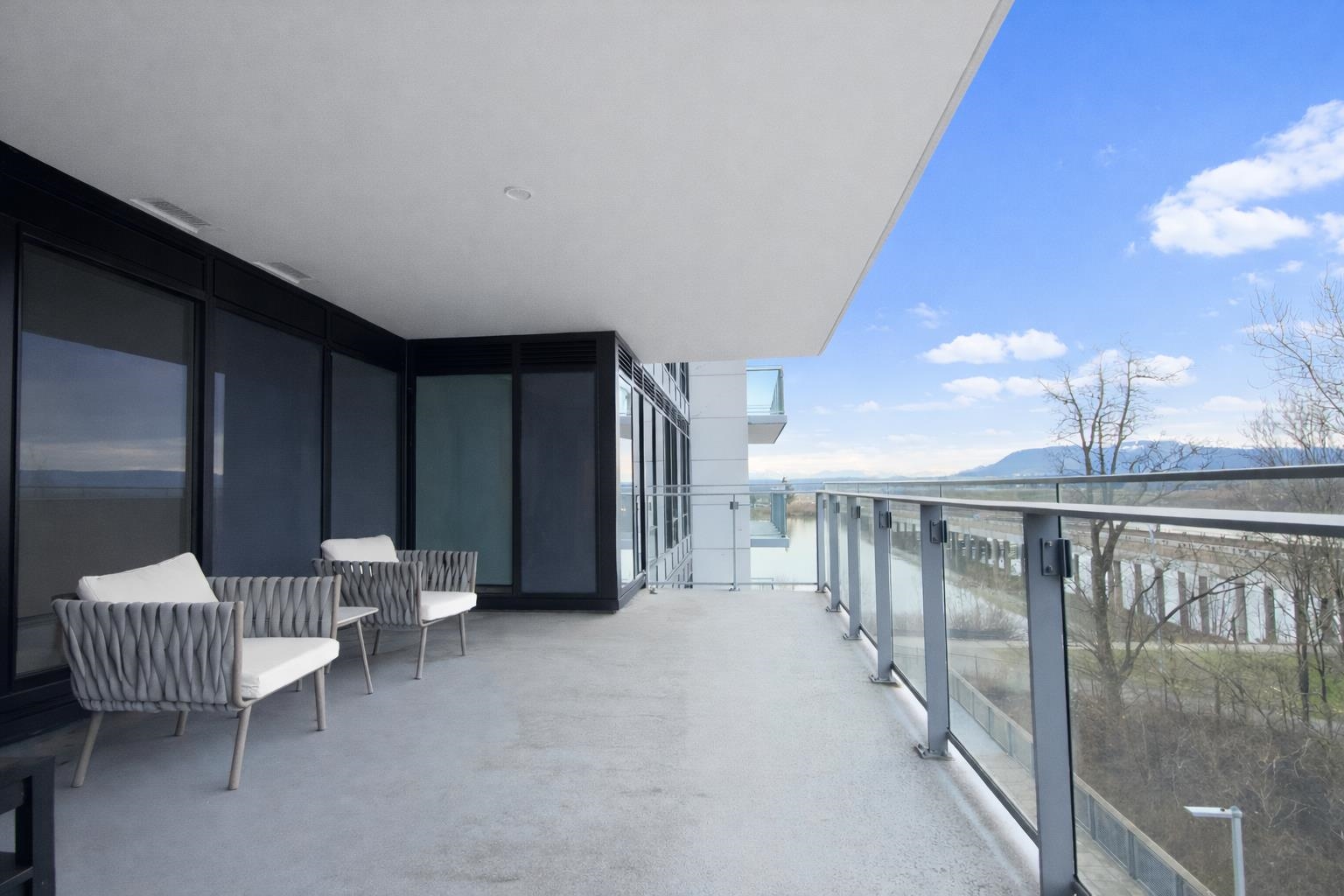 Rarely available, this exceptional 1,070 sq.ft. 2-bedroom + den residence offers a truly unique waterfront lifestyle with three-sided river views and an oversized private terrace-a rare combination in today's market. Multiple exposures bring in abundant natural light, while the expansive outdoor space seamlessly extends everyday living and entertaining. The well-designed layout features separate living and dining areas for flexibility and comfort. A generous den functions as a true third space, ideal for a ...